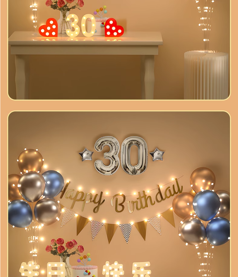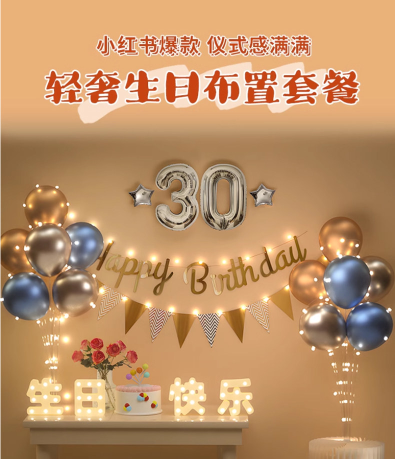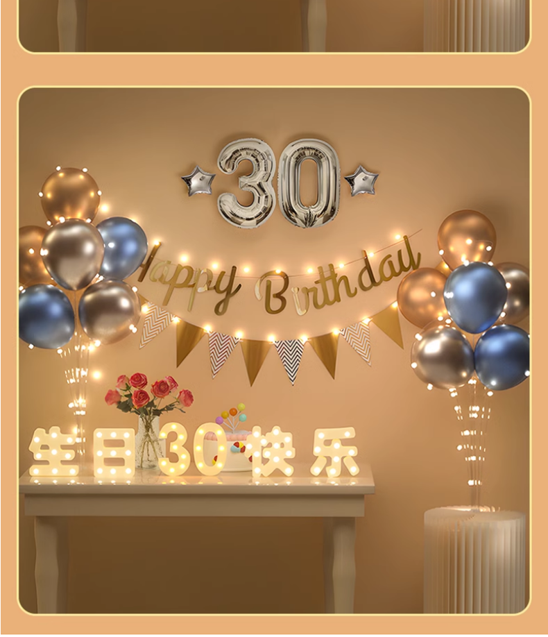 Table Floating Balloons Decoration Scene Setup Private Room Husband 30Th Birthday Adult Male Birthday Party Atmosphere Sense of Ceremony