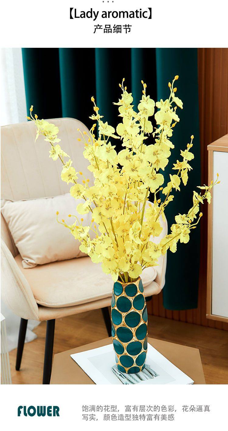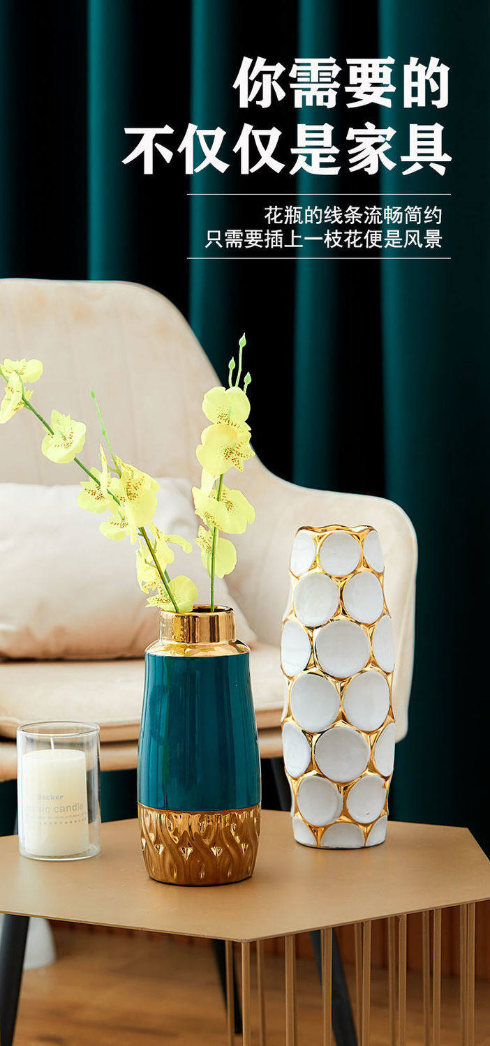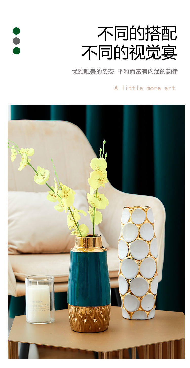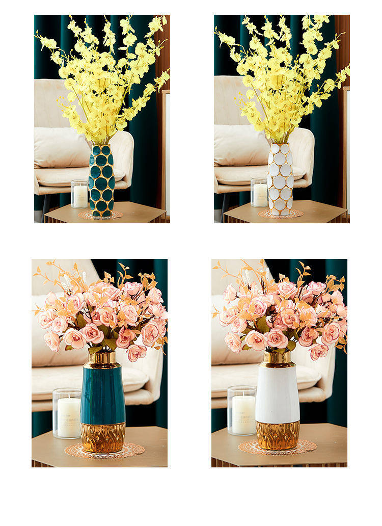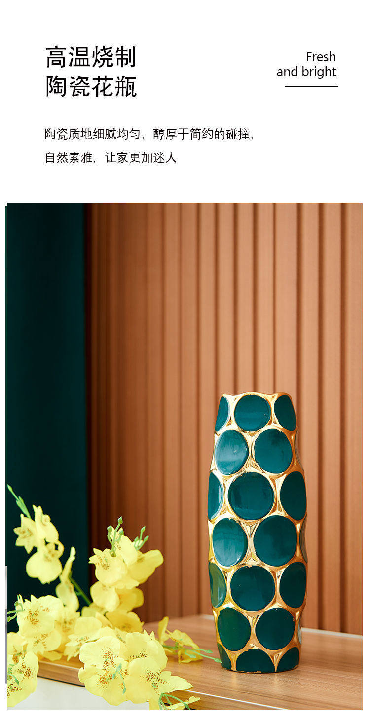 Light Luxury High-End Ceramic Vase with Peacock Feathers, Flower Arrangement, Lucky Bamboo Ornament, Modern Home Decor, Large Vase, Premium