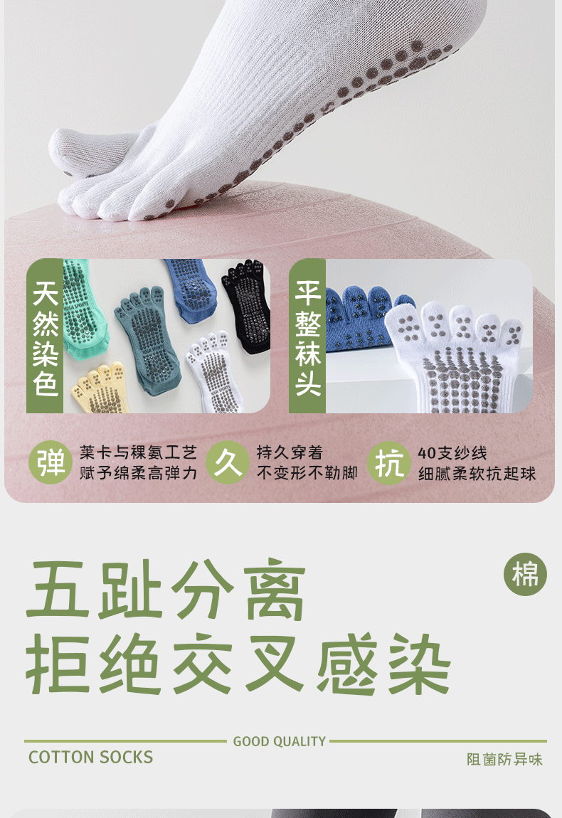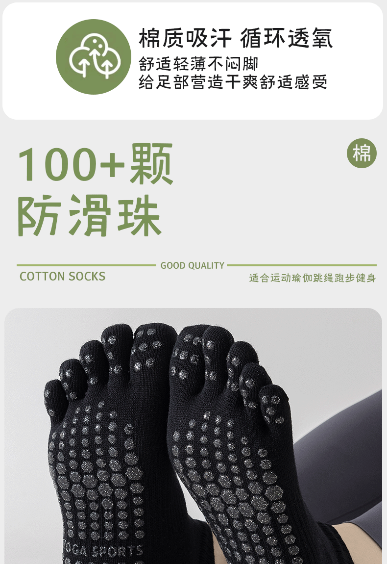 五指瑜伽袜女初学者普拉提分趾袜纯棉薄款专业运动跑步舞蹈短袜子