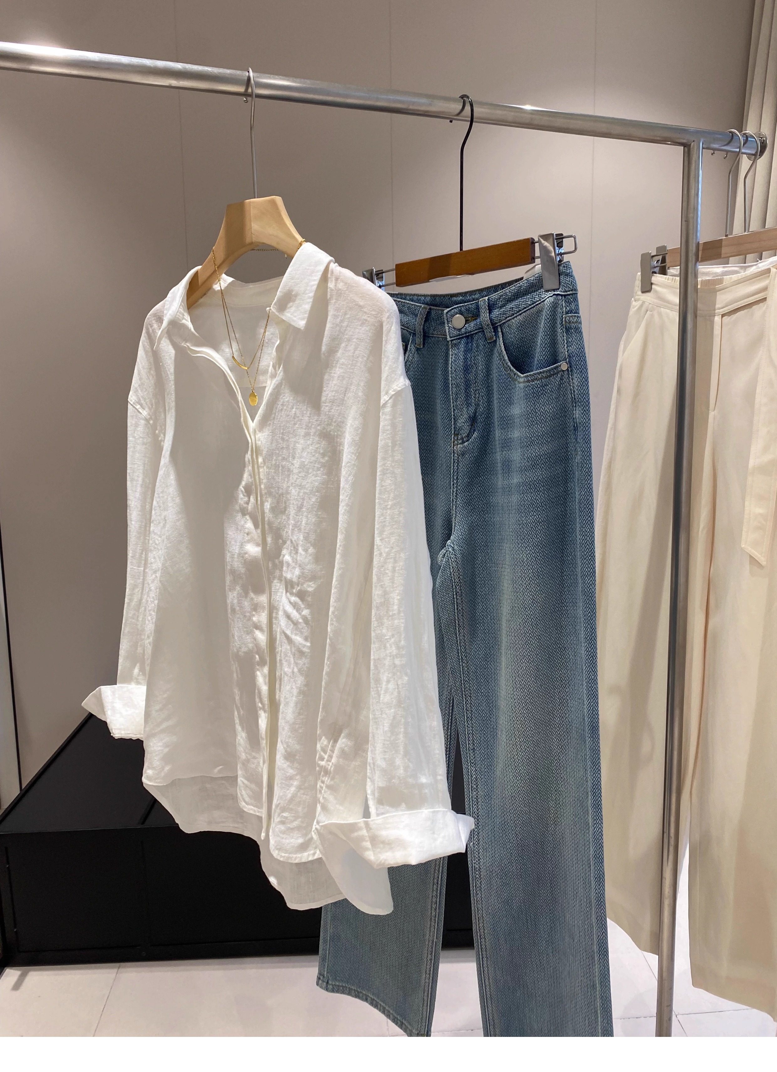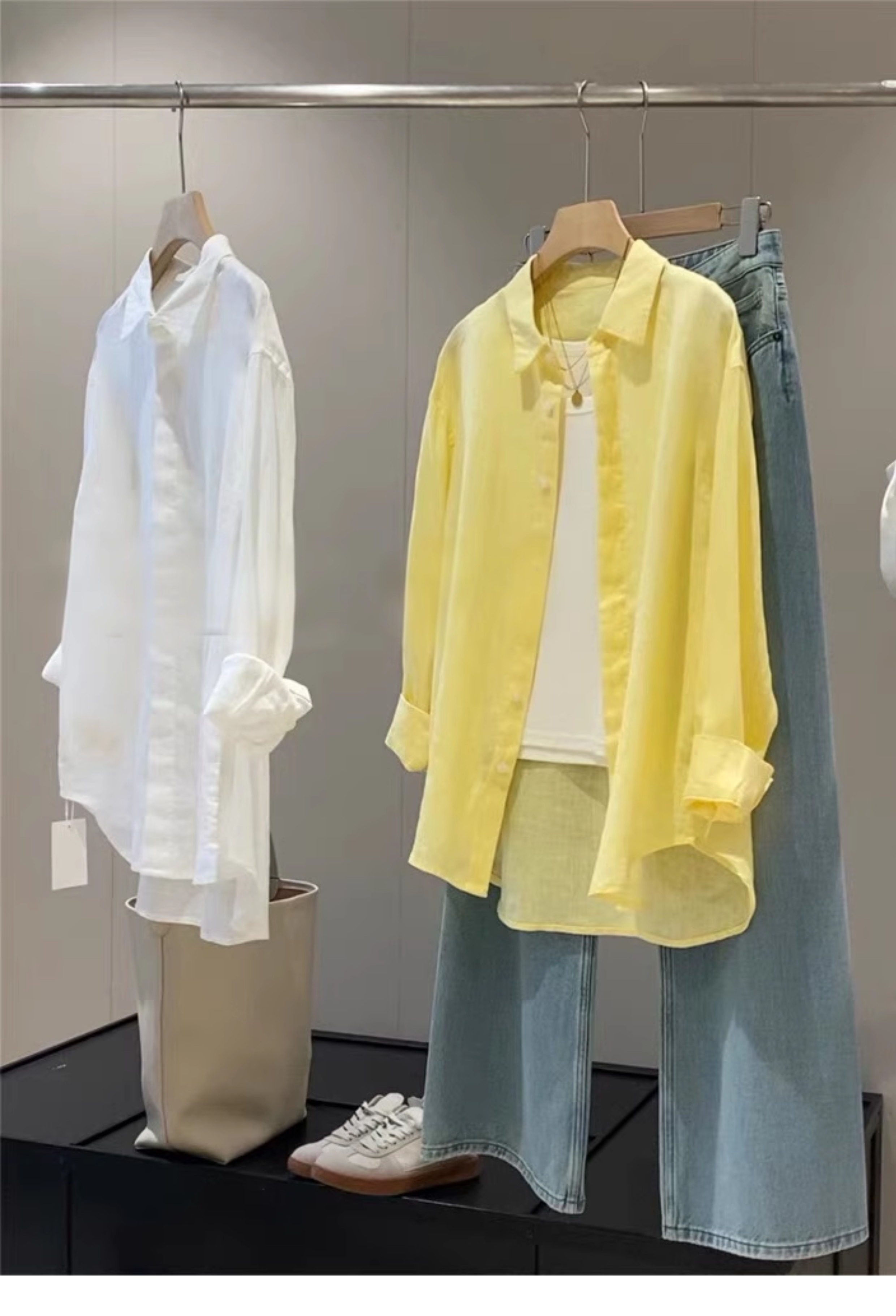 French-Style White Linen Shirt for Women, Summer Thin Loose Fit, Old Money Style, High-End Cotton-Linen Shirt, Long-Sleeved Sun Protection Top