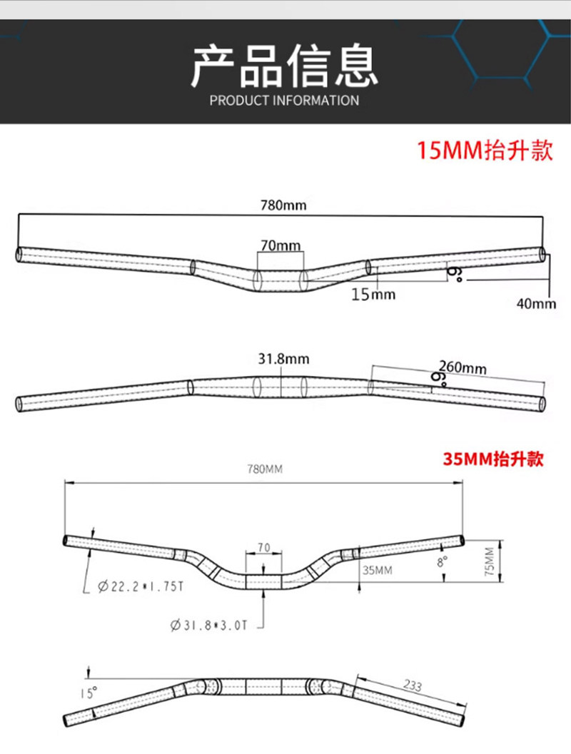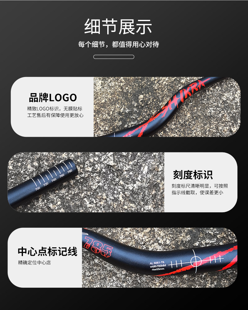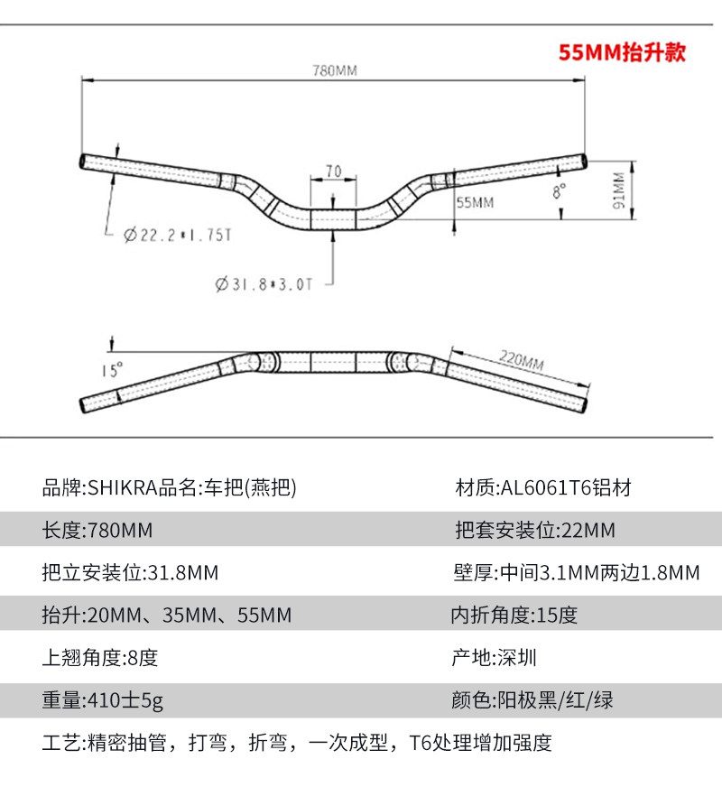 SHIKRA自行车山地车高强度大燕把15抬升/35抬升/55抬升31.8X780mm