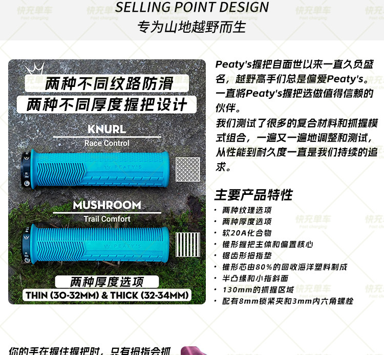 Peaty's Mountain Bike Handlebar Cover Universal Bicycle Shock-Absorbing Anti-Slip Handle Cover Silicone Handle Grip Rubber Cover