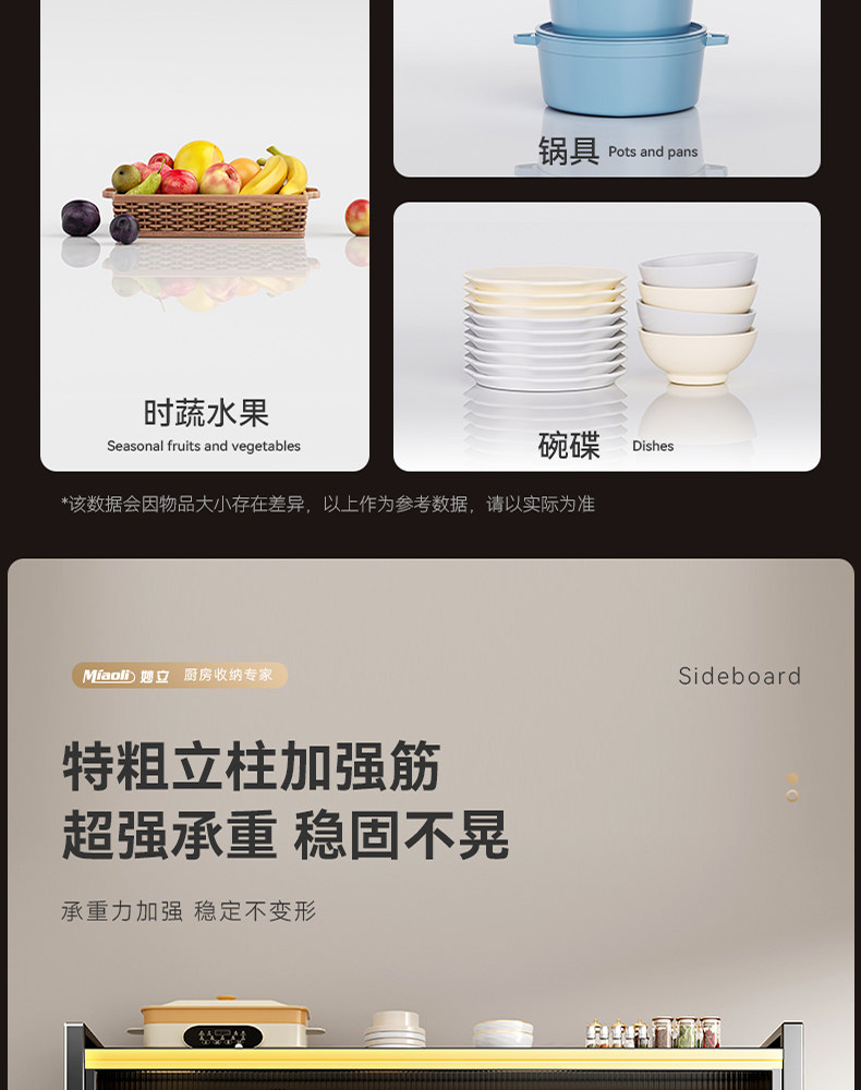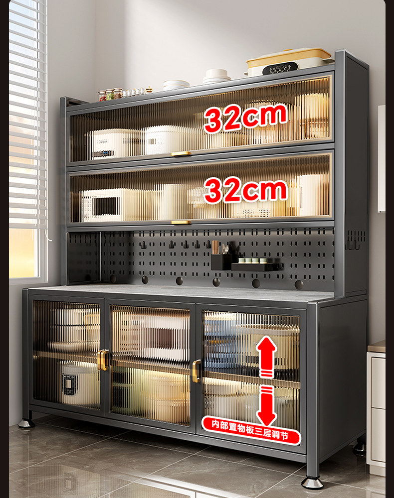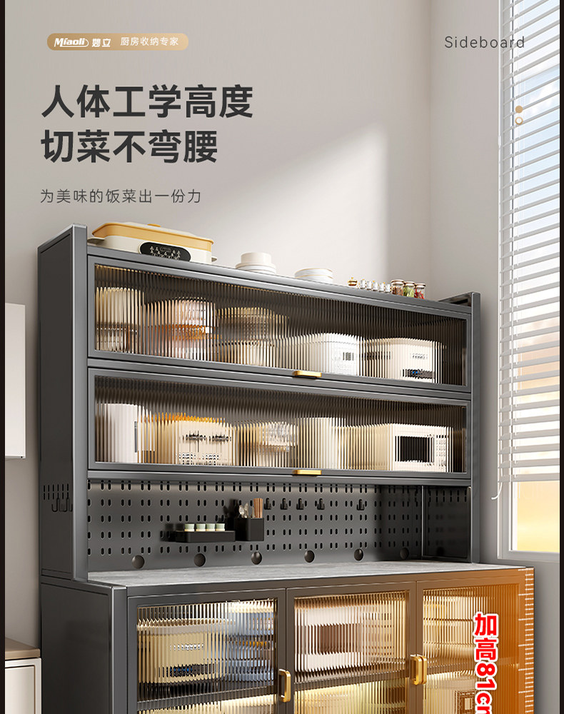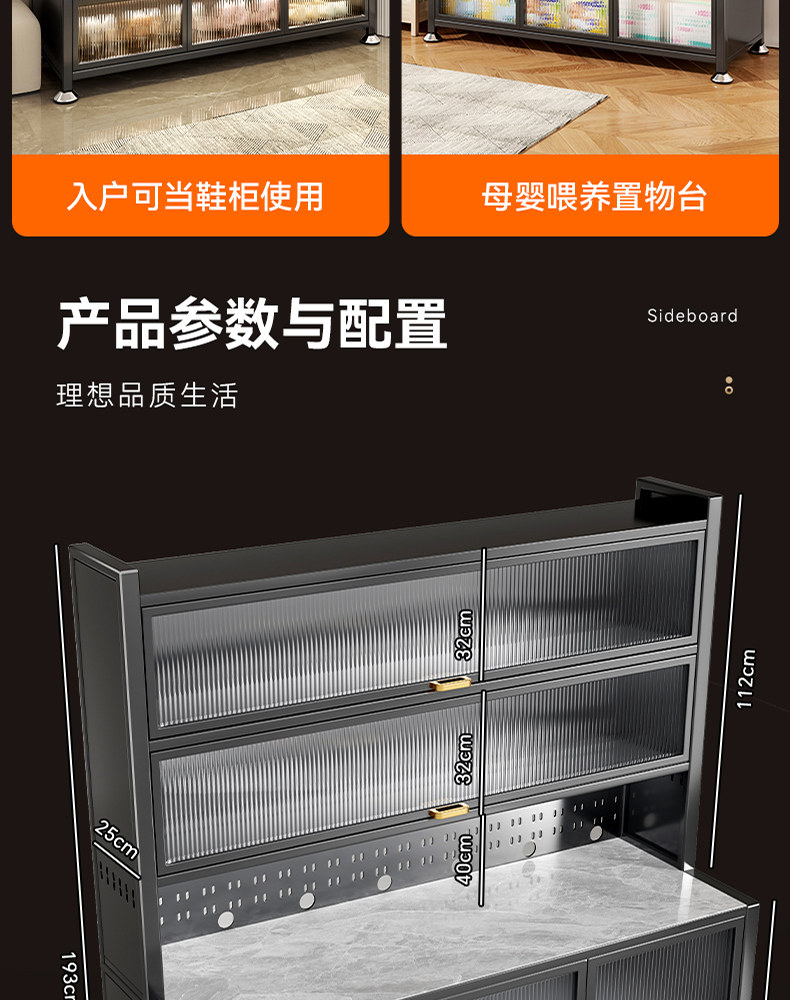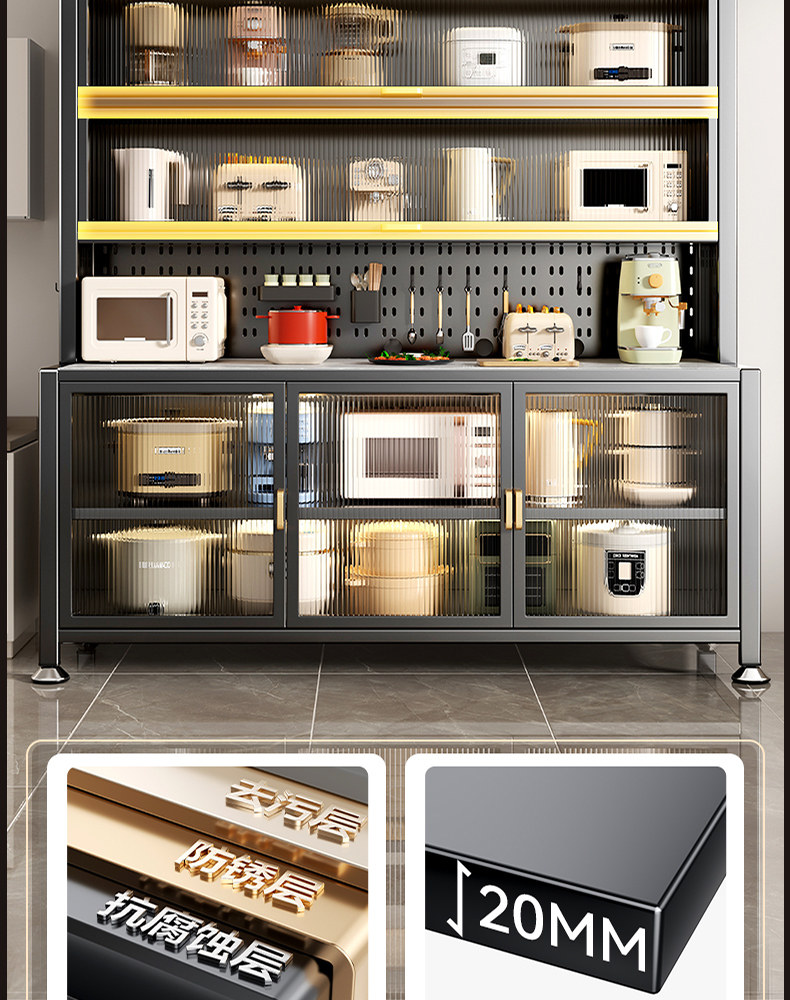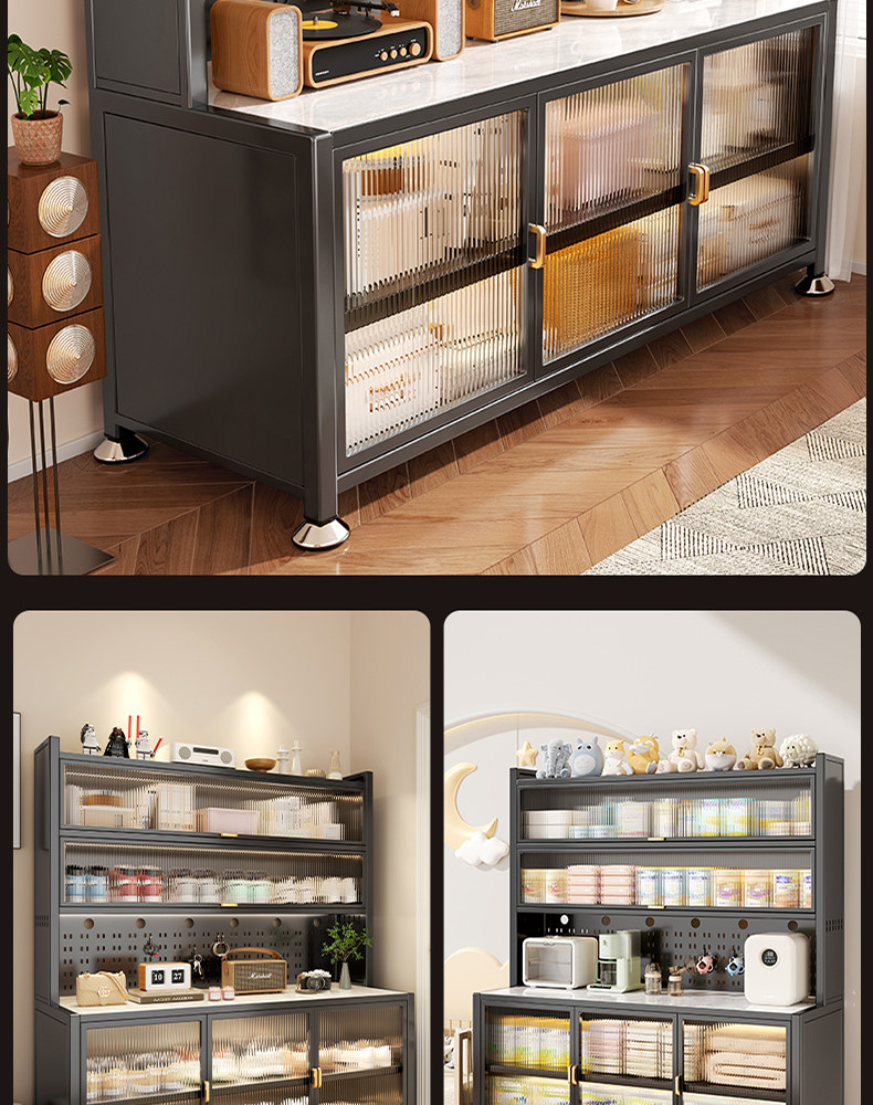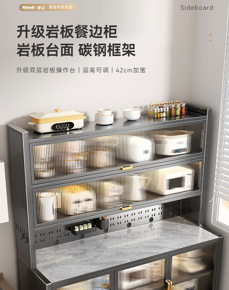 岩板厨房置物架家用落地橱柜多层餐边靠墙一体多功能收纳储物碗柜