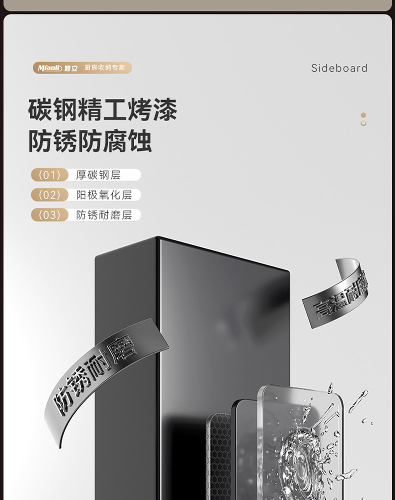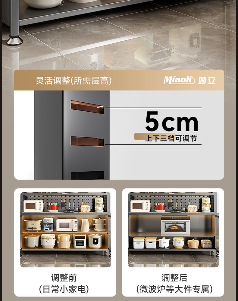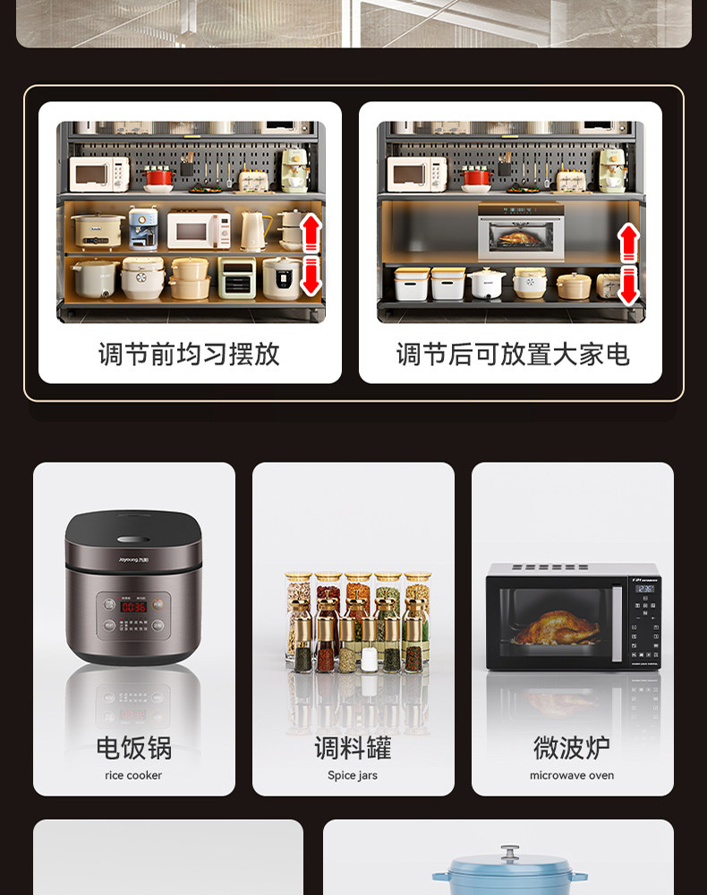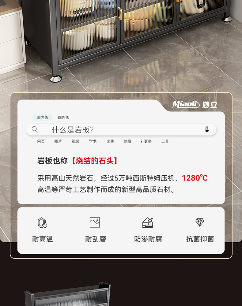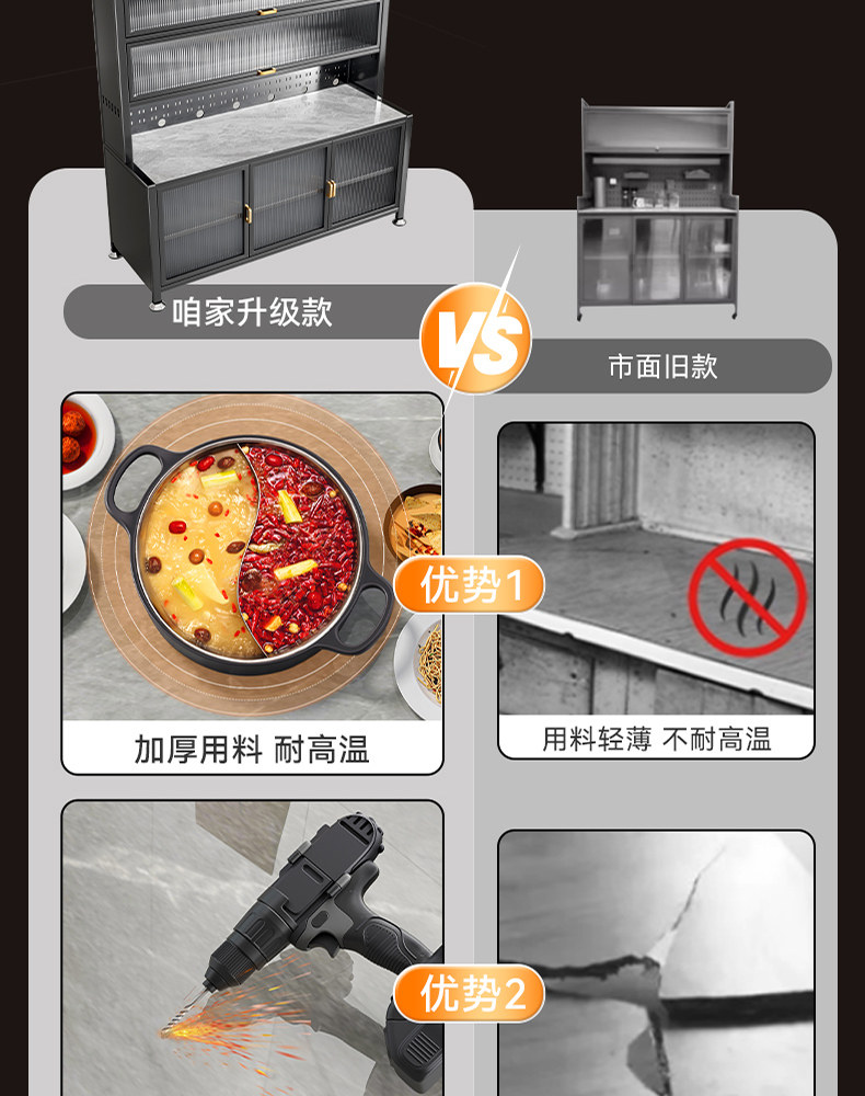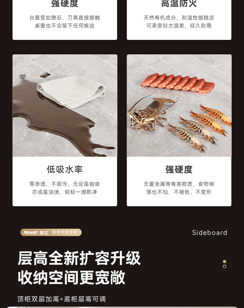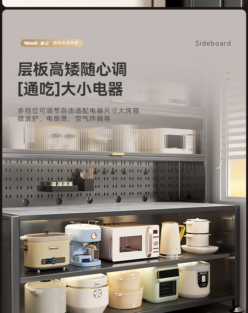 岩板厨房置物架家用落地橱柜多层餐边靠墙一体多功能收纳储物碗柜