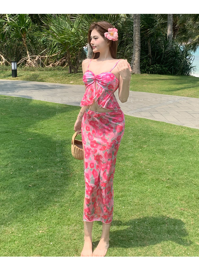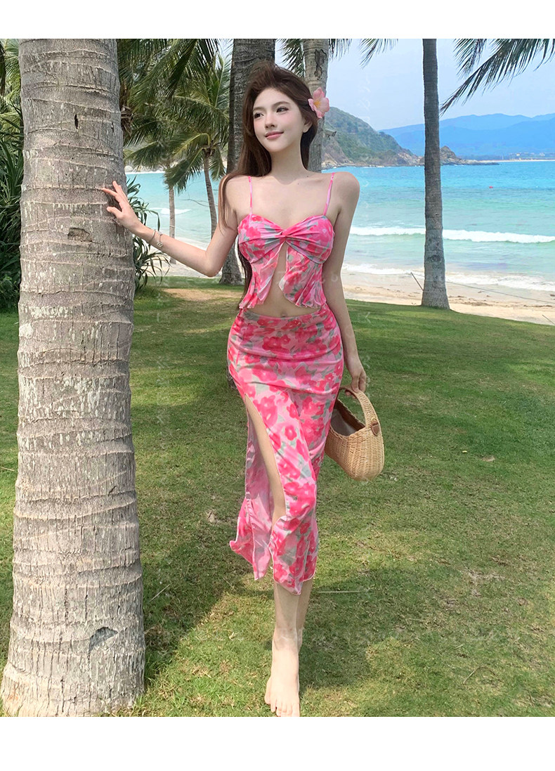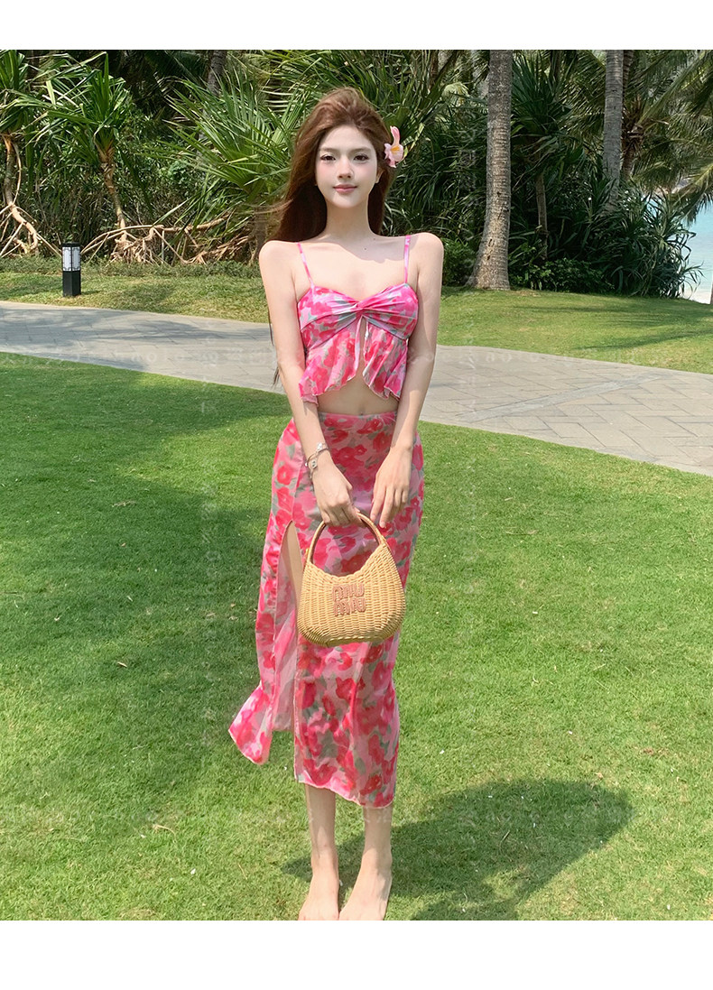 Pink Split Swimsuit, Three-Piece Beach Vacation Set, Conservative Bikini for Small or Flat Chests, Suitable for Hot Springs