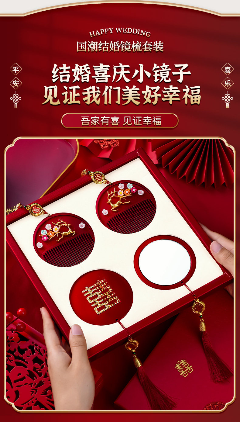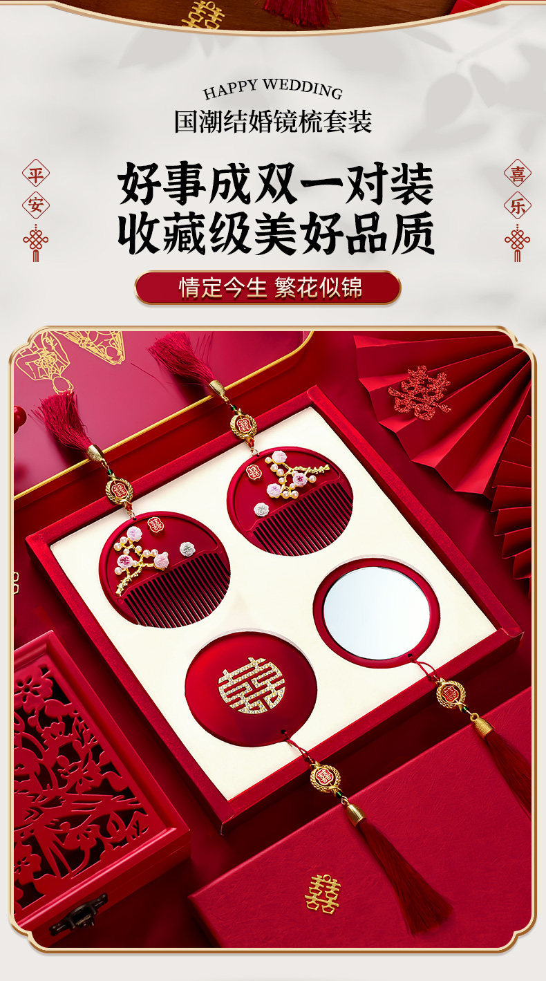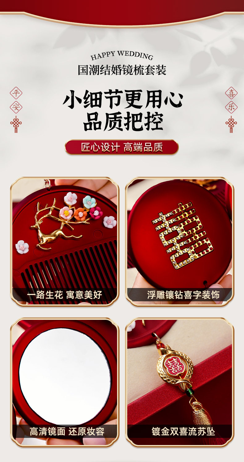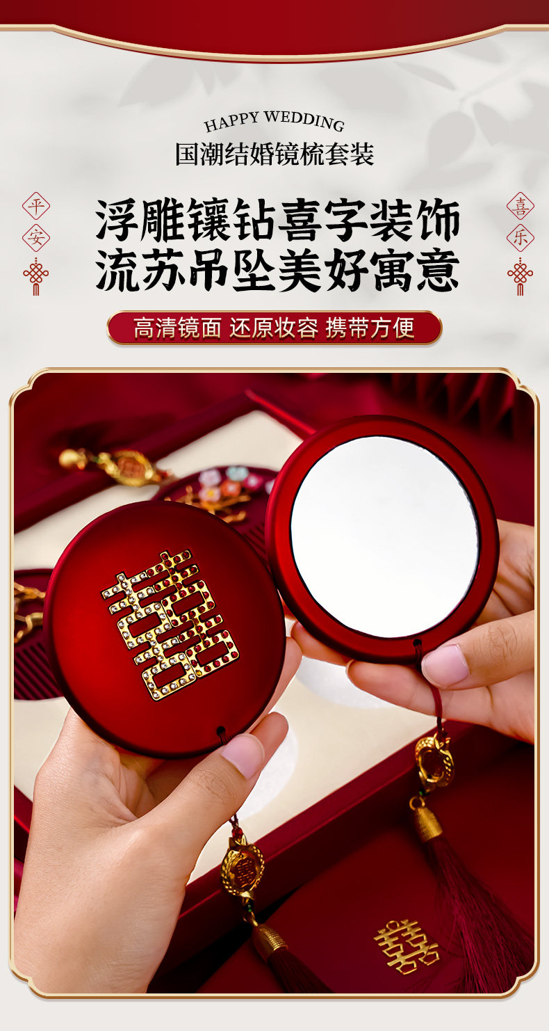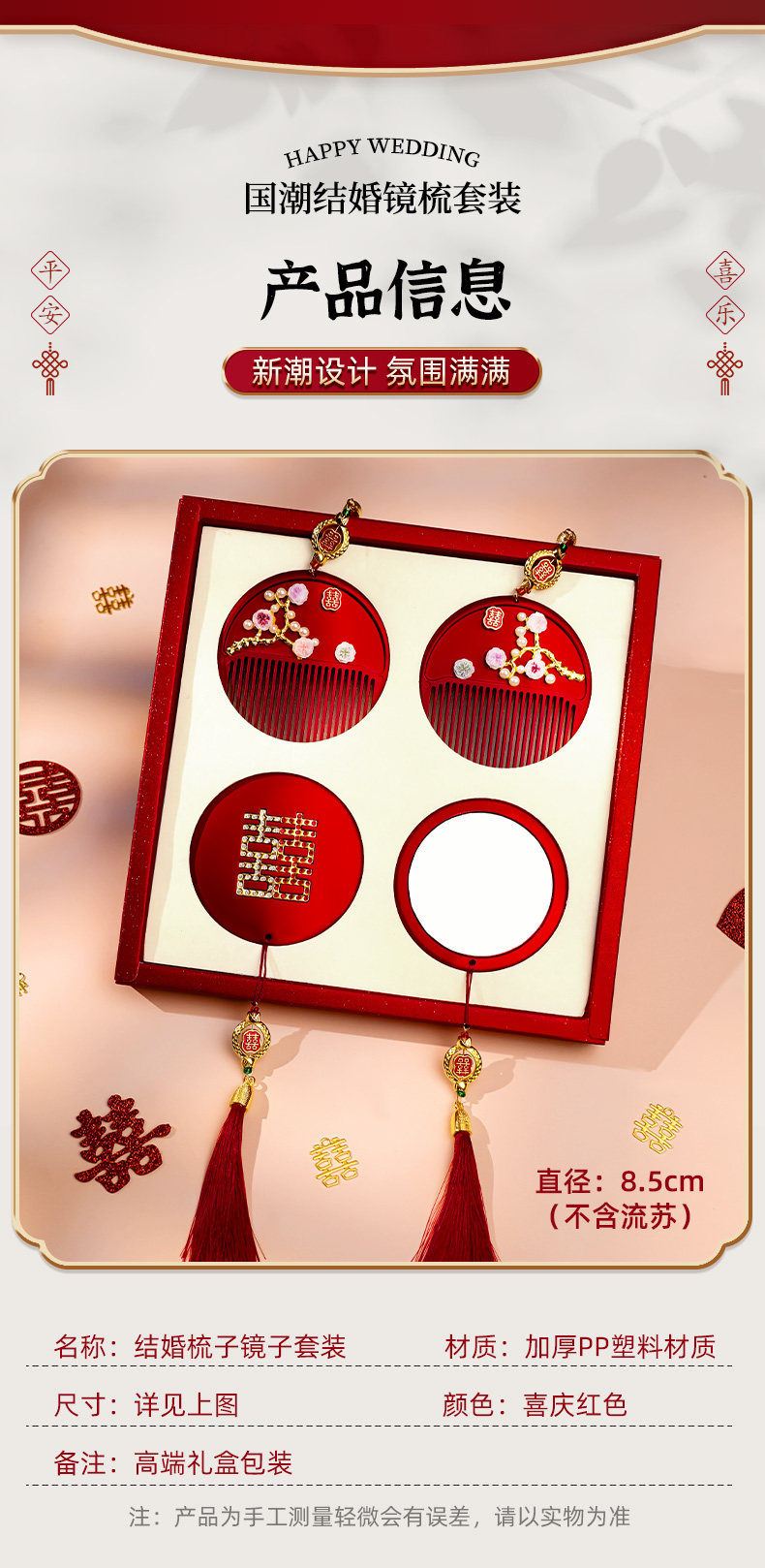 镜子结婚一对新娘陪嫁用品红色梳子套装新婚礼实用喜事物品全套