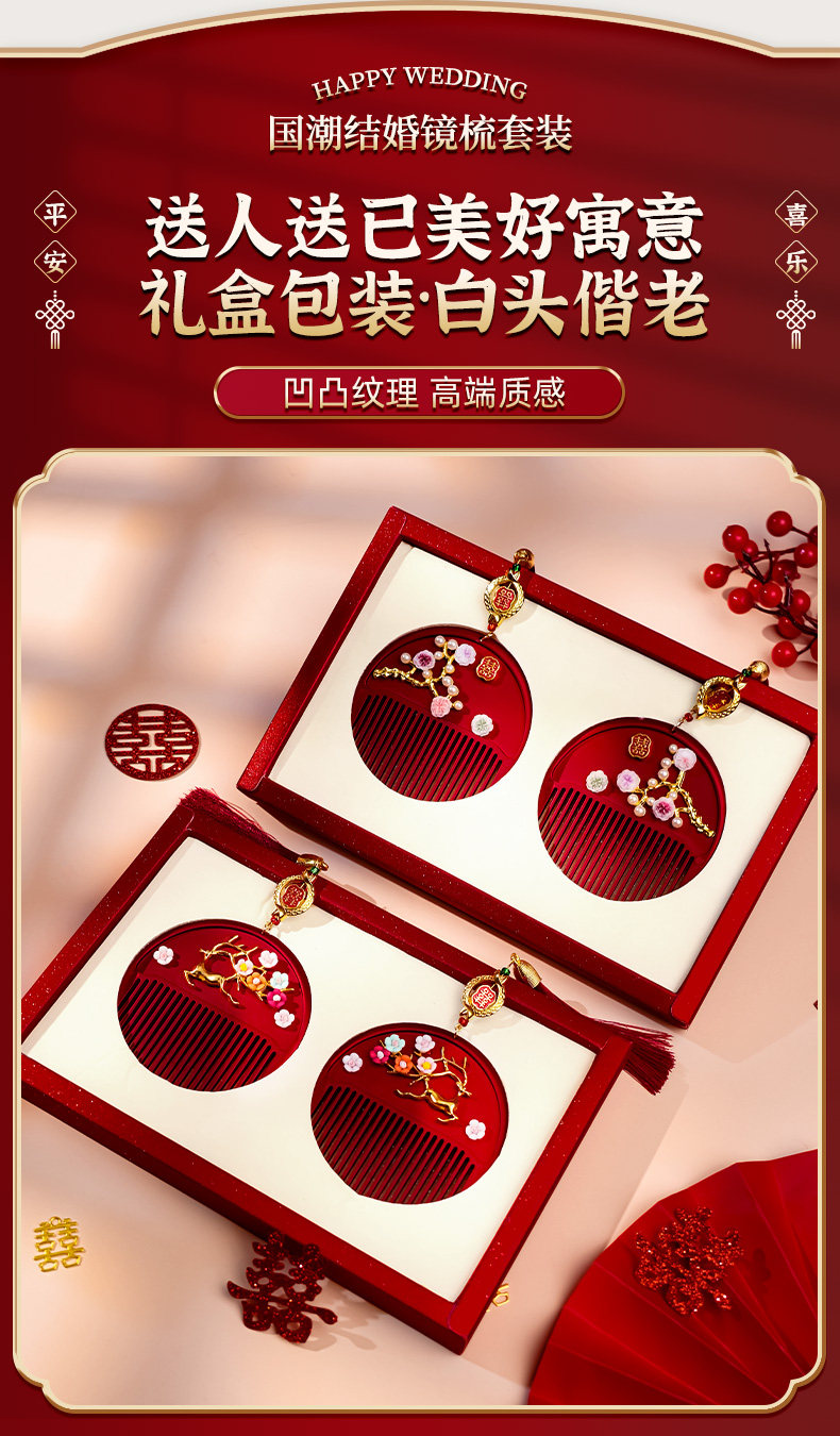 颜色分类 圆喜【情定今生】梳子镜子各1对(礼盒装),方喜【情定今生】梳子镜子各1对(礼盒装),圆喜【一路生花】梳子镜子各1对(礼盒装),方喜【一路生花】梳子镜子各1对(礼盒装),【情定今生】梳子1对(礼盒装),【一路生花】梳子1对(礼盒装)