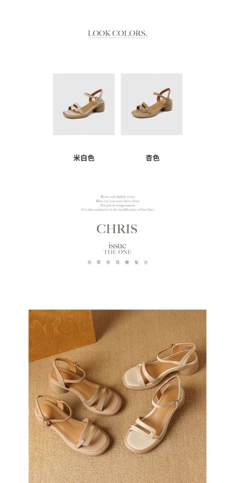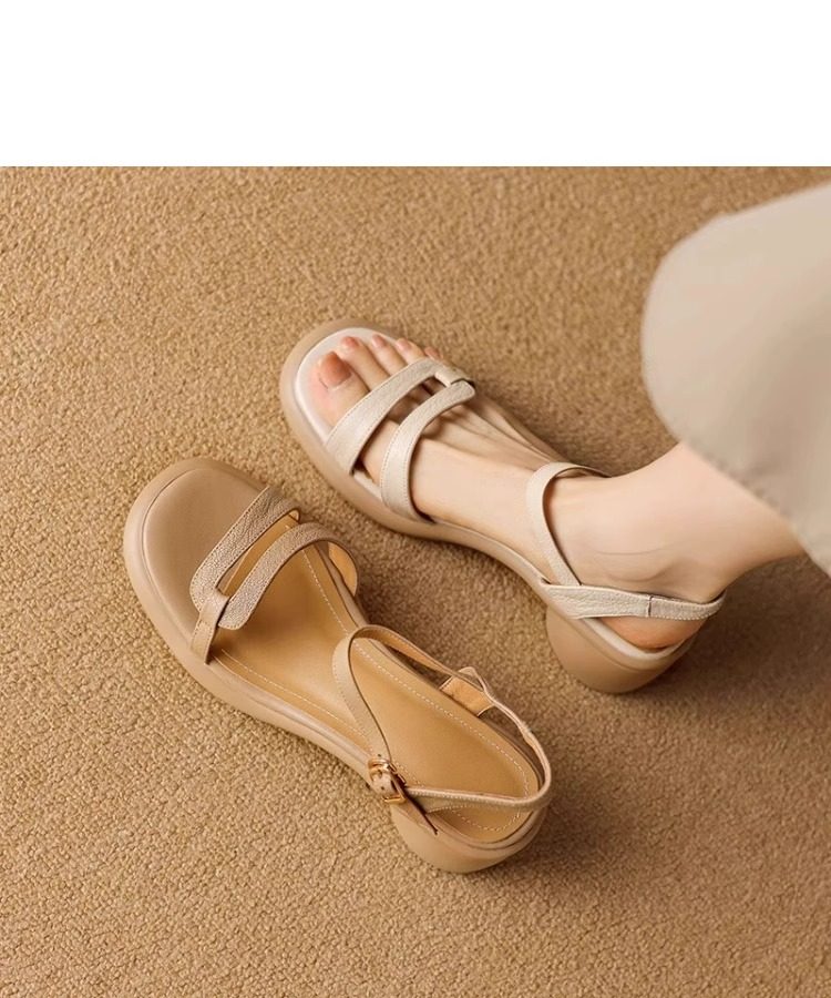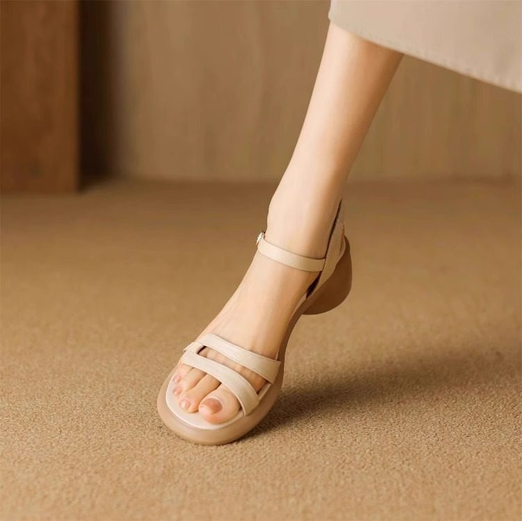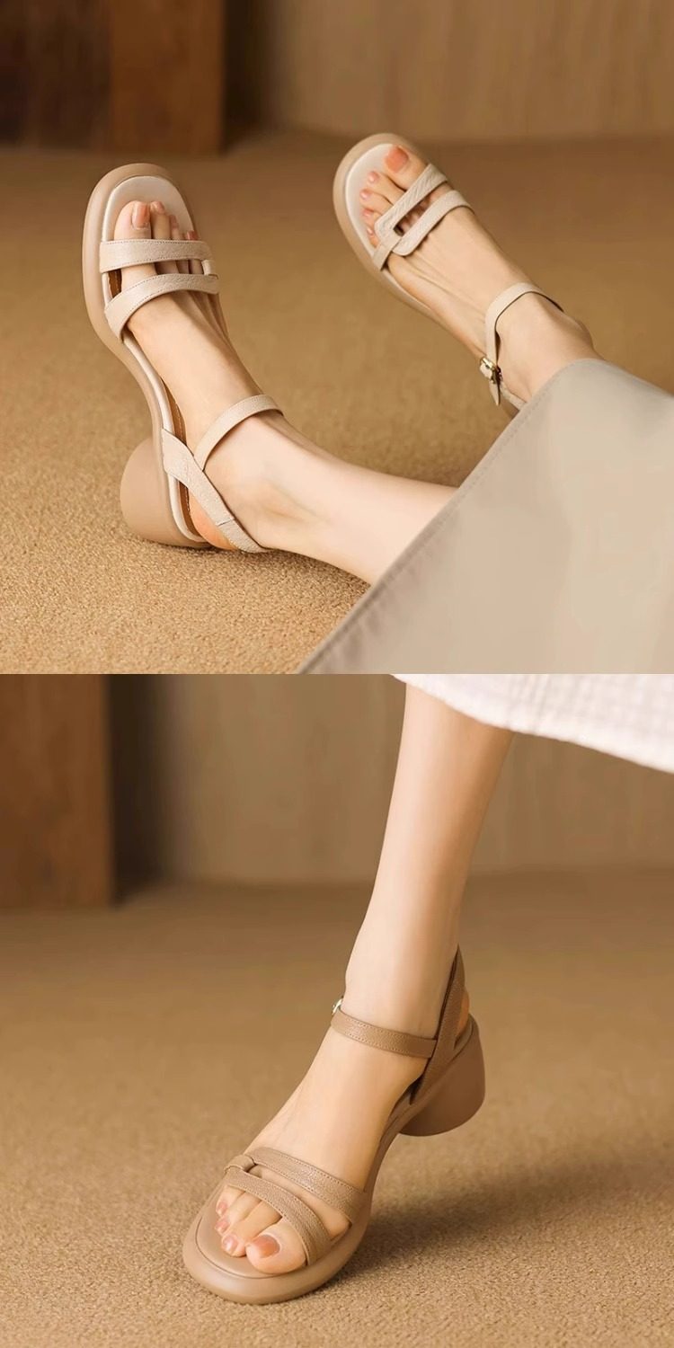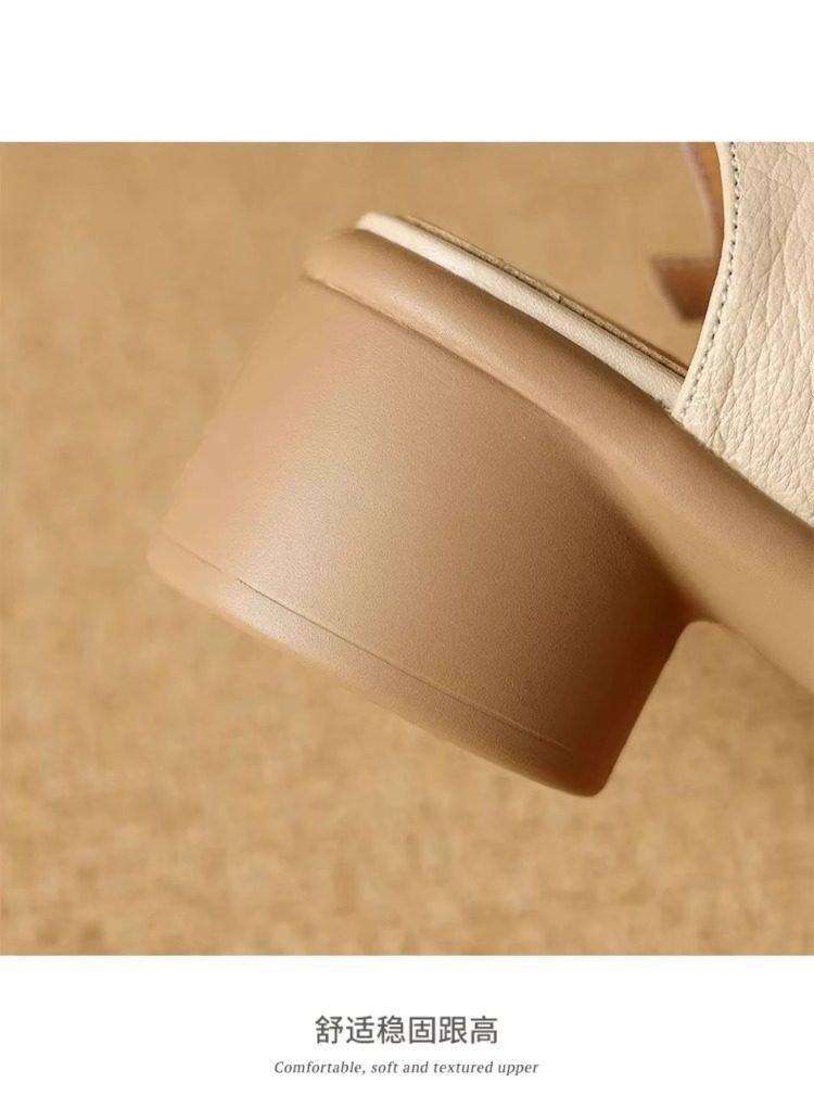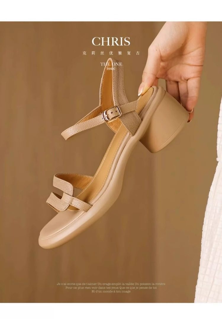 Genuine Leather Chunky Heel Sandals for Women, Suitable for Outdoor Wear, 2025 Summer New Style, Thick Sole, Soft Sole, Soft Leather, French High Heels