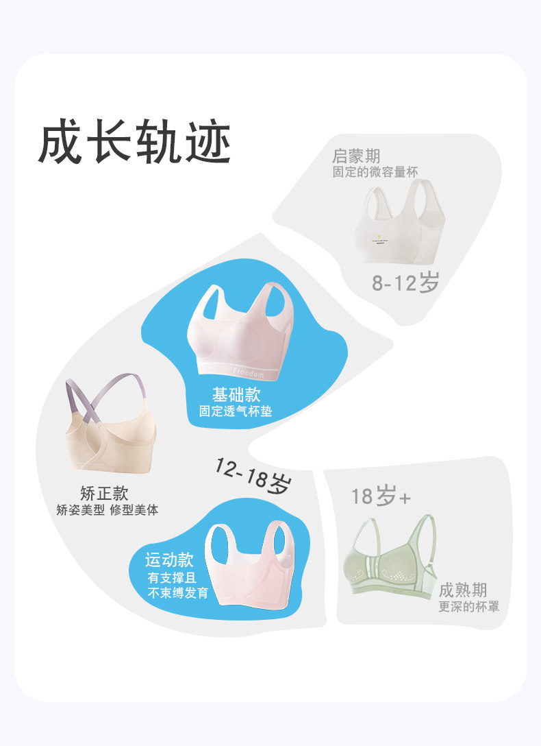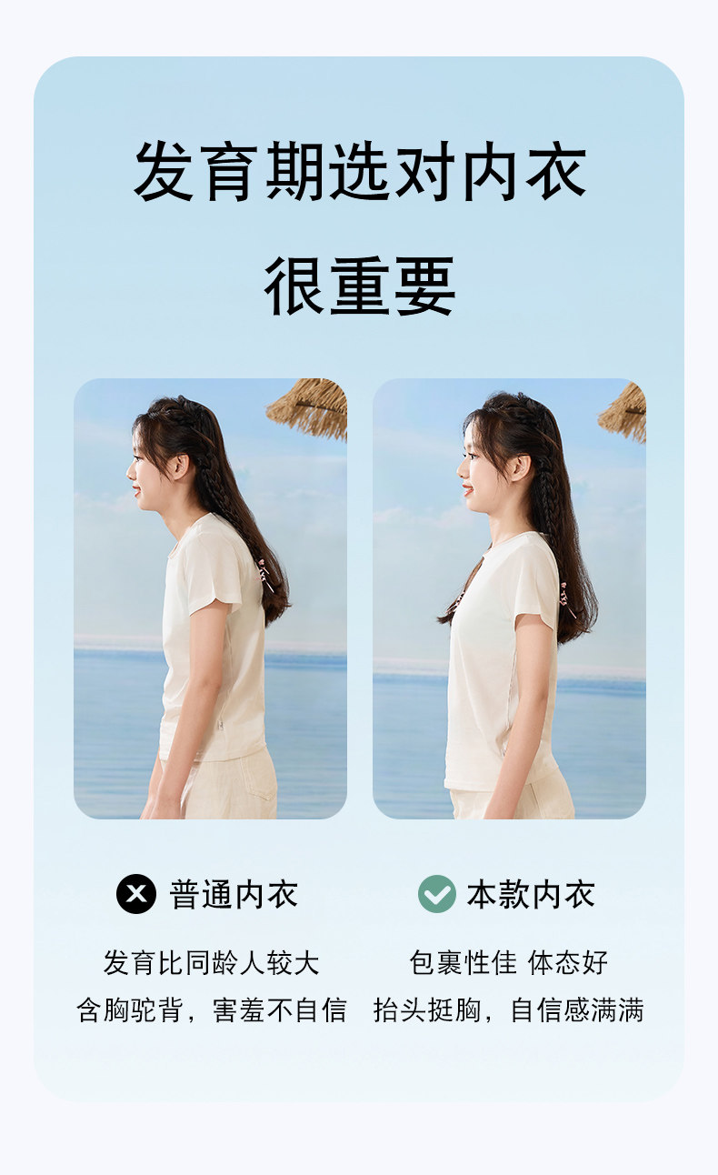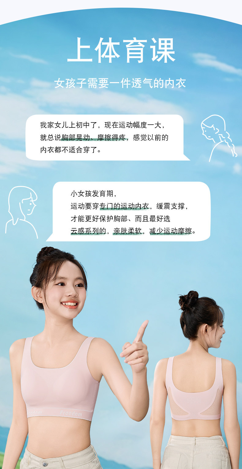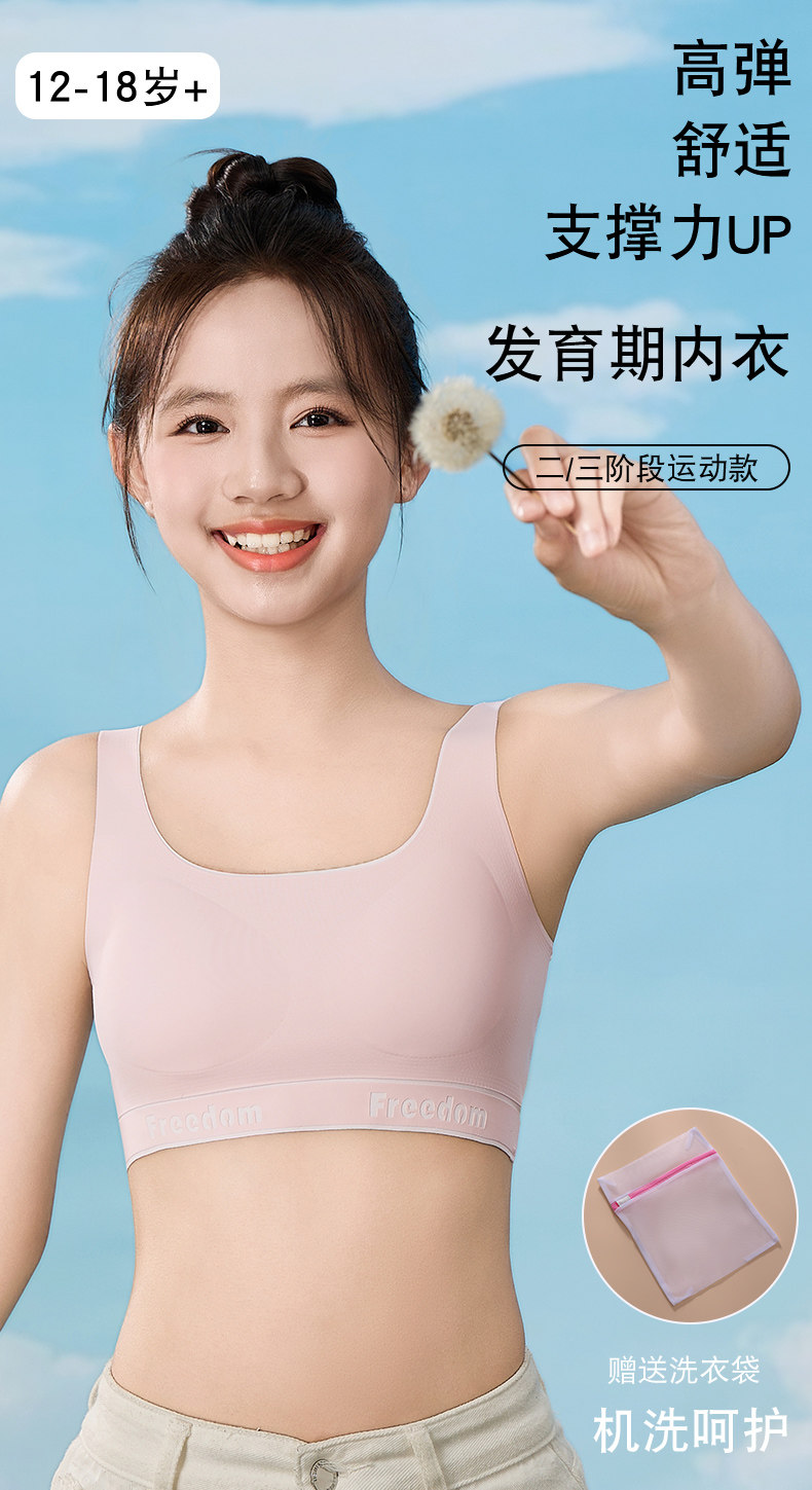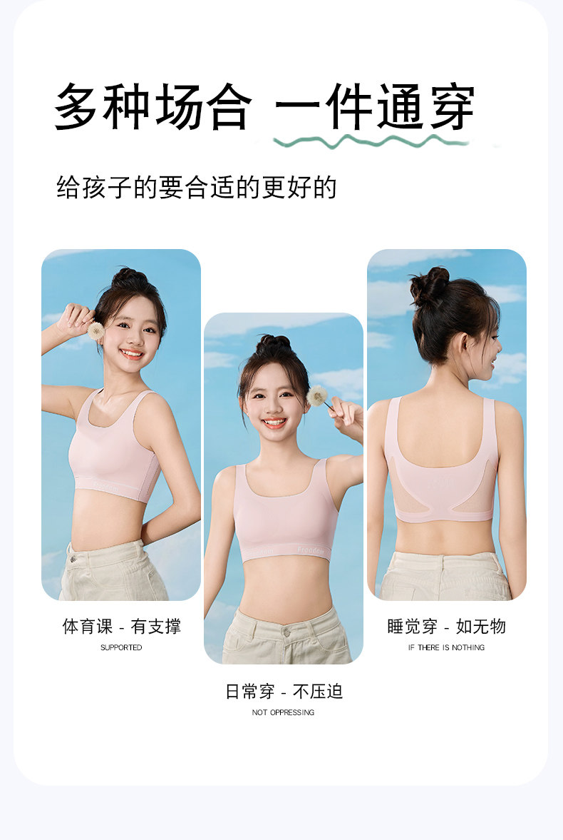 Specialized Underwear for College Entrance Exams, Girls' Bras for Middle and High School Students, Metal-Free, for Development Period, Physical Exams, Sports, Shockproof Vests
