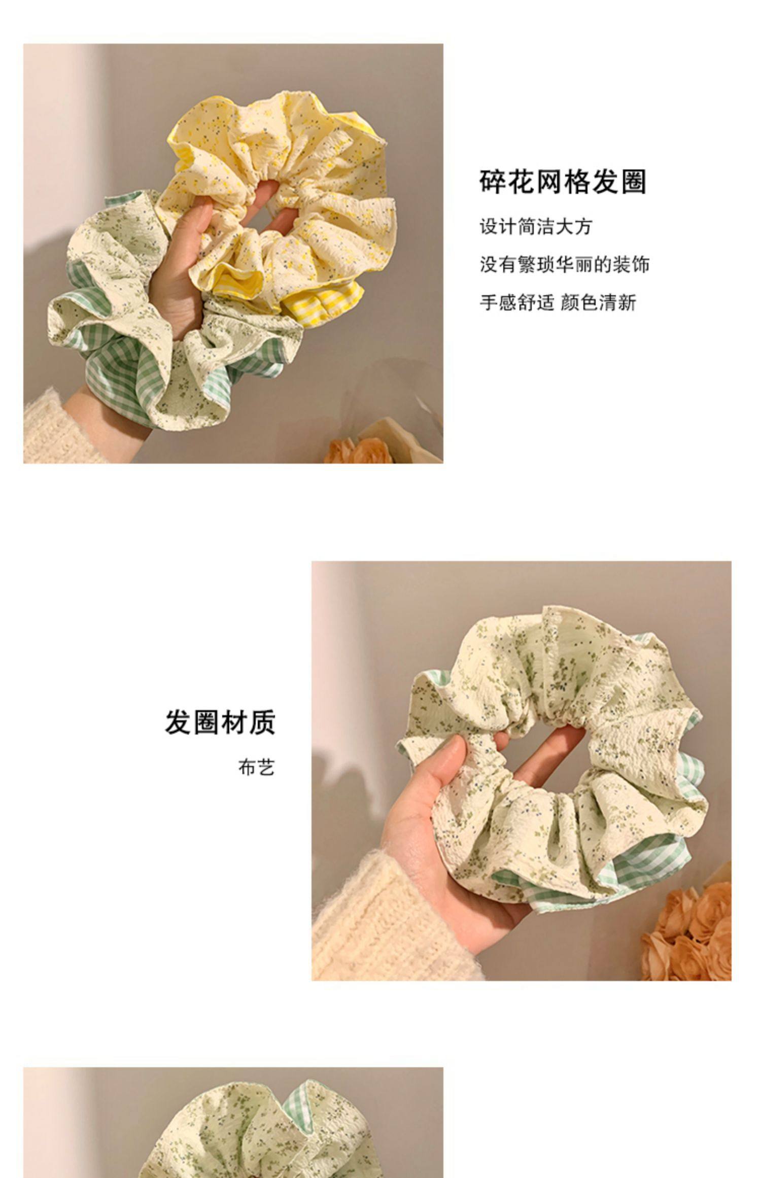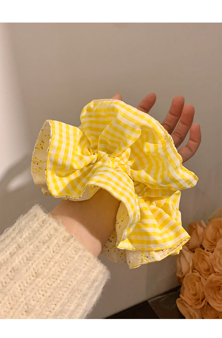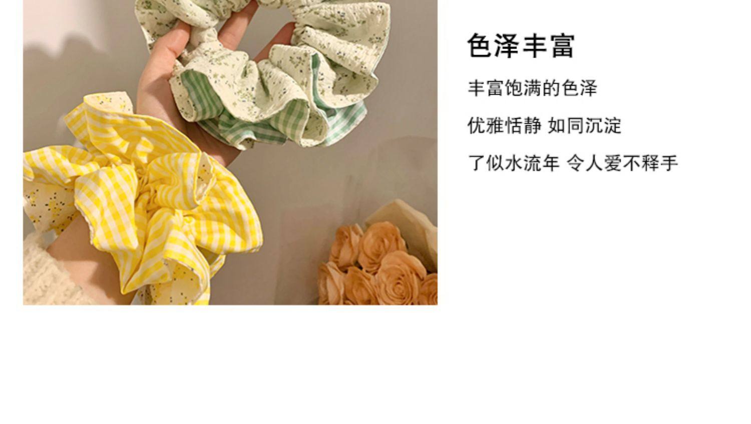 韩系黄色格子碎花大肠发圈女高级感慵懒风发绳丸子头大号百搭头饰