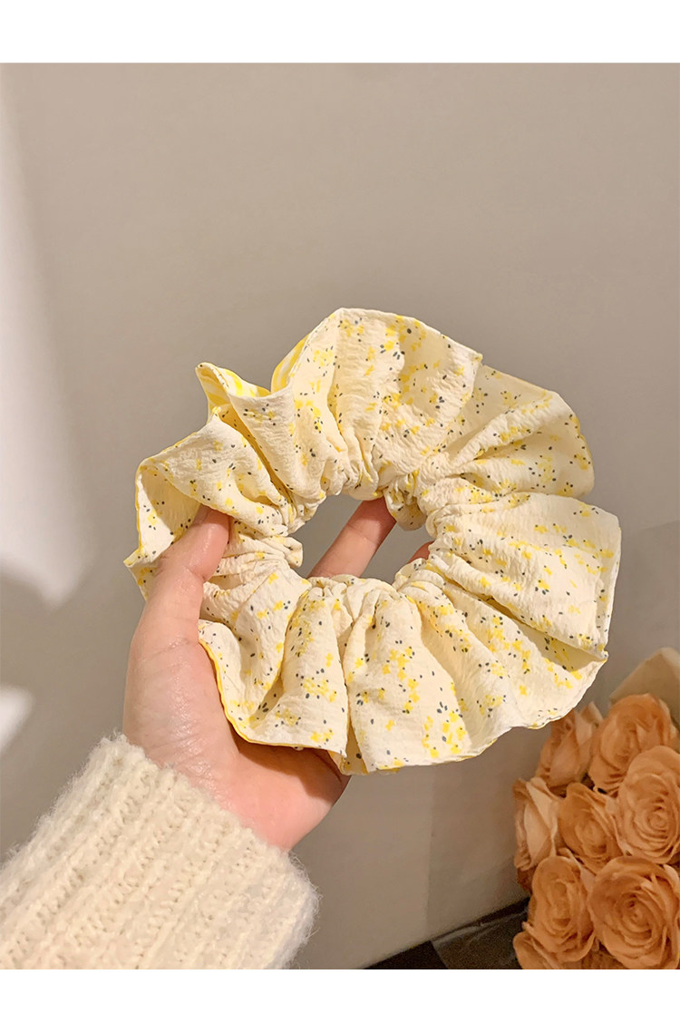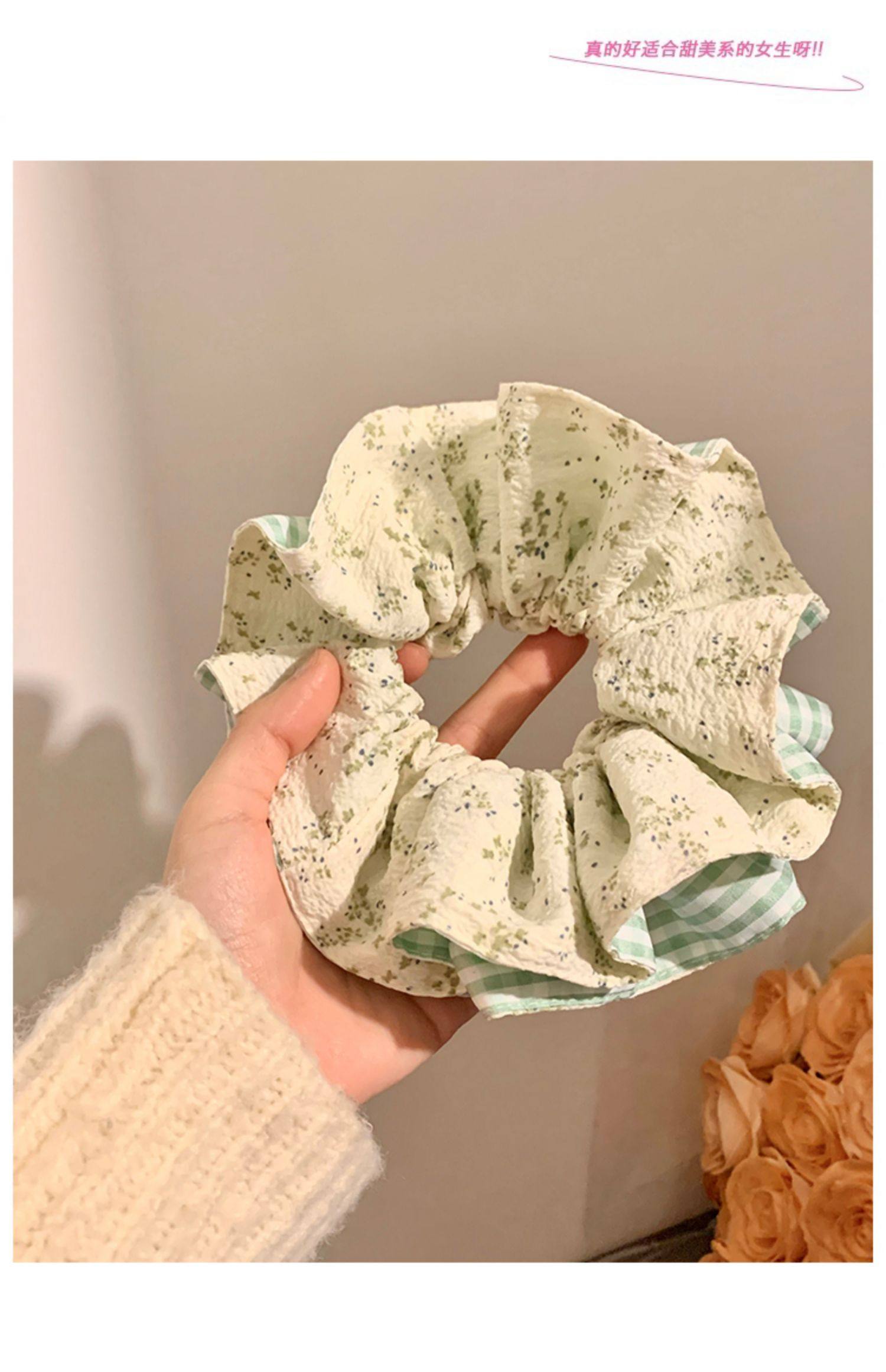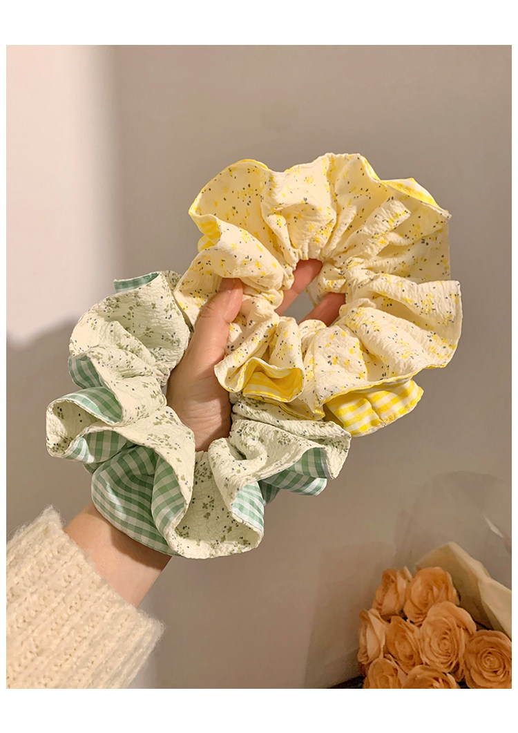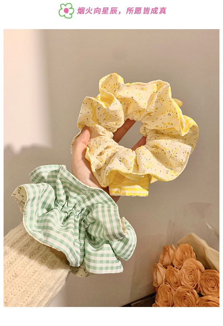 韩系黄色格子碎花大肠发圈女高级感慵懒风发绳丸子头大号百搭头饰