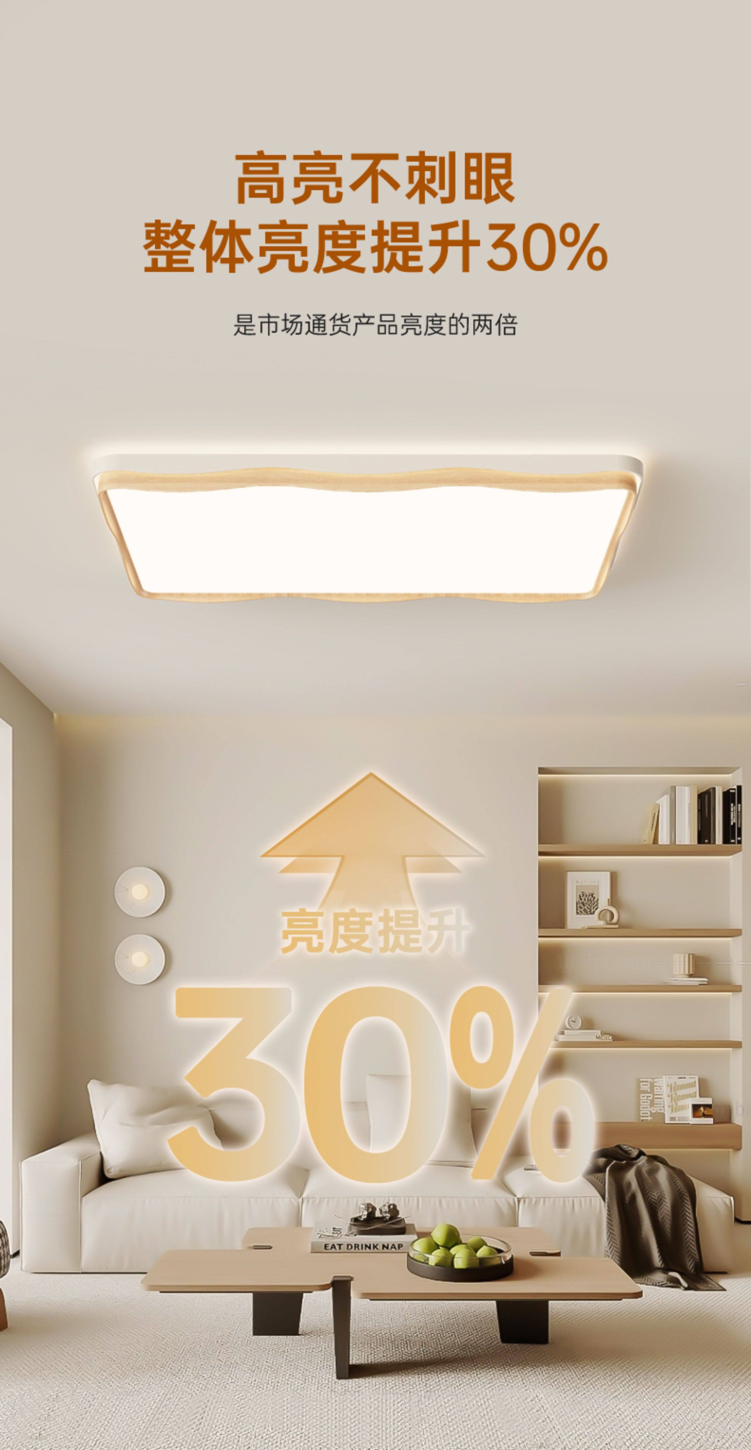 中山2026新款全光谱客厅灯现代简约大气led吸顶灯原木奶油风灯具