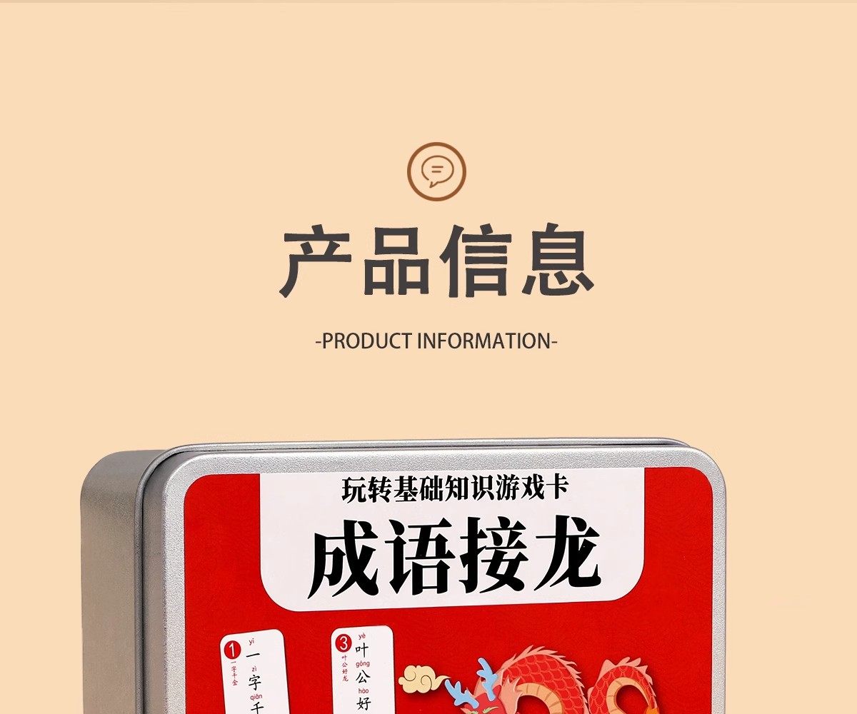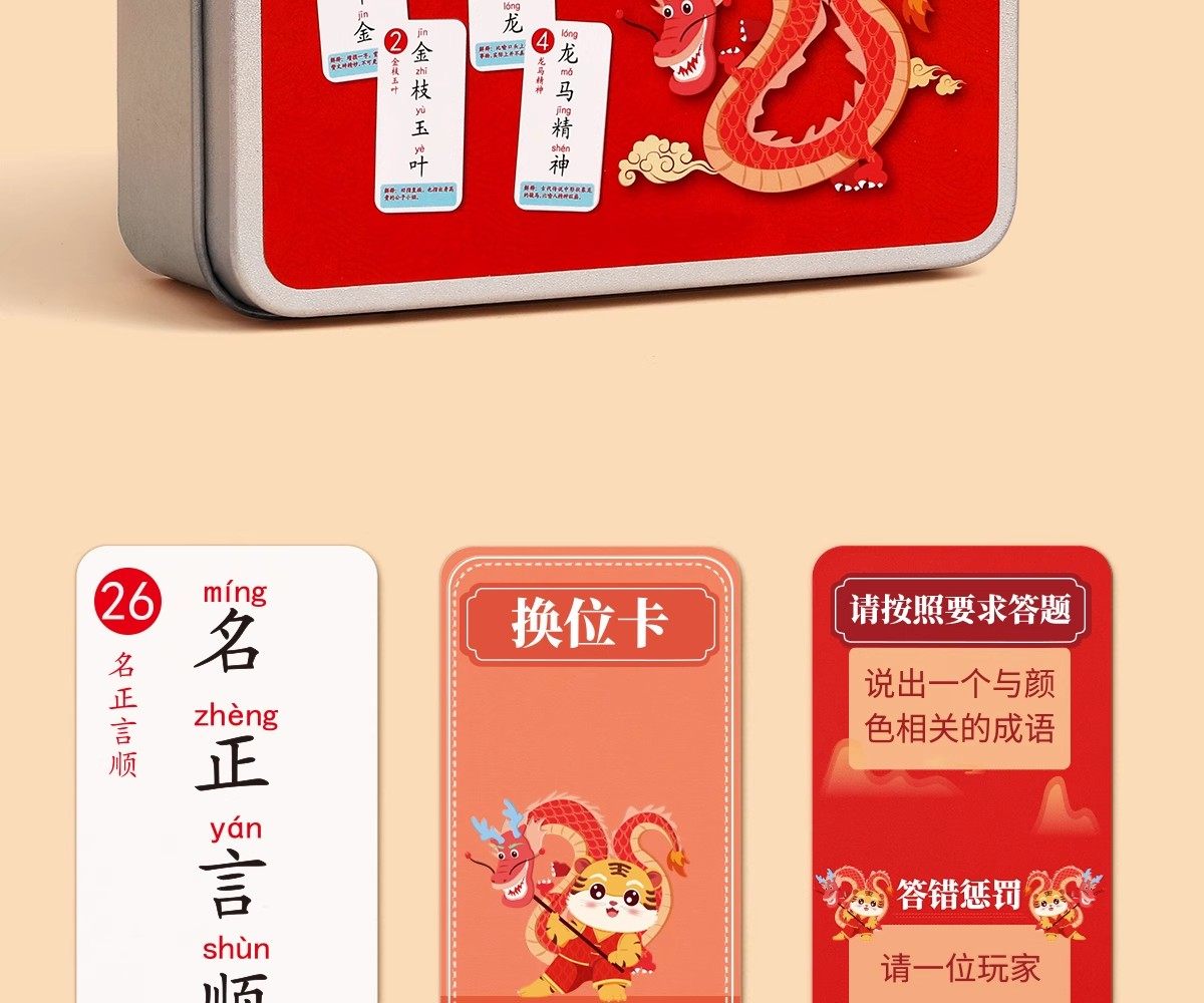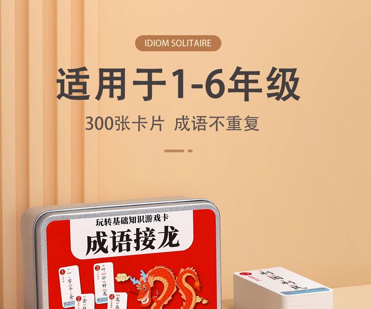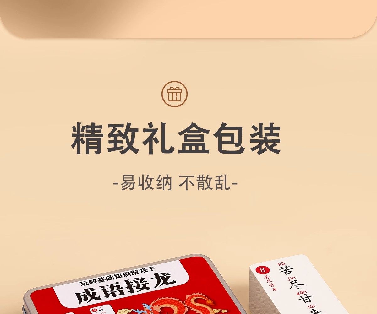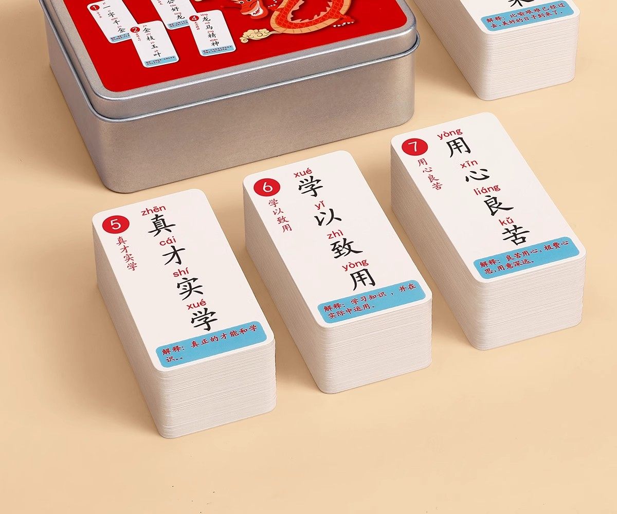 Color Classification [172 Idioms]Paper Box (Upgraded and Thickened),[325 Idiom Chain Cards]Iron Box (Upgraded and Thickened),2 Boxes[325 Idioms + 250 Magic Chinese Characters],3 Boxes[325 Idioms for Idiom Solitaire + 108 Idioms for Guessing Idioms Based on Pictures],3 Boxes[325 Idiom Chain Cards + 336 Knowledge Power Cards],4 Boxes[Idiom Solitaire + Magic Chinese Characters + Picture Idiom Guessing Game],6 Boxes[Idiom Solitaire + Magic Chinese Characters + Picture Idiom Guessing Game + Knowledge Energy Cards]