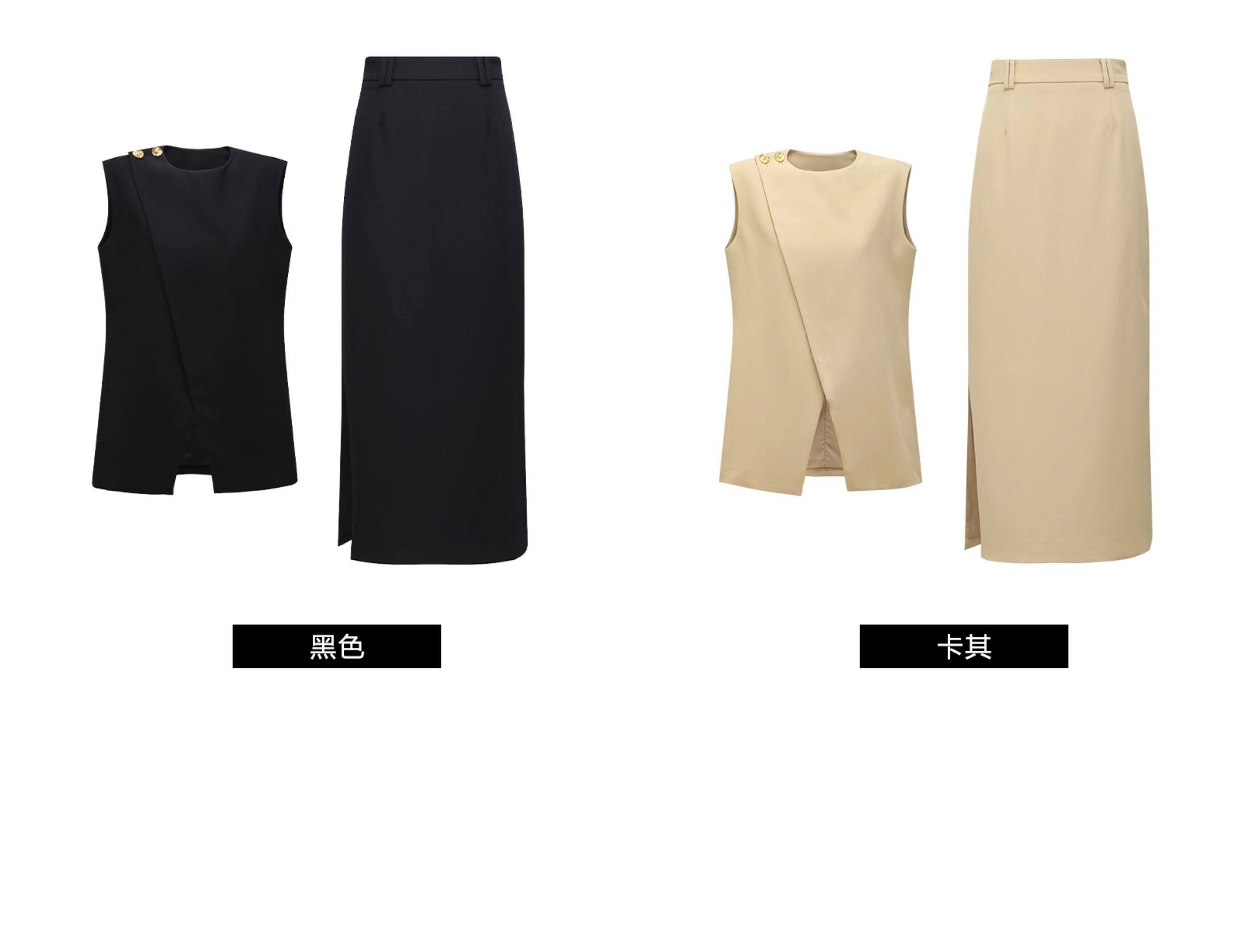 Wangxo|Imported Twisted Drape Fabric|Elegant Commuter-Style Asymmetrical Placket with Pleated Slit Vest and Skirt Set
