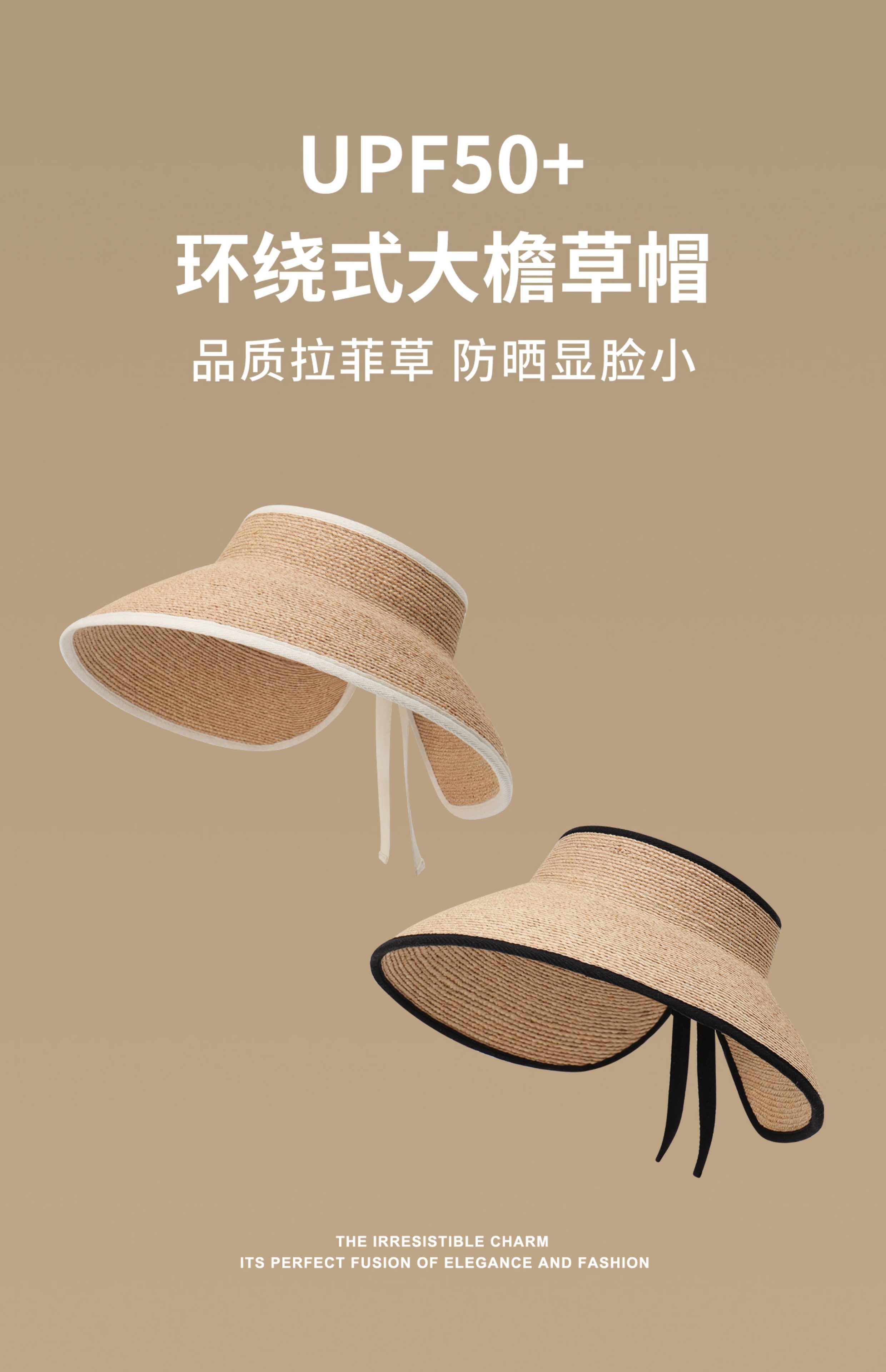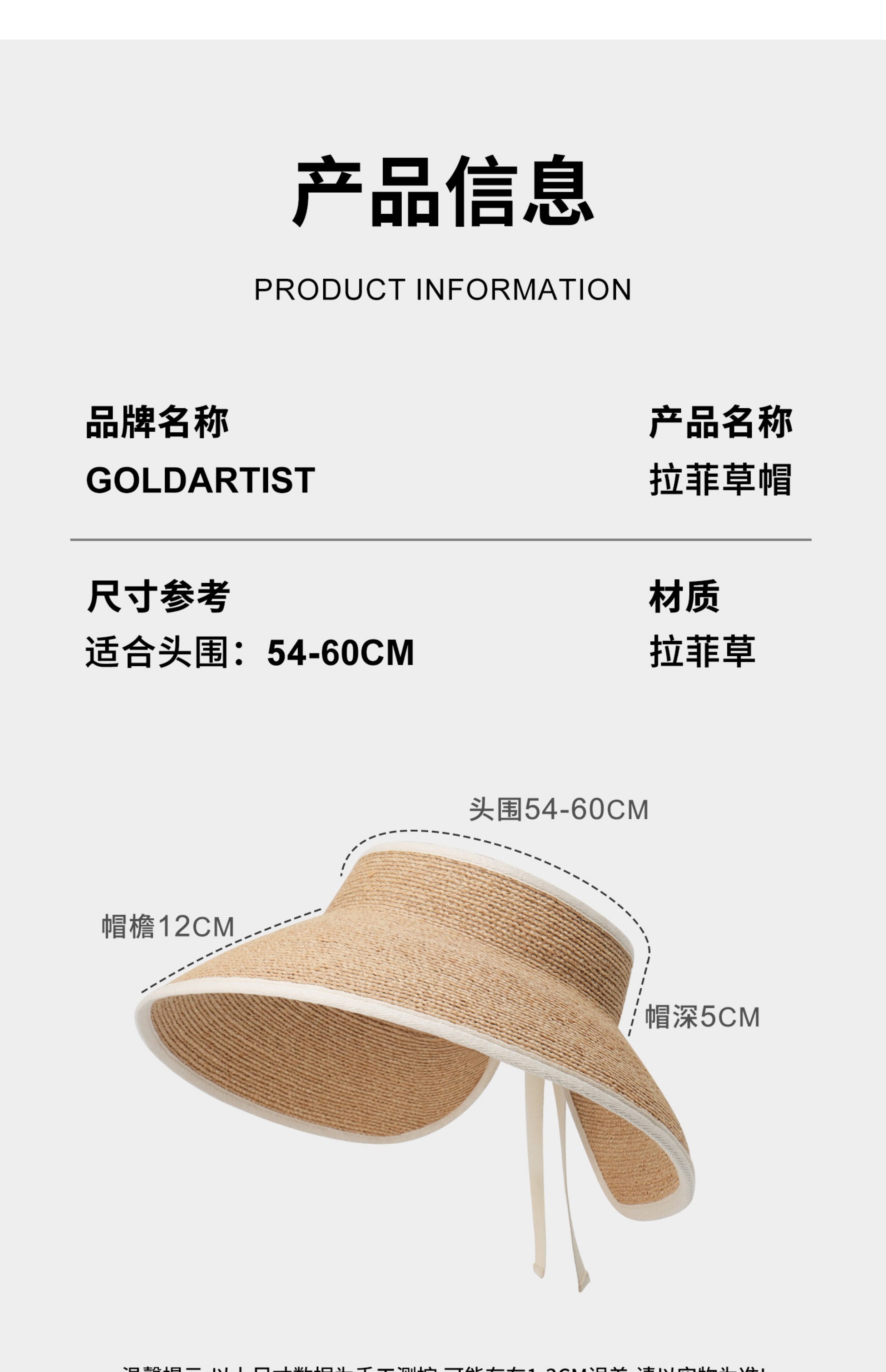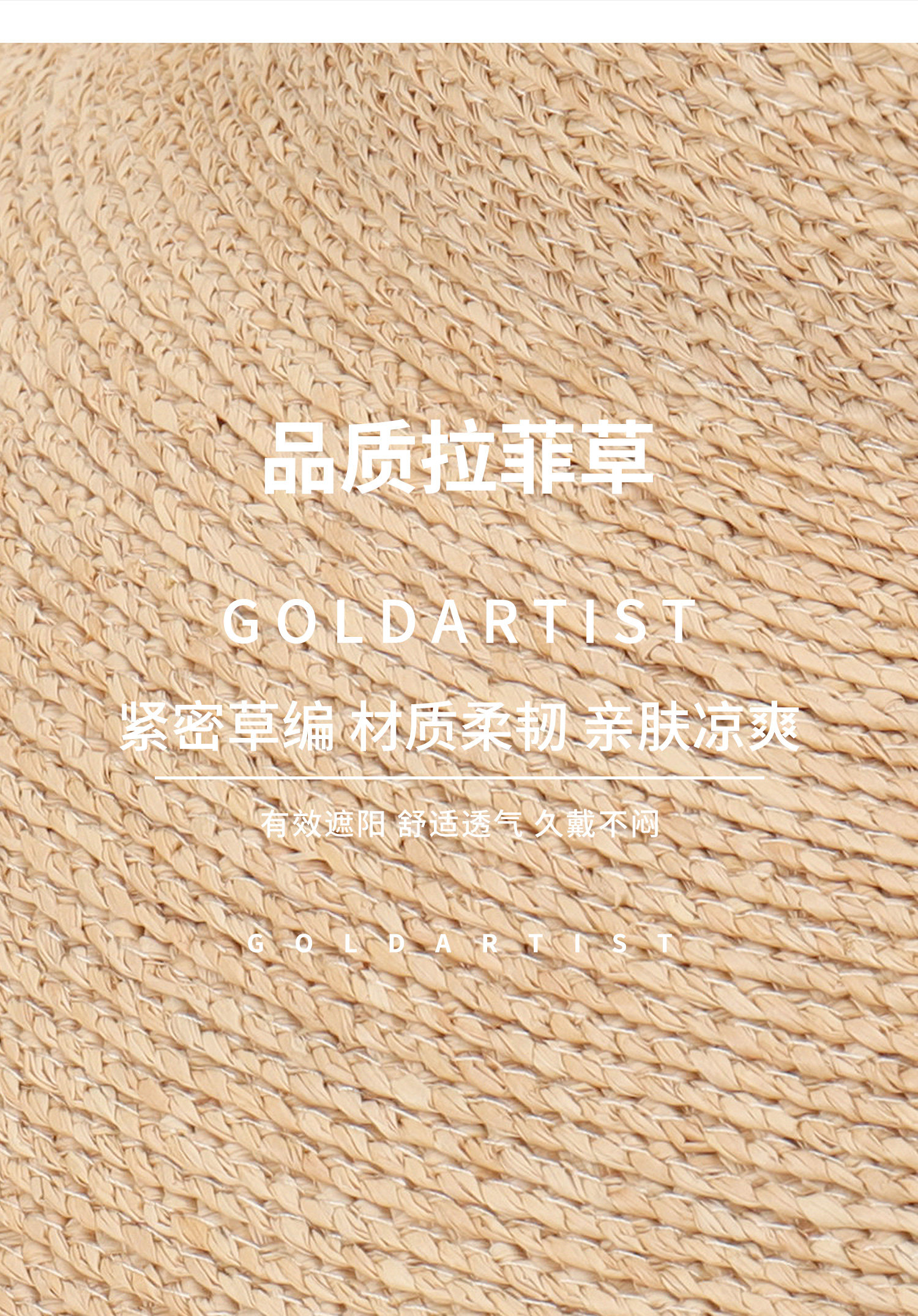 GOLDARTIST拉菲草空顶帽女夏大帽檐防紫外线草编防晒草帽遮阳帽子