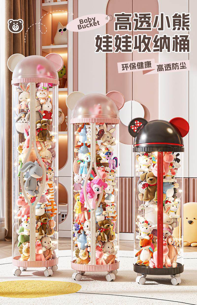 新款娃娃收纳桶拉链款玩收纳筒毛绒玩偶整理收纳儿童公仔透明