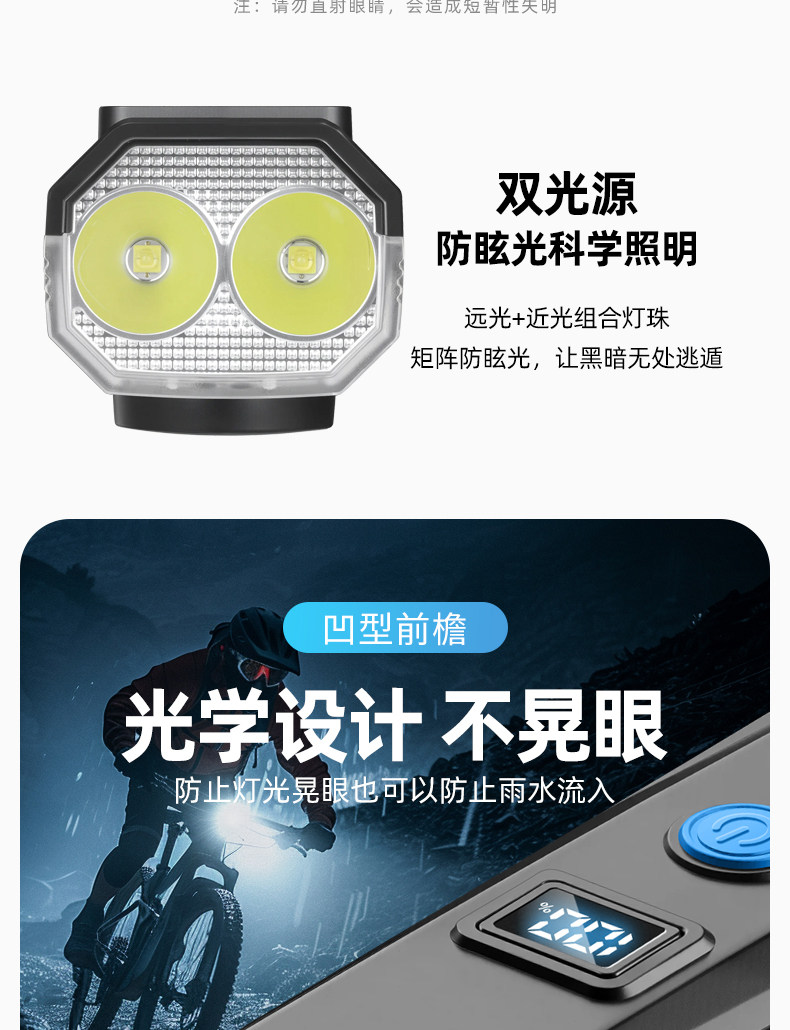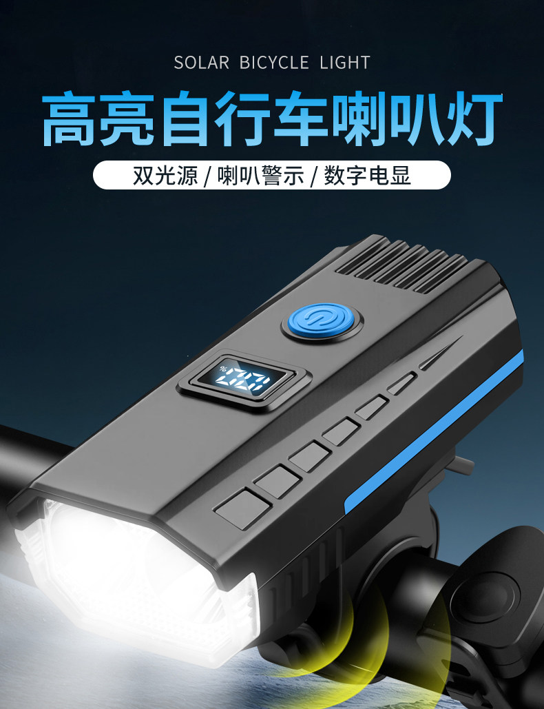 自行车灯强光夜骑灯太阳能充电前灯儿童山地车公路车夜间骑行装备