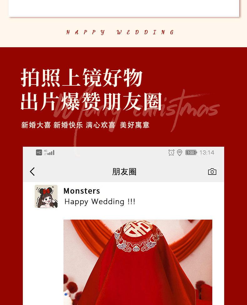 2025新款结婚红盖头中式婚礼秀禾服专用红色新娘头饰婚庆用品大全
