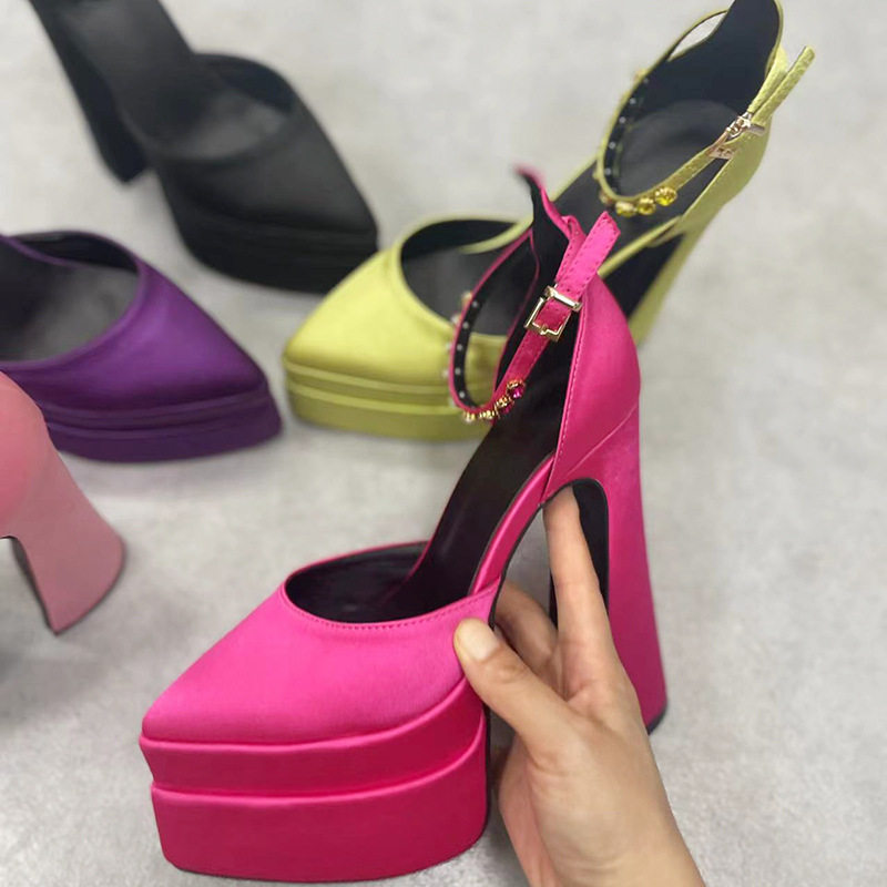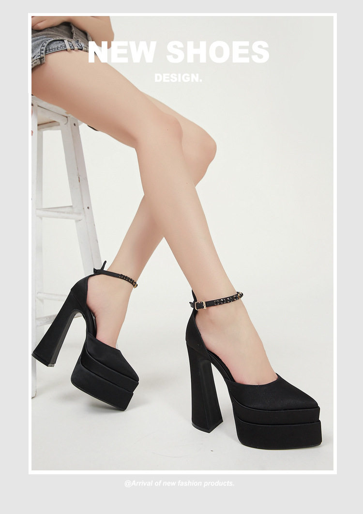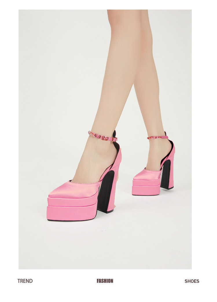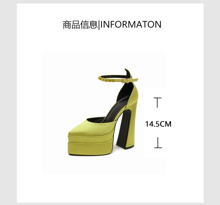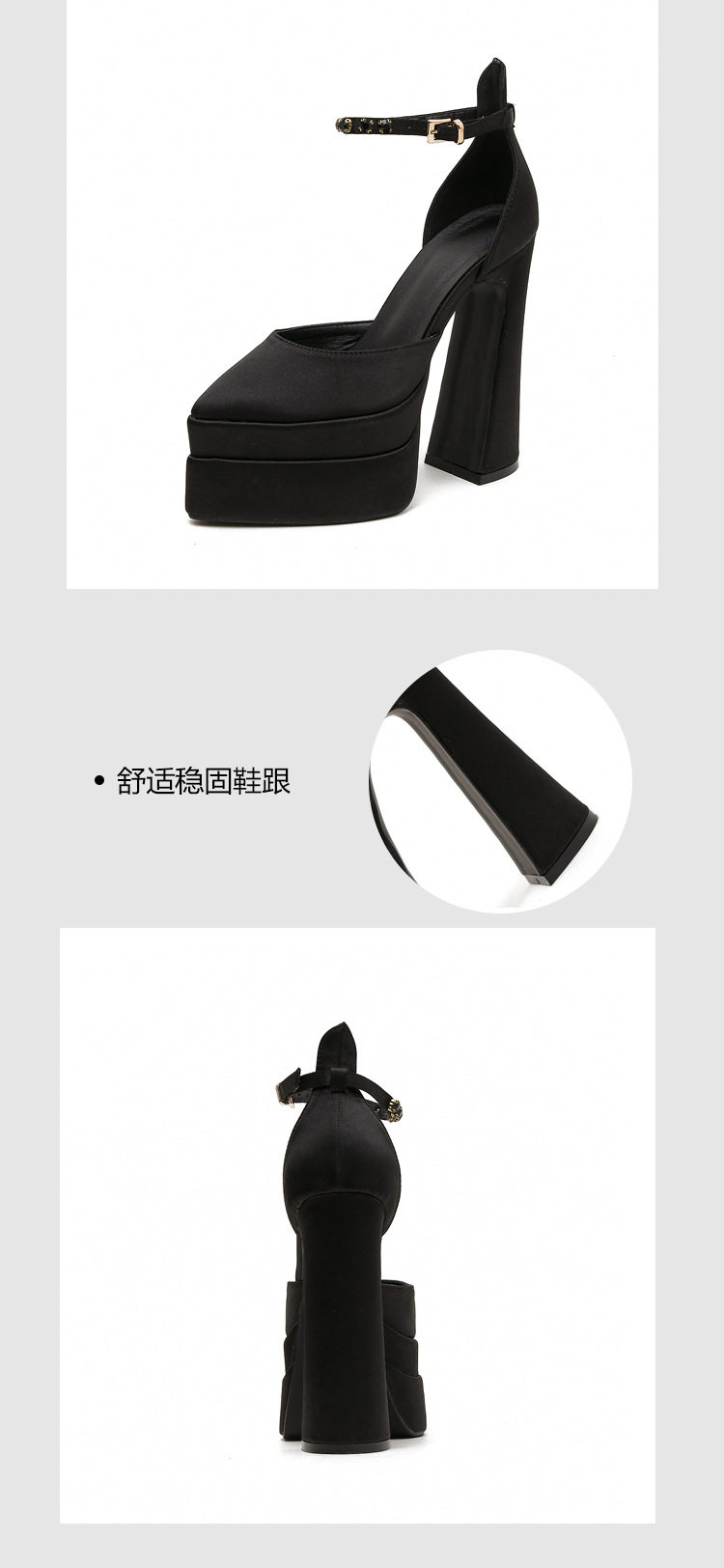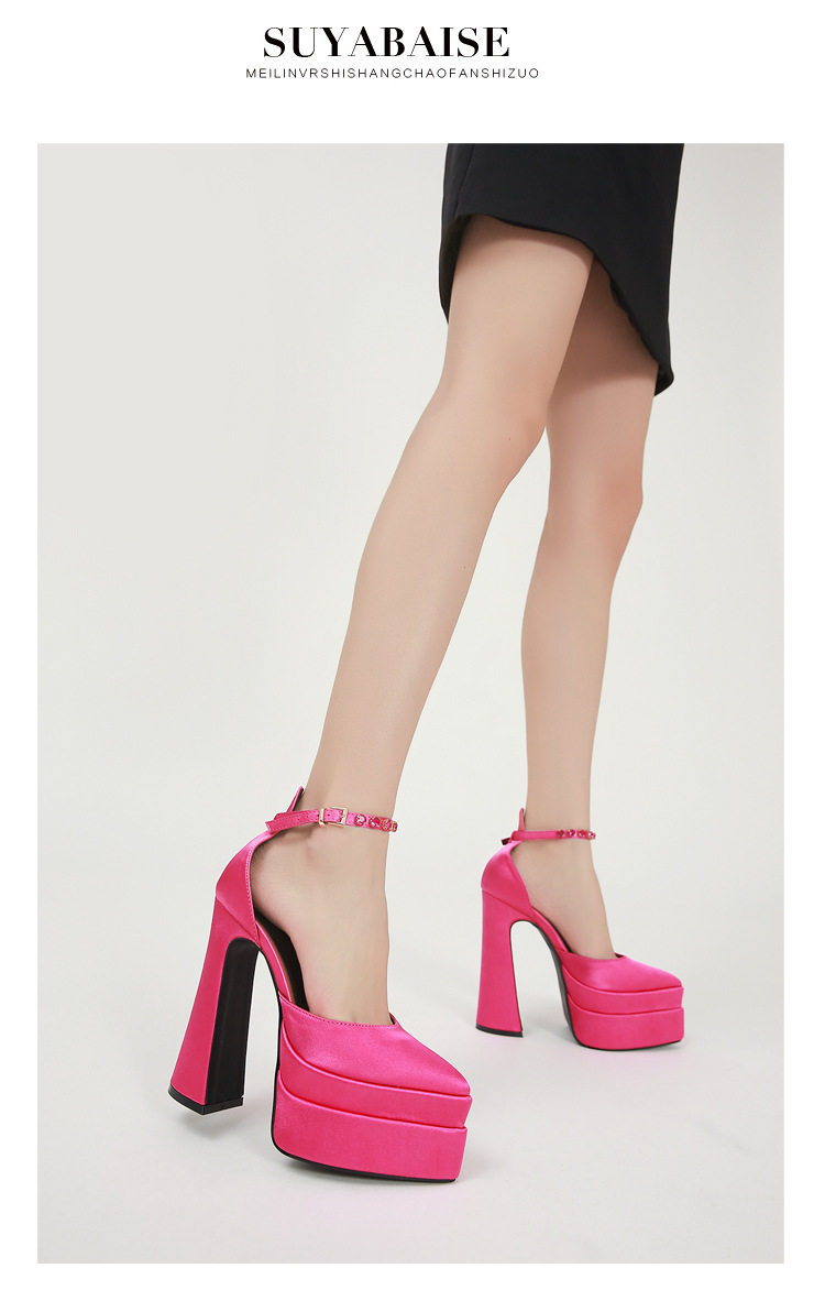 粗跟模特走秀超高跟防水台凉鞋绸缎时尚玛丽珍鞋恨天高礼服宴会鞋