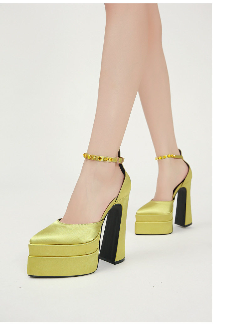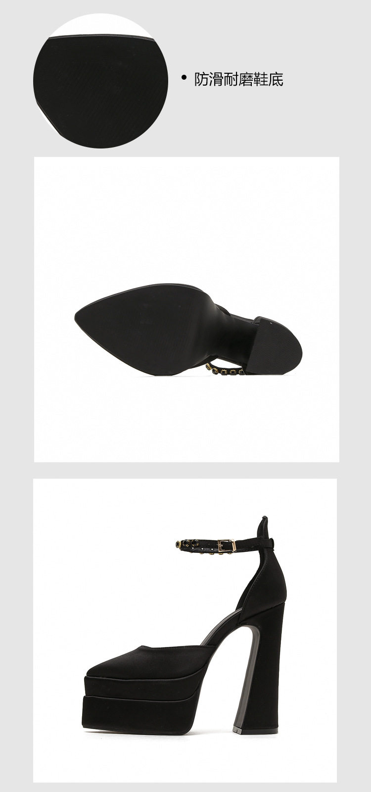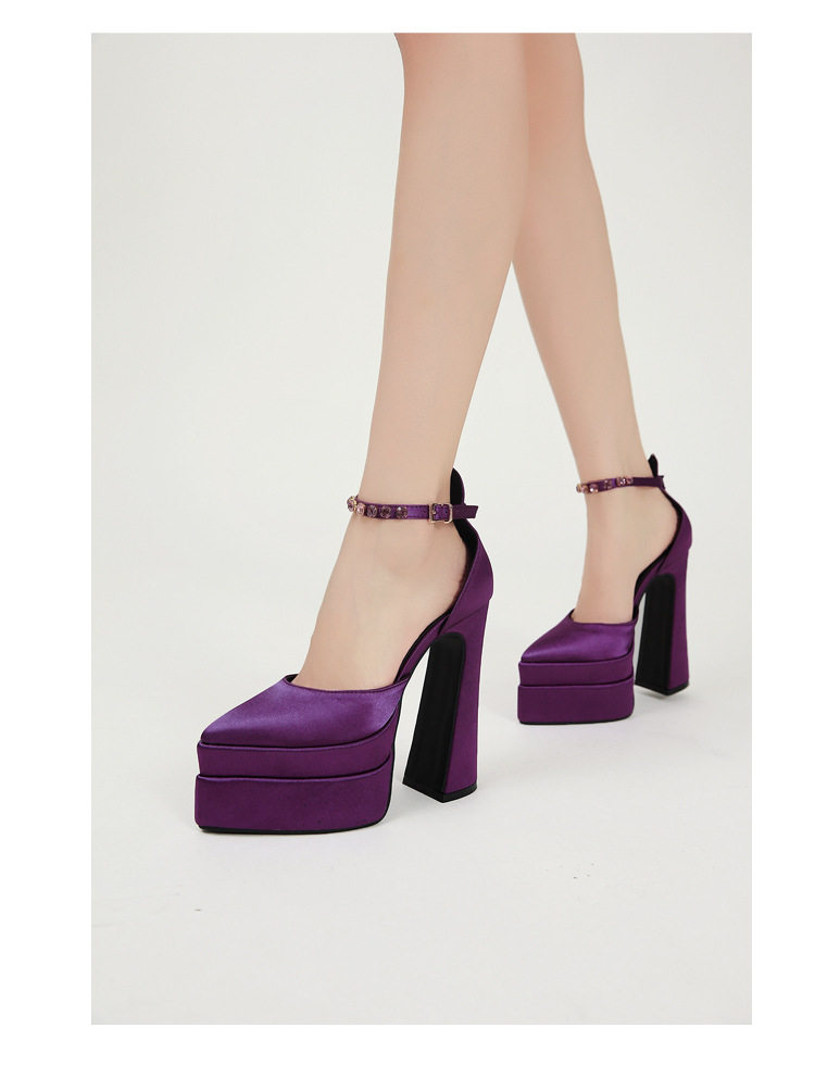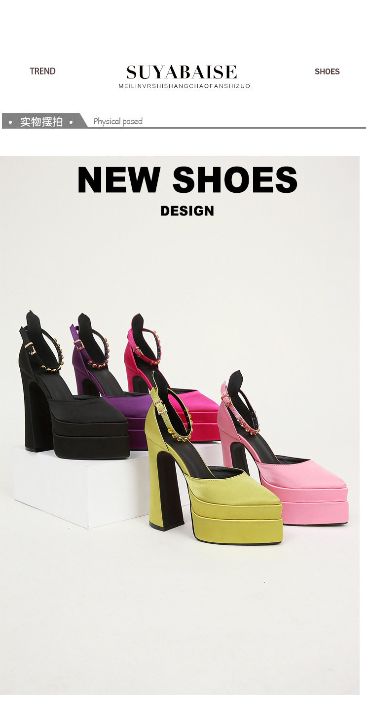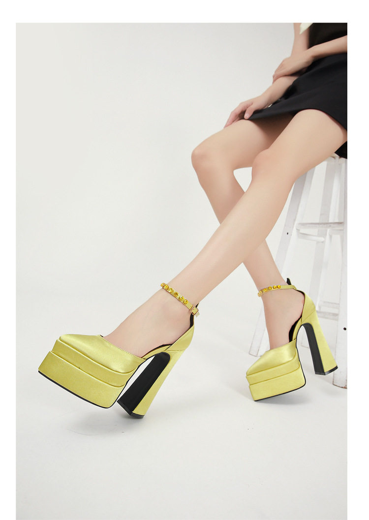 粗跟模特走秀超高跟防水台凉鞋绸缎时尚玛丽珍鞋恨天高礼服宴会鞋