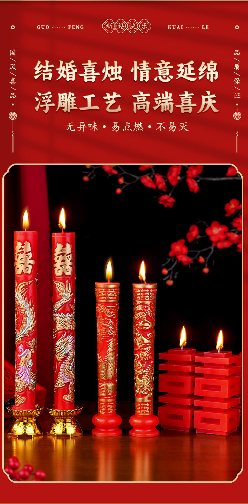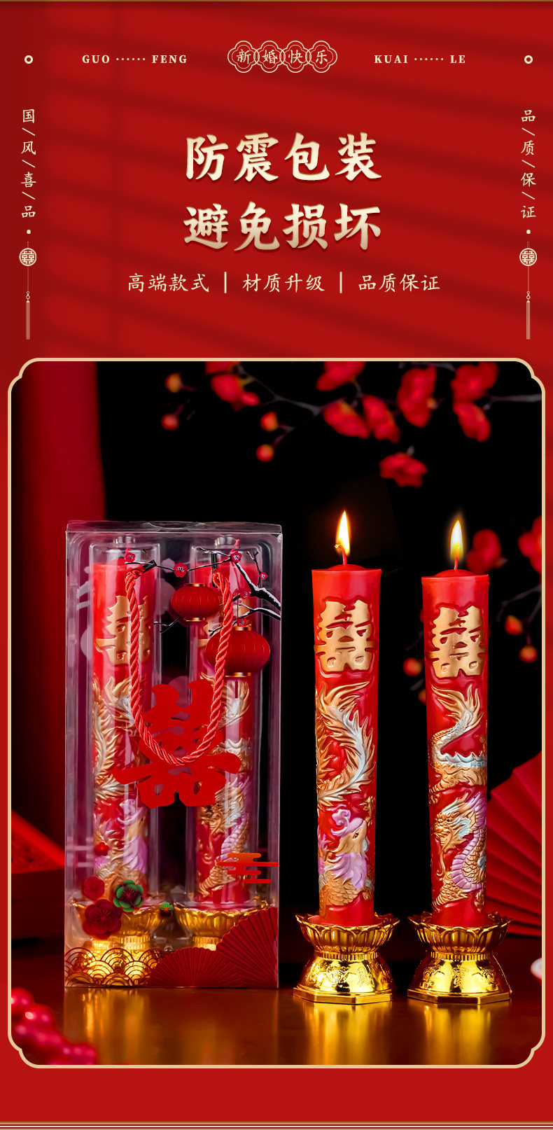 结婚龙凤喜字蜡烛一对喜庆婚房装饰婚礼专用红色喜烛婚庆用品大全