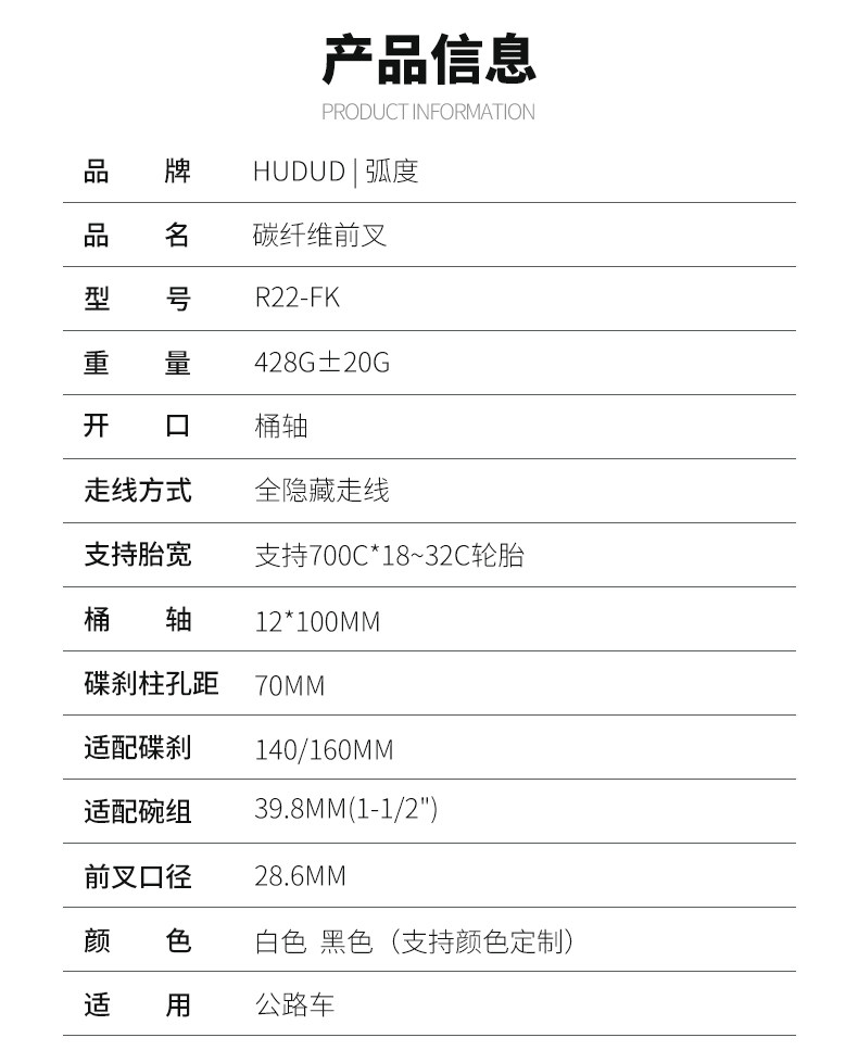 Hudud Carbon Fiber Internal Routing Thru-Axle Disc Brake 700C Road Bike Fork Full Internal Routing Tapered Tube Fork R22