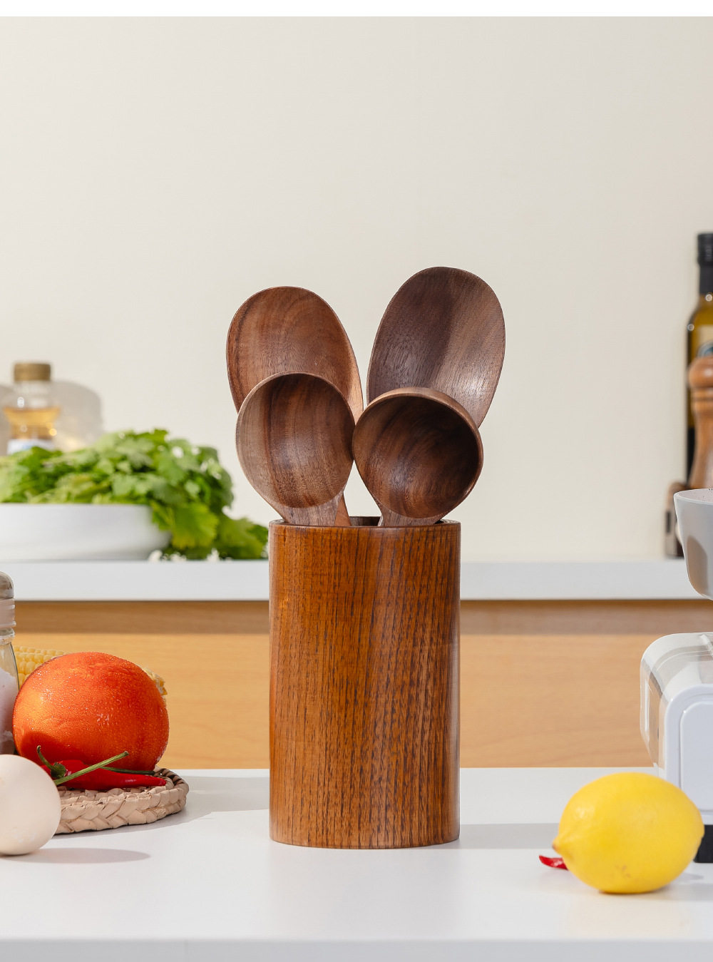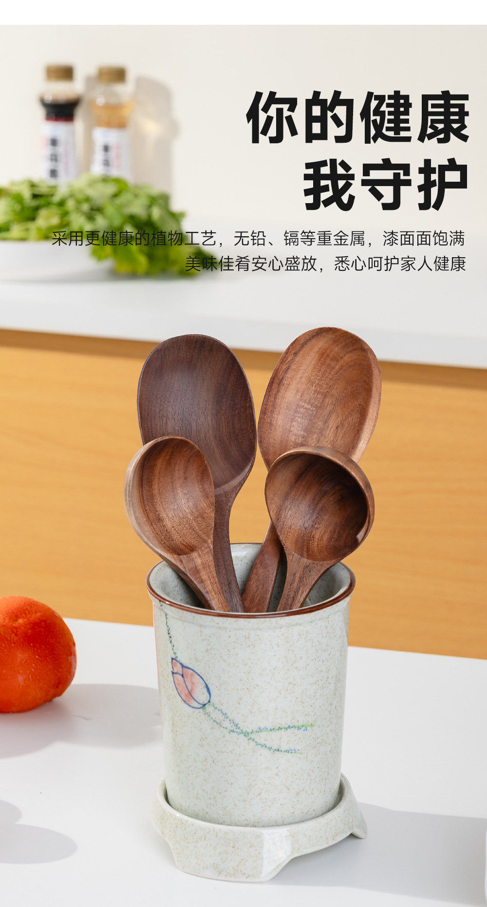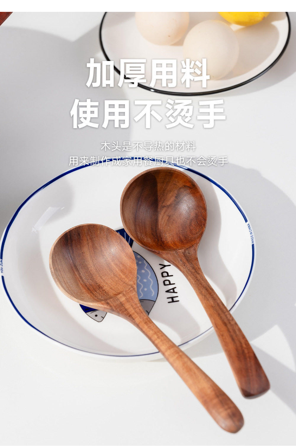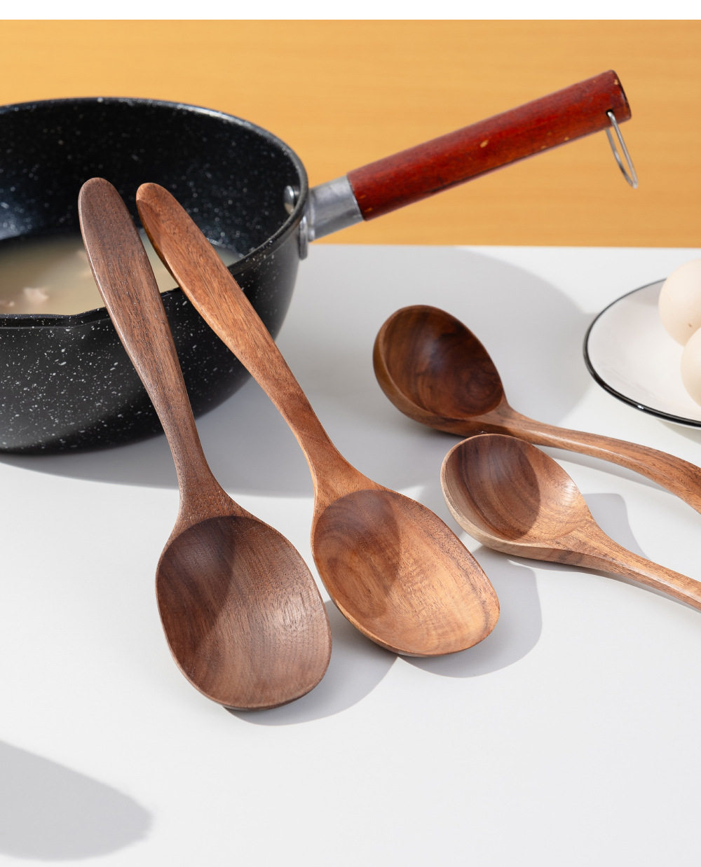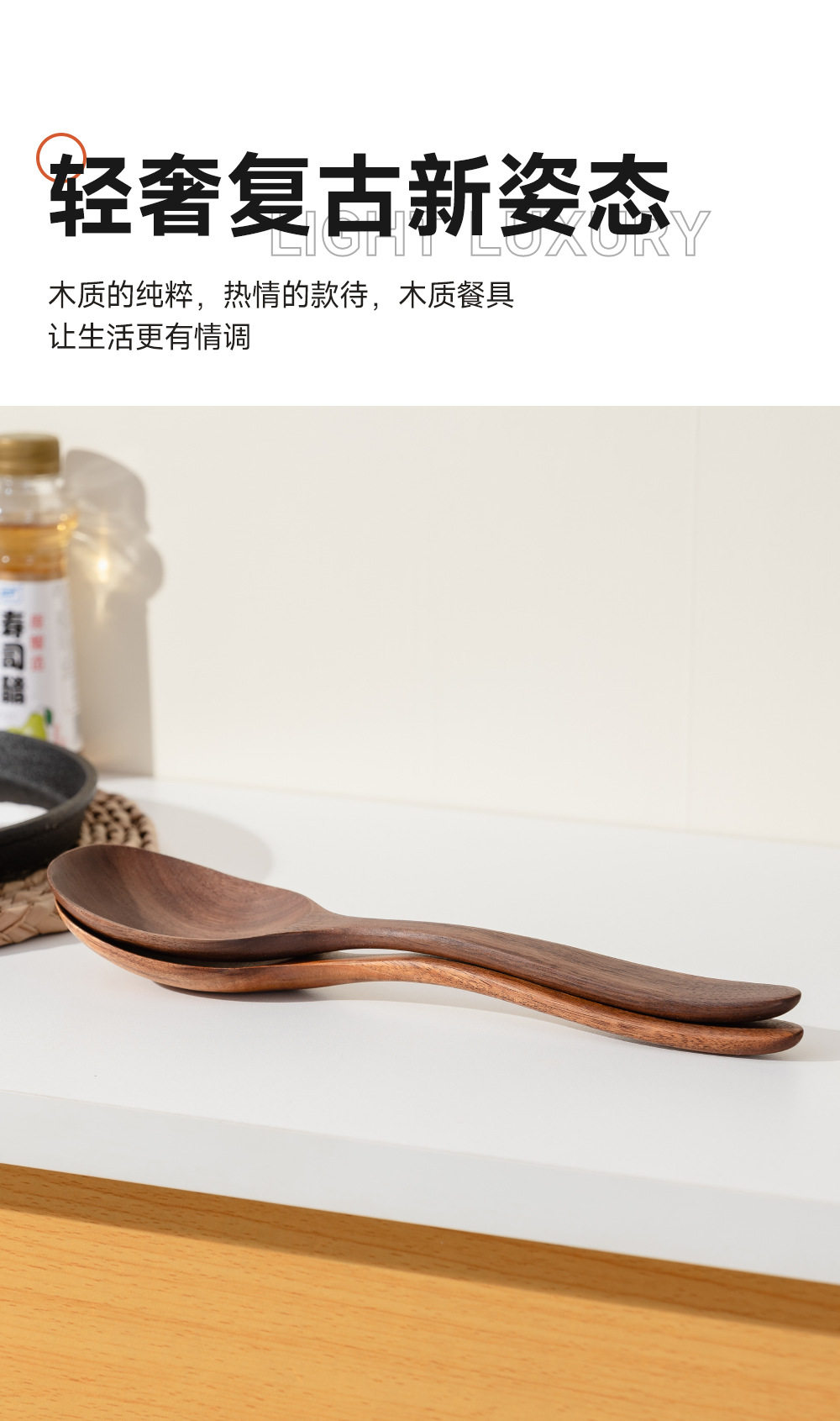 Large Household Wooden Long-Handled Soup Spoon, Acacia Wood Walnut Spoon, Noodle Spoon, Vintage Trendy Salad Spoon