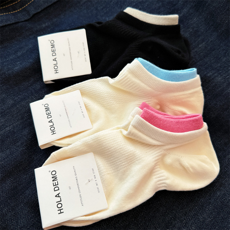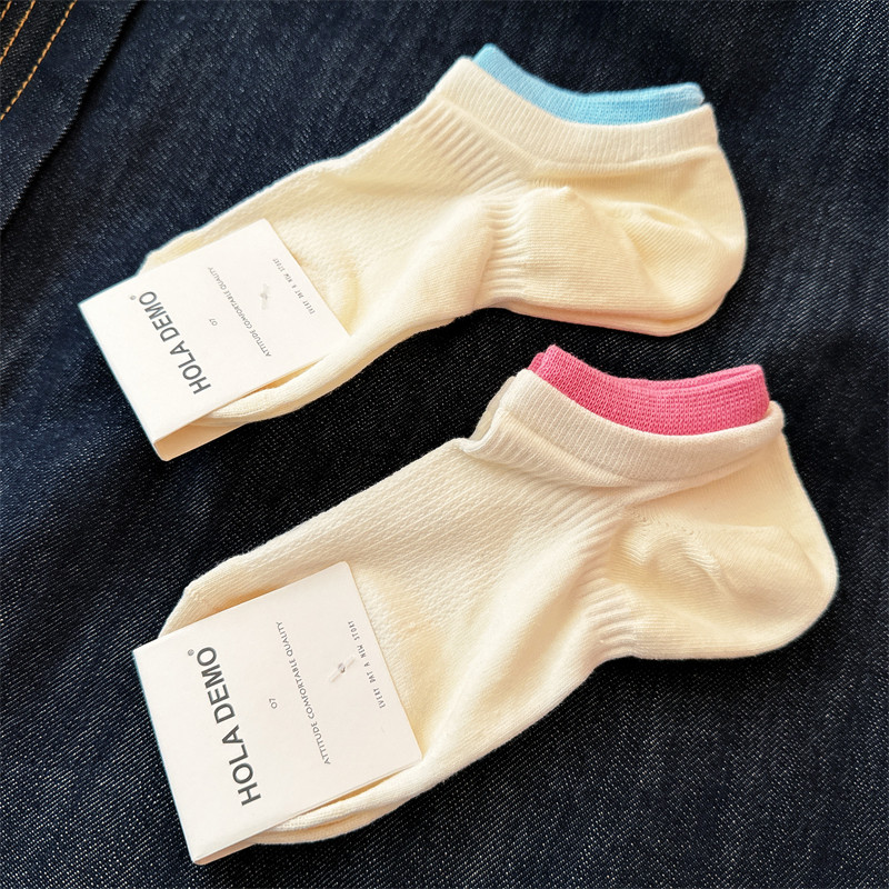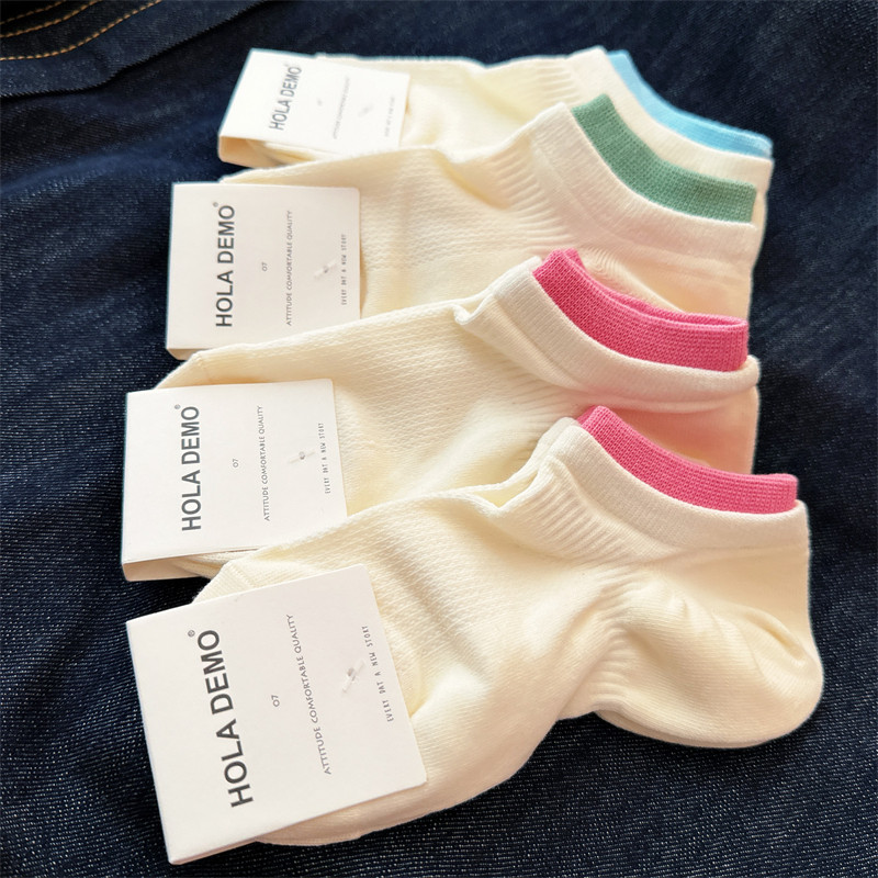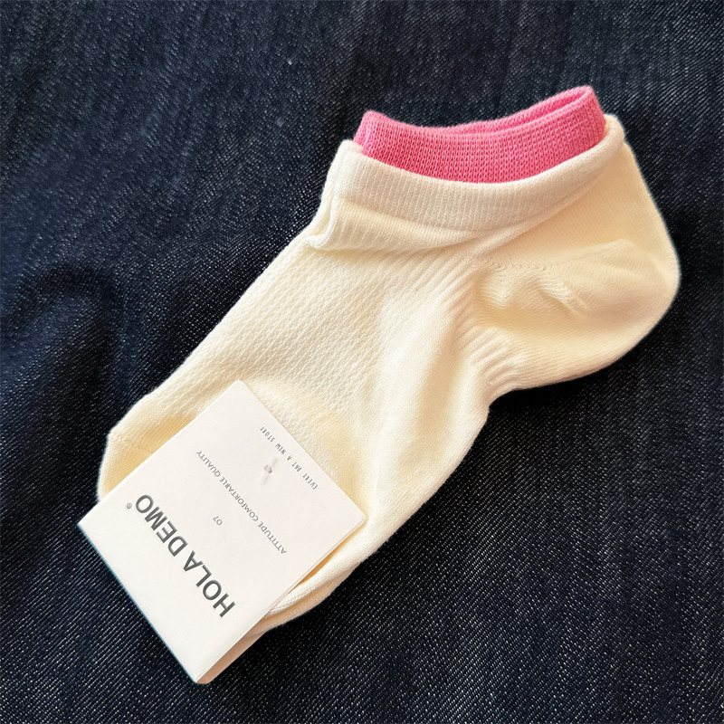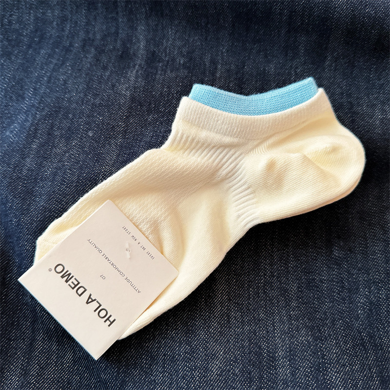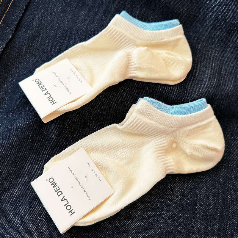 法式专柜袜子男生短袜夏天薄款网眼透气女袜精梳棉白色运动男袜子