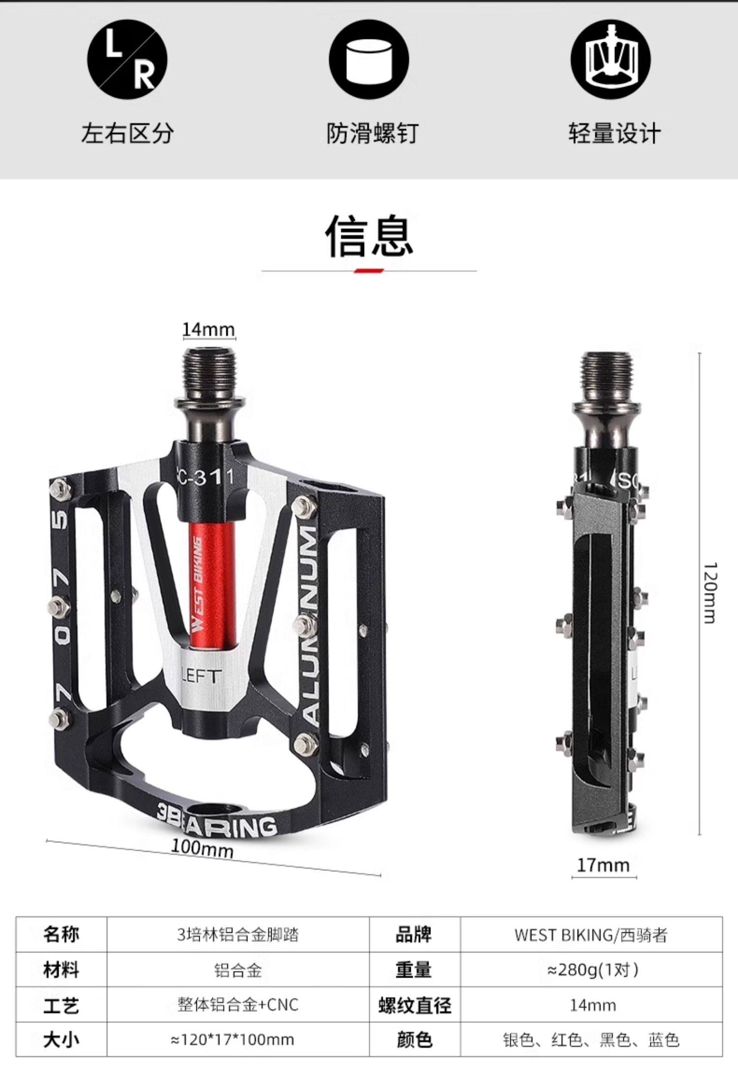 美利达通用自行车脚踏三培林铝合金踏板山地车脚蹬子公路单车配件