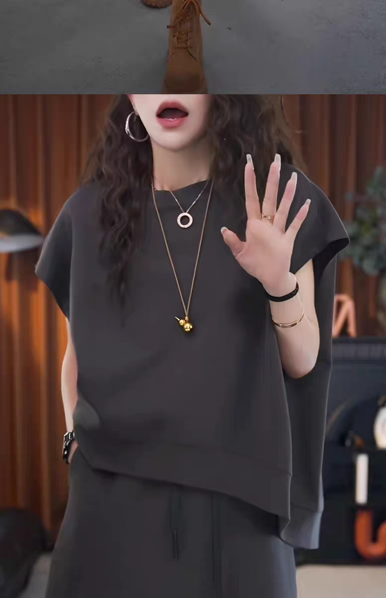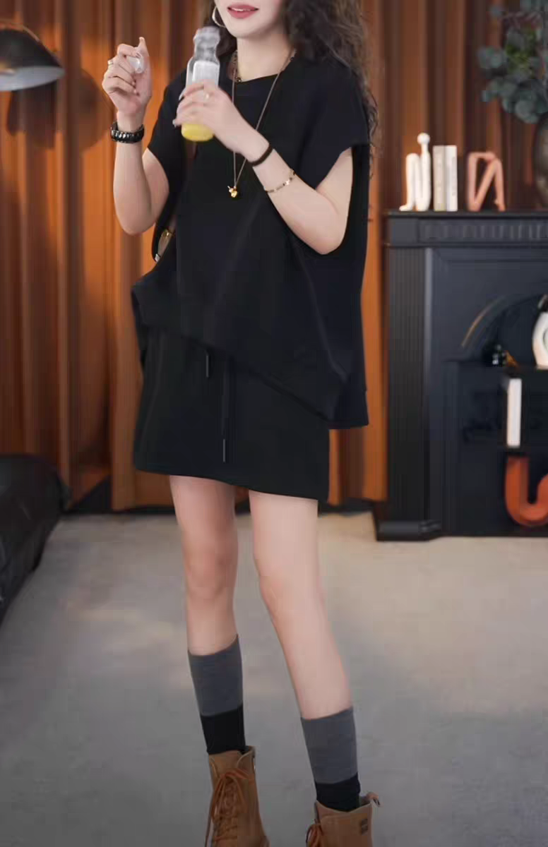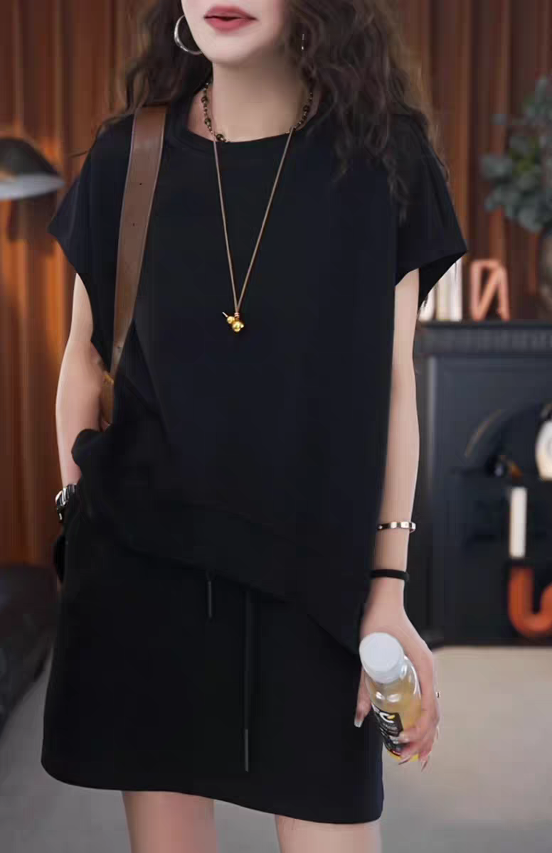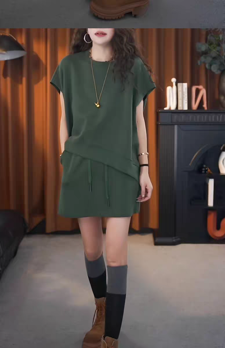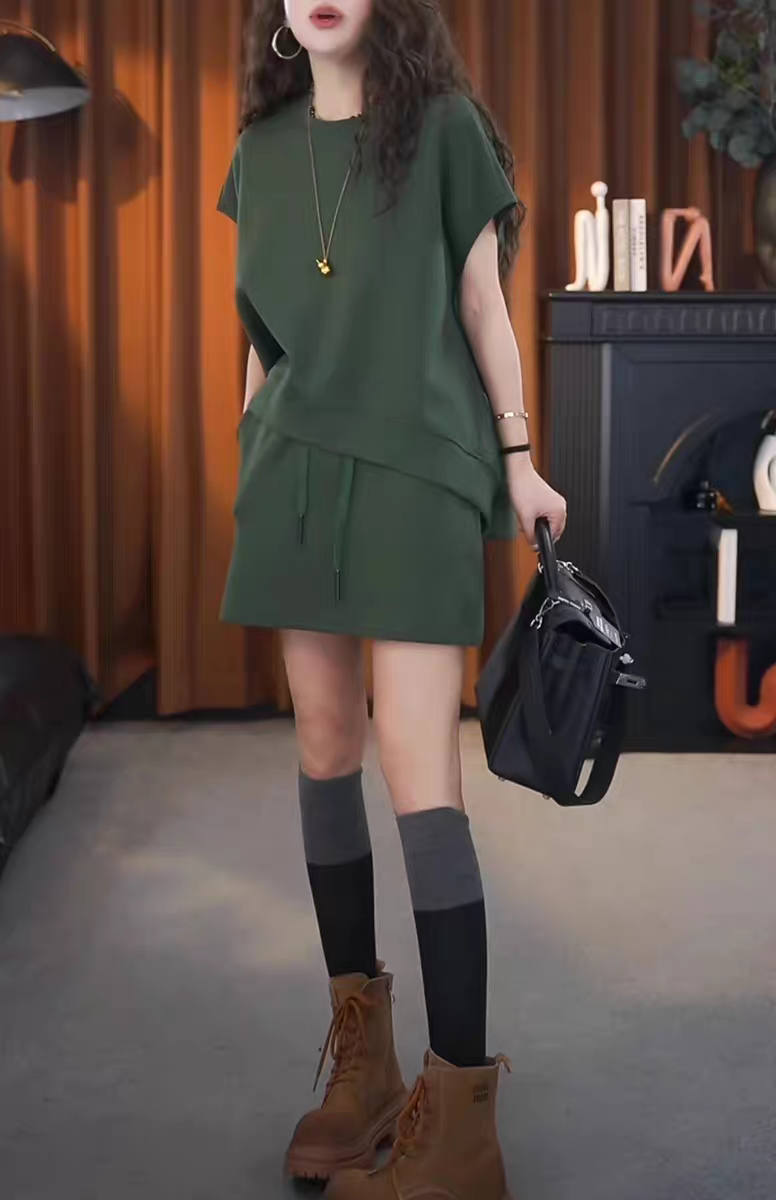 Short Skirt, Solid Color, Minimalist Style, Short-Sleeved Top, Two-Piece Set, Loose, Plus Size, Stylish, 2025 Summer New Style, Simple Women's Wear