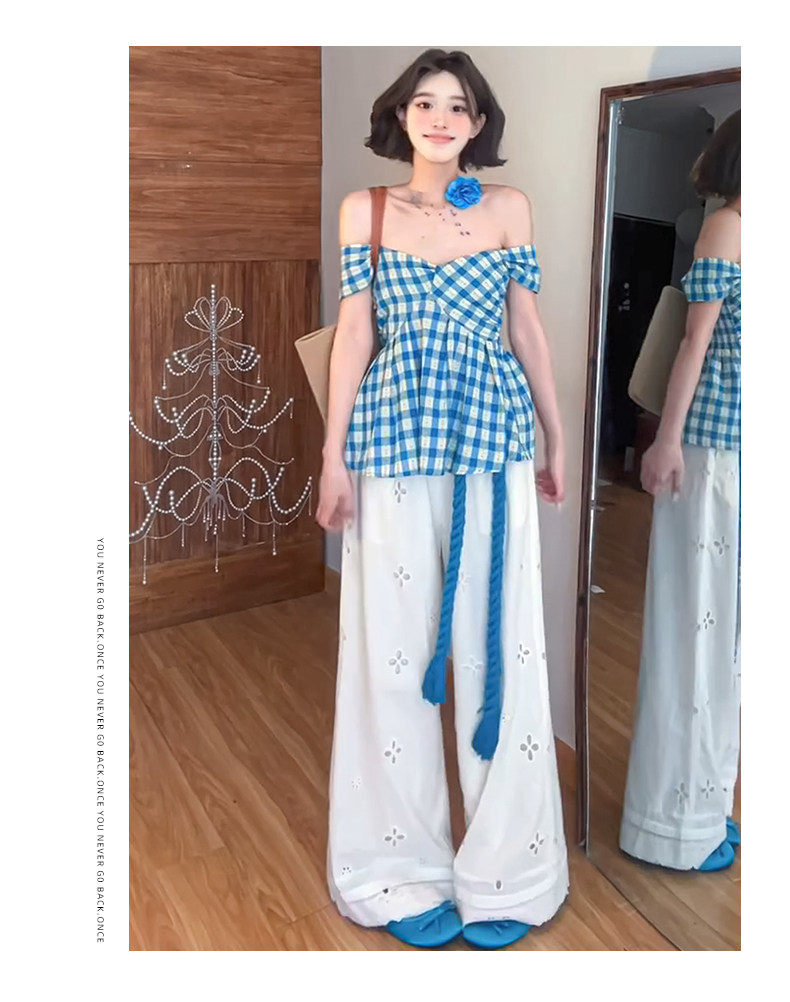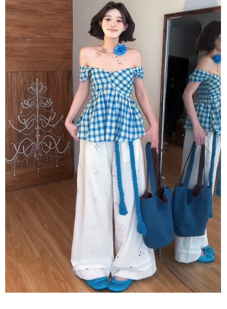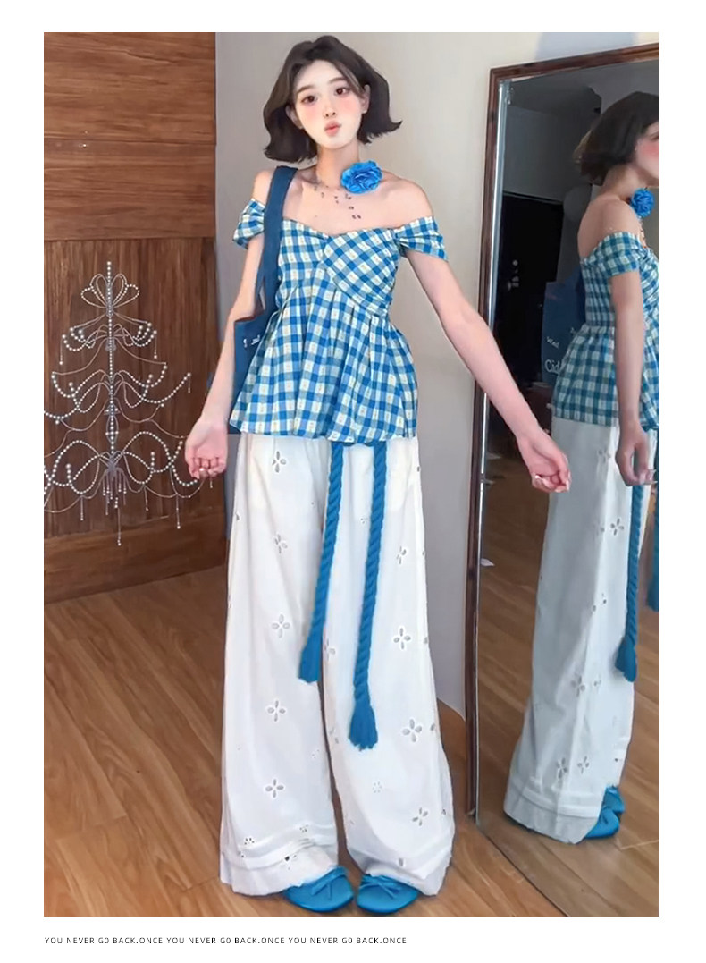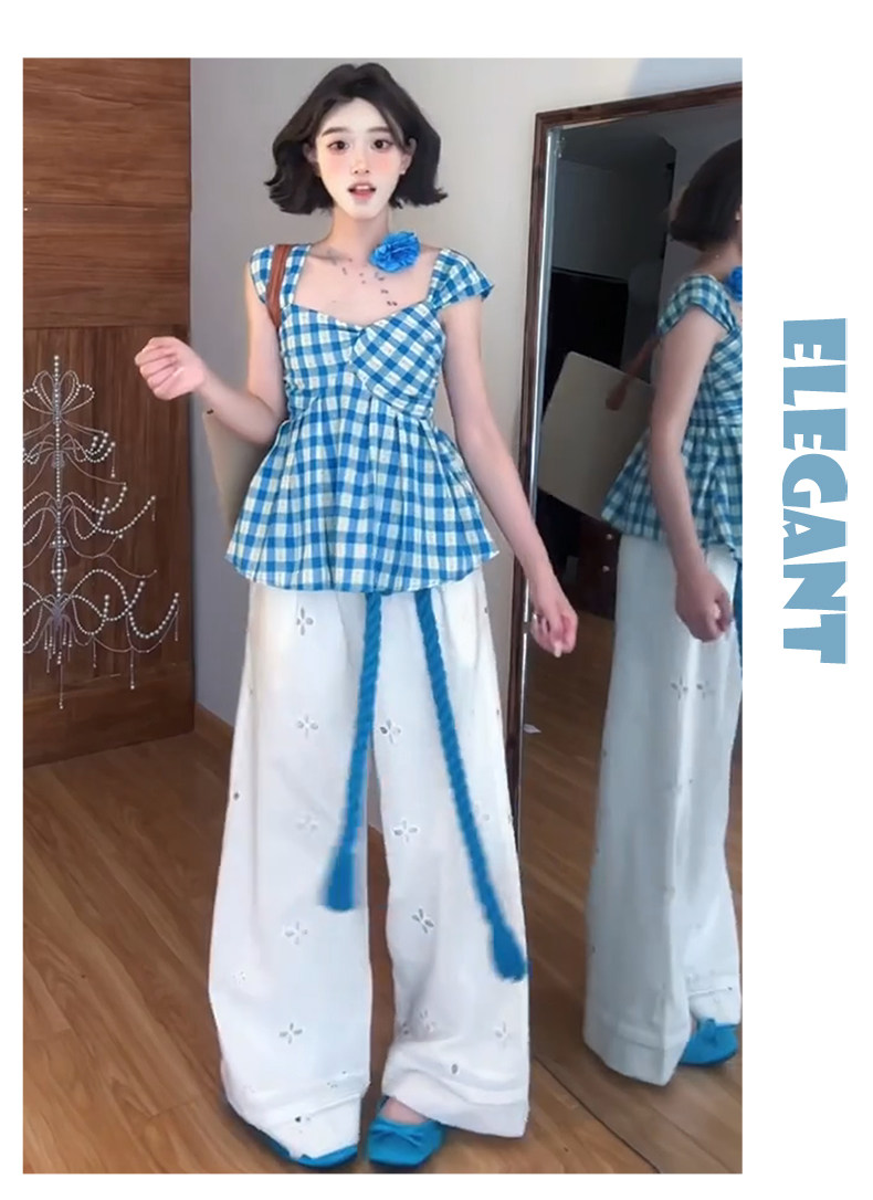 White Lace Patchwork Hollow-Out Wide-Leg Pants for Women, Summer Thin High-Waisted Slimming Ice Silk Pants, Loose Casual Straight-Leg Pants