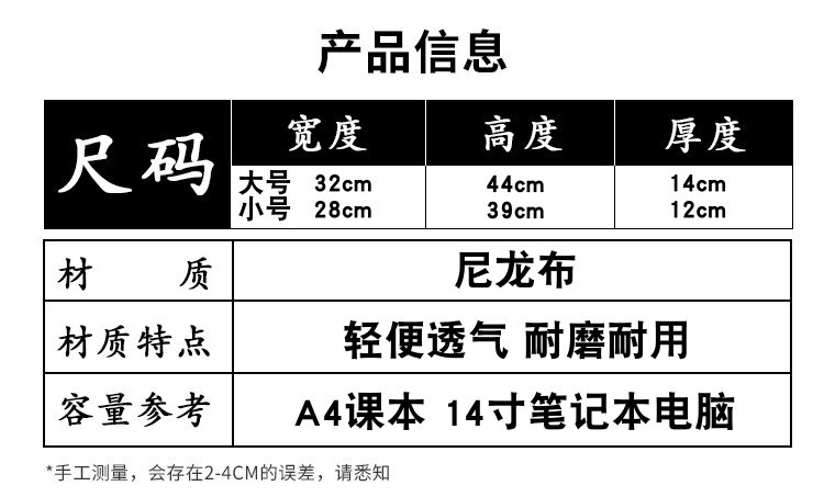 箱包尺寸 32x14x44cm