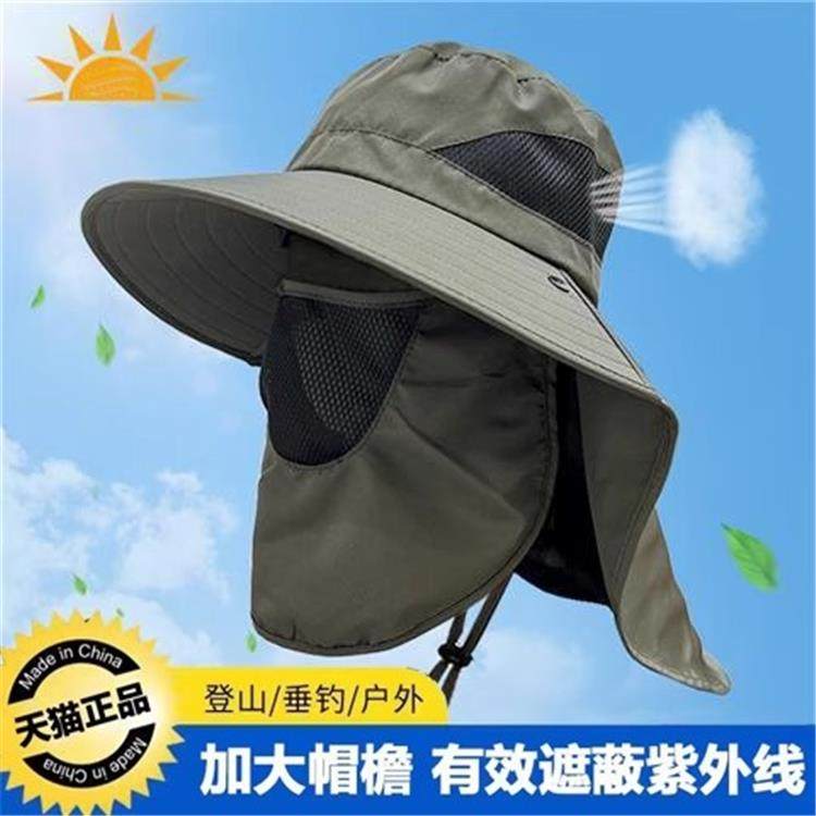 大头围户外遮阳帽男士夏全脸防晒面罩钓鱼太阳帽大檐登山渔夫帽子