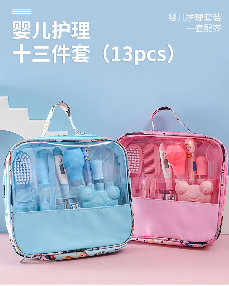 Juego de bolsas de almacenamiento para el cuidado del bebé, aspirador nasal para bebé, cortauñas, limpieza diaria de 13 piezas, bolsa para el cuidado de la madre y el bebé