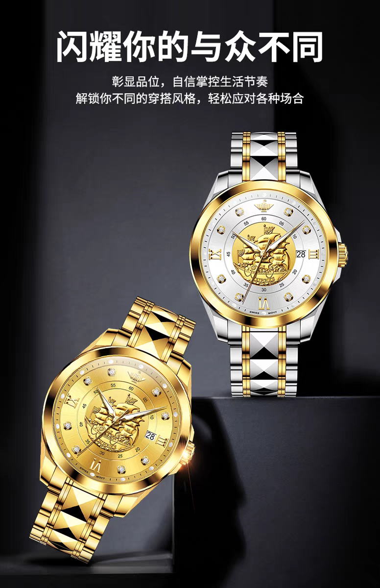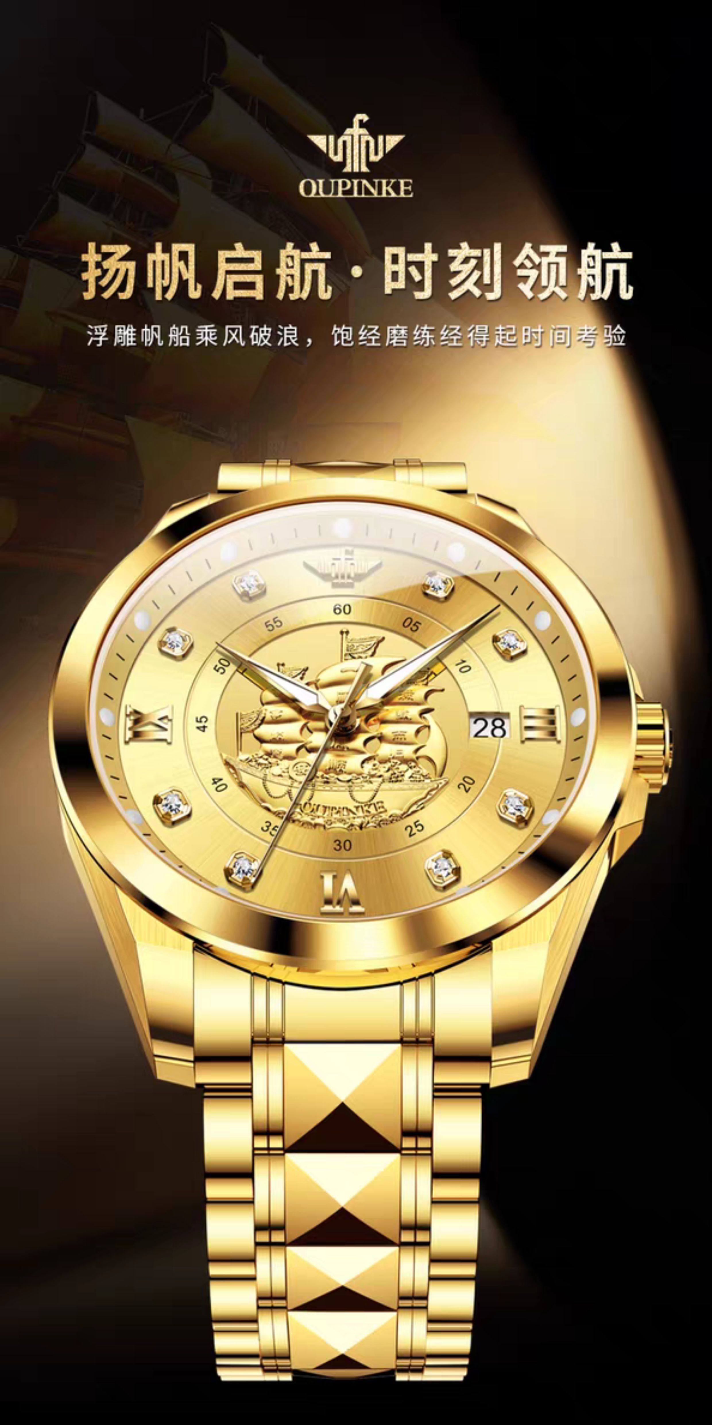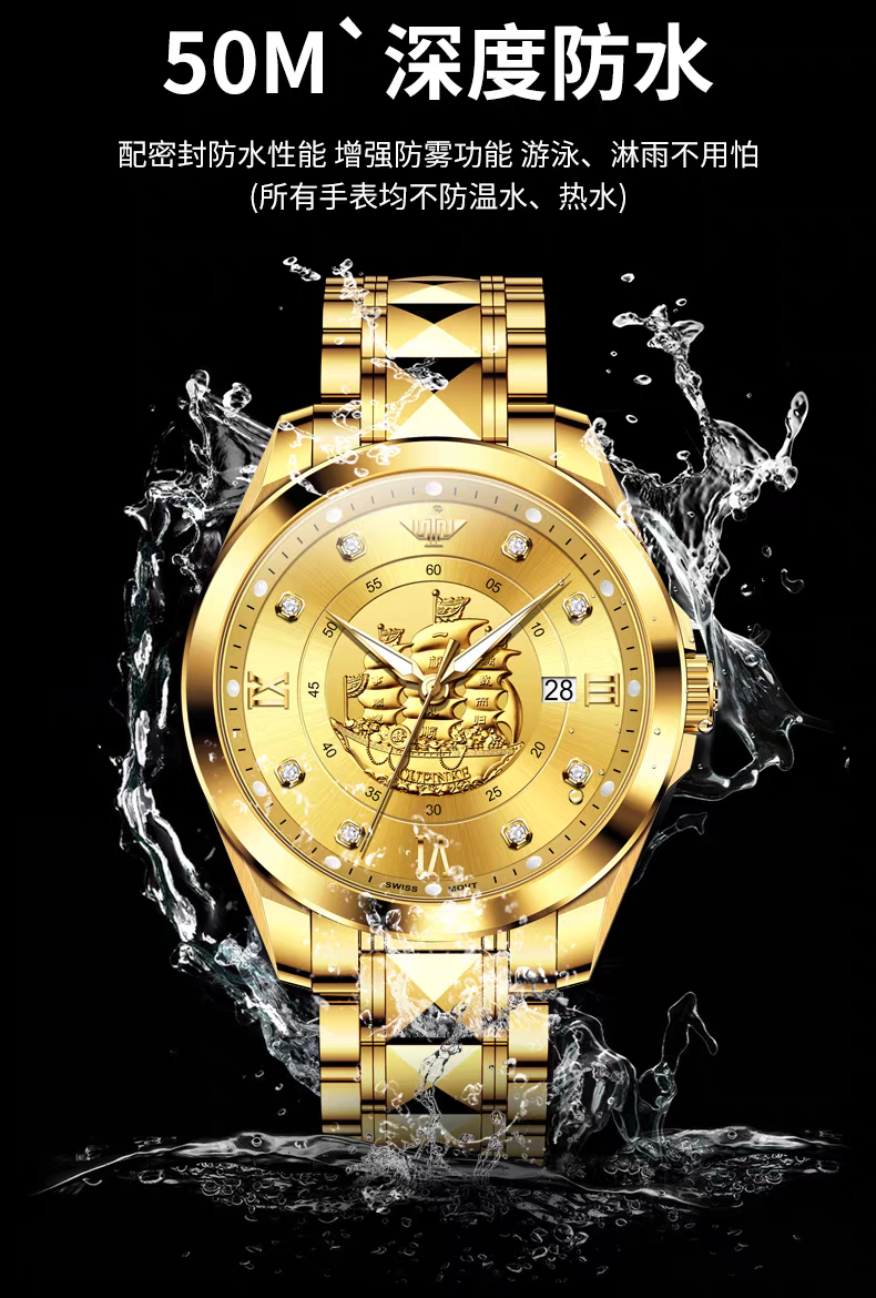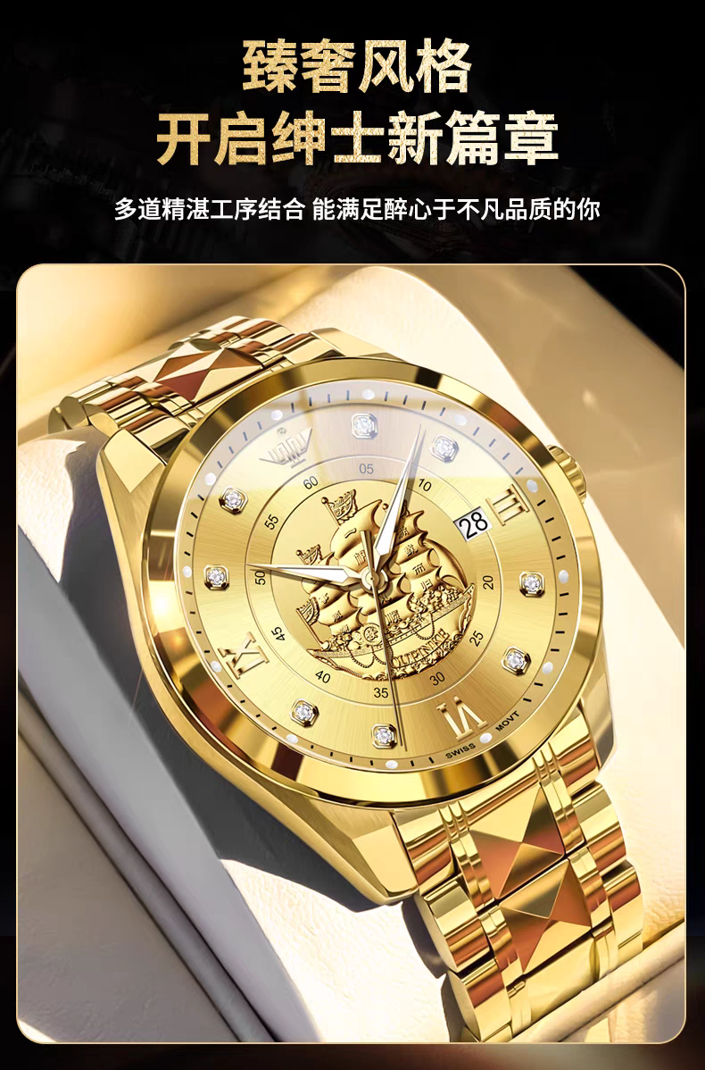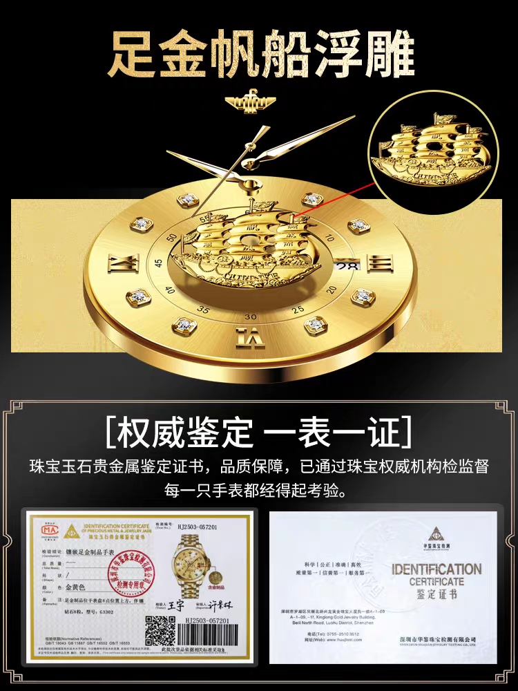 颜色分类 瑞士认证—间金白面【真金真钻】,瑞士认证—全金【真金真钻】,机芯升级版——间金白面【送豪礼】,机芯升级版——全金【送豪礼】,足金帆船浮雕