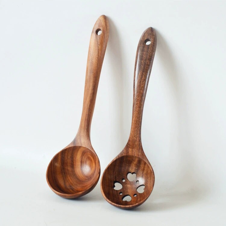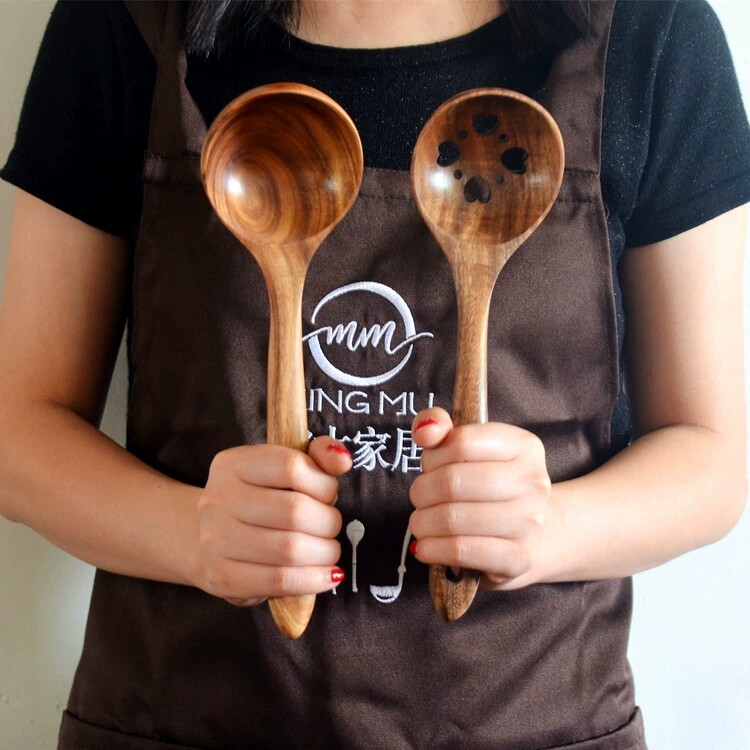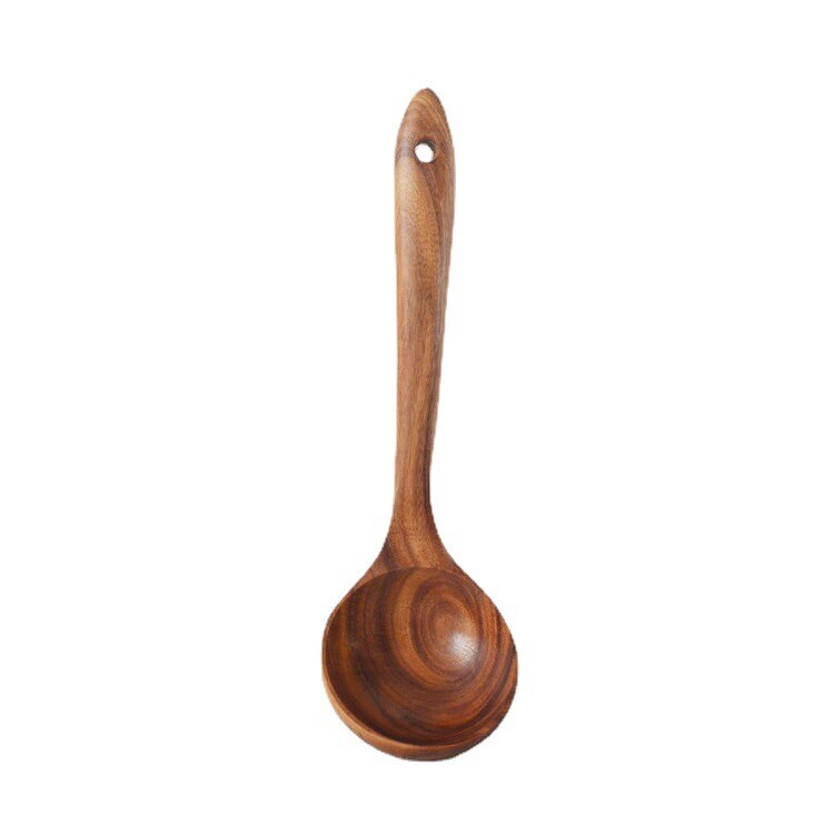 Acacia Wood Large Long-Handled Soup Spoon Household Soup and Porridge Spoon Does Not Damage the Pot Cooking Spoon Colander Wooden Tableware