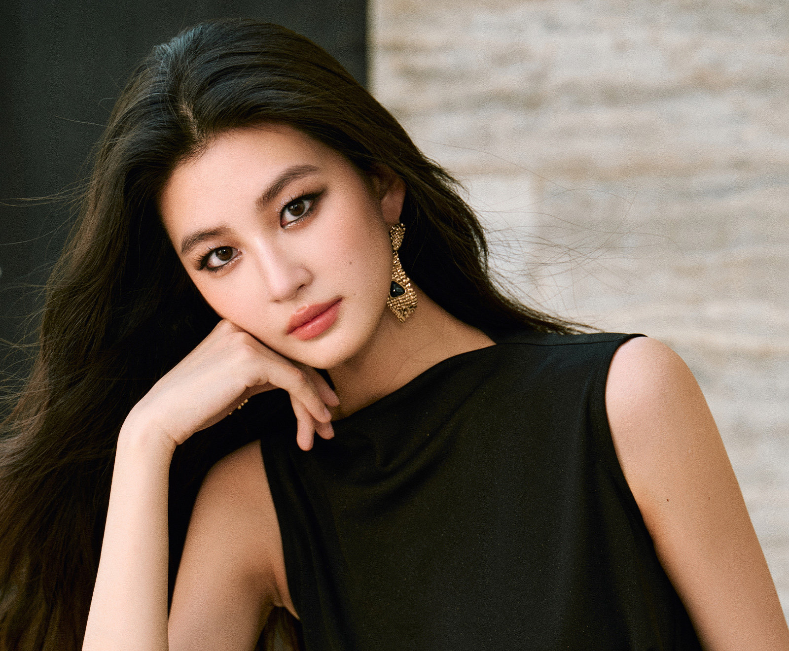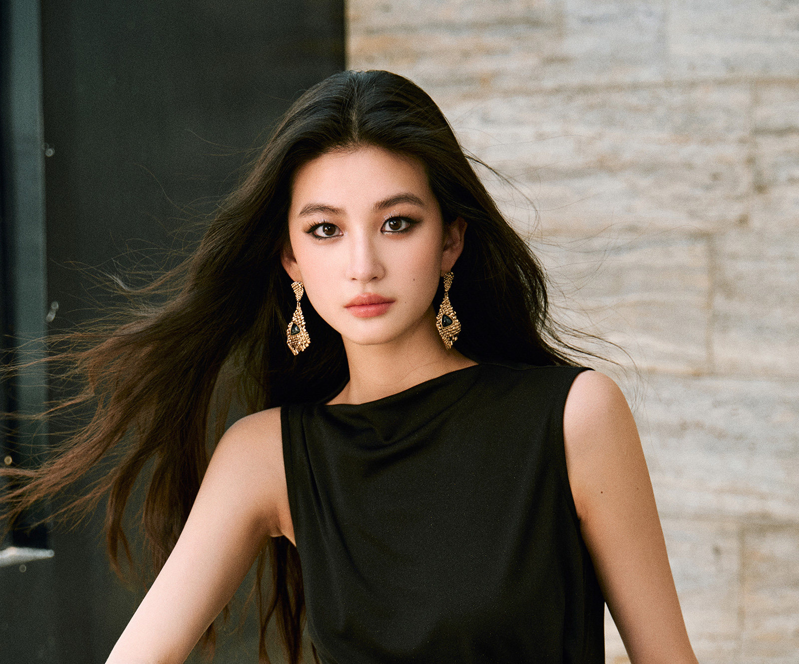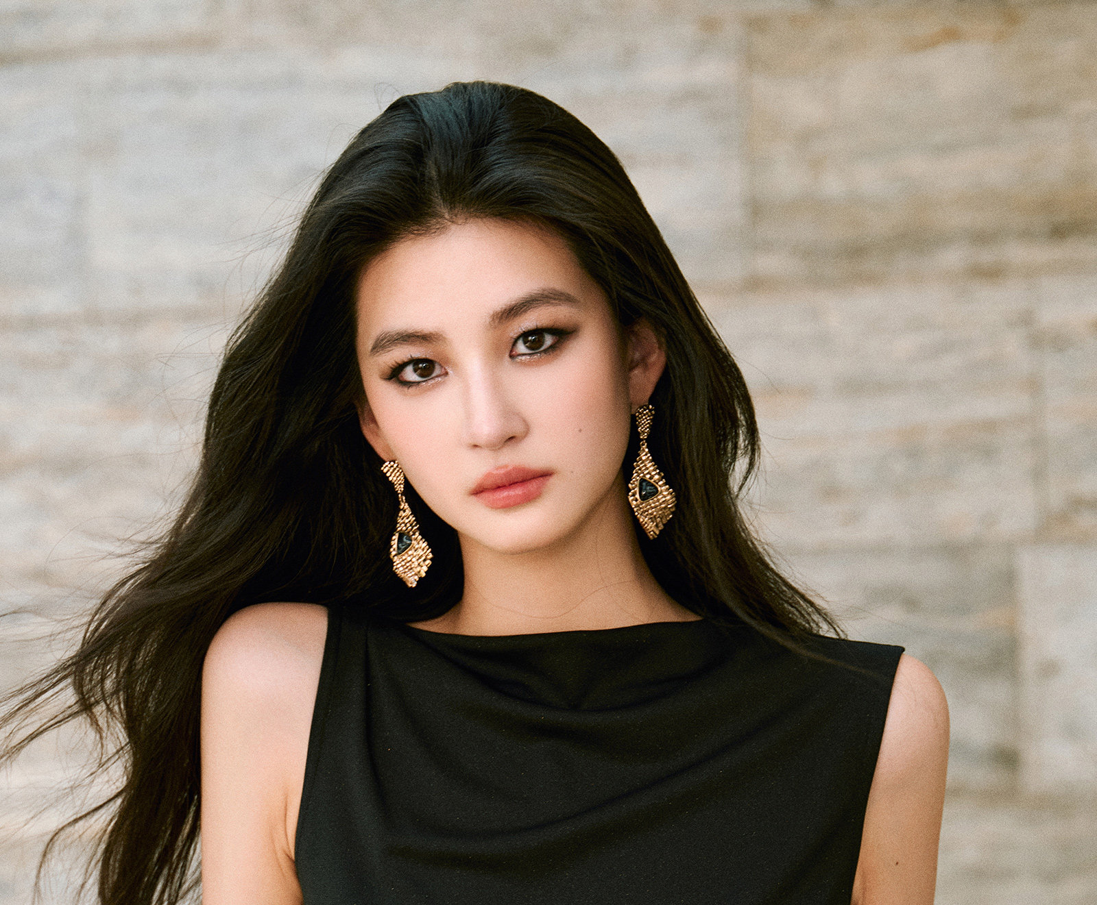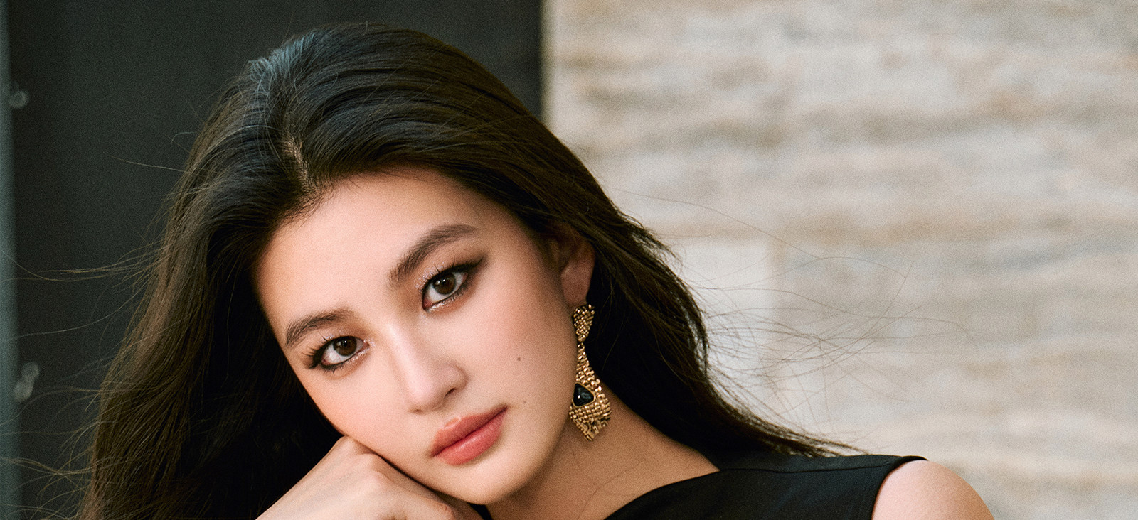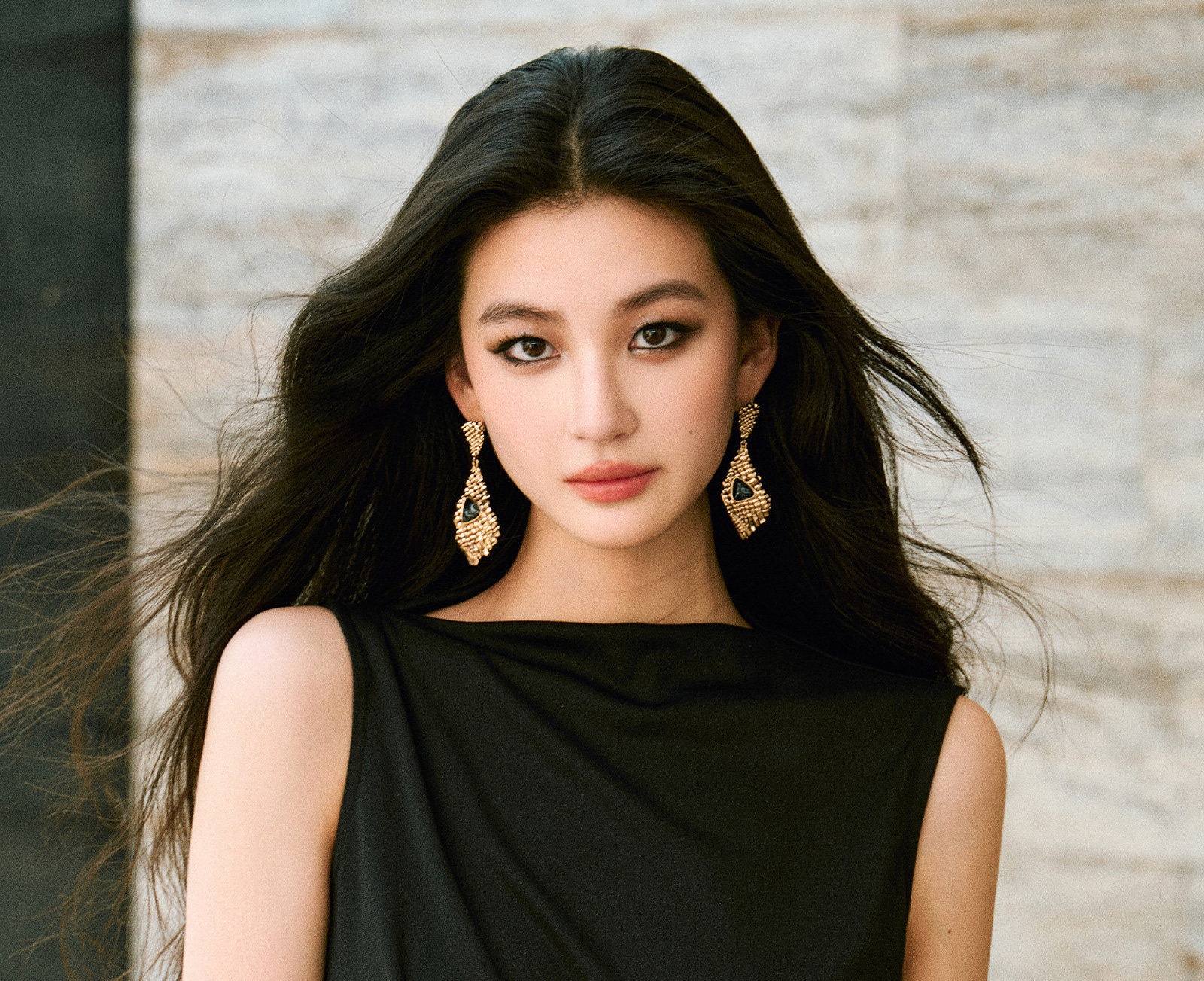 Wangxo|Gold Thread Roman Knit|Detachable Art Pin|Pleated Deconstructed Hem Dress