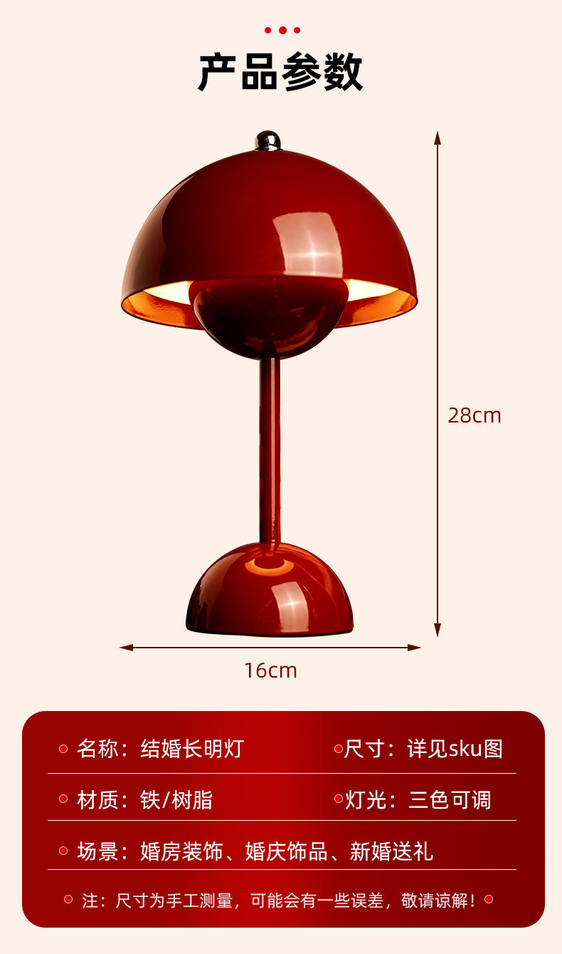 Practical Wedding Gifts for the Newlyweds, Red Bedside Table Lamps, a Pair of Wedding Arrangements, Everlasting Lamps, Wedding Room Decorations