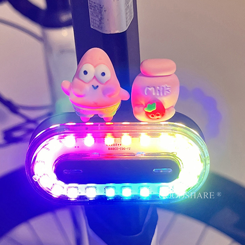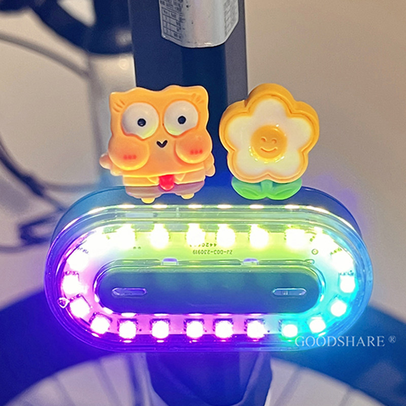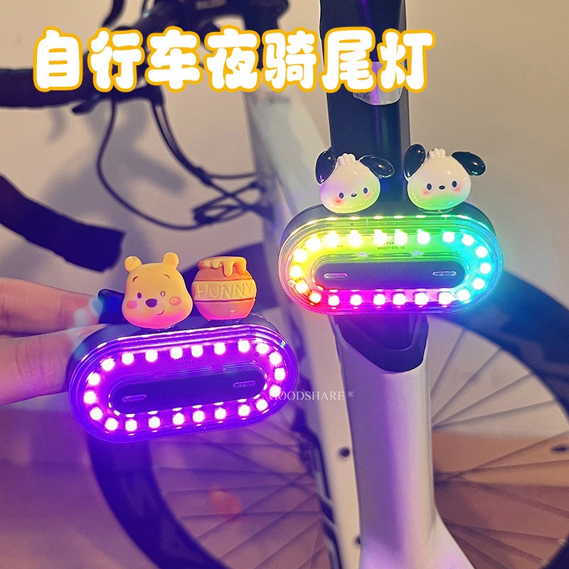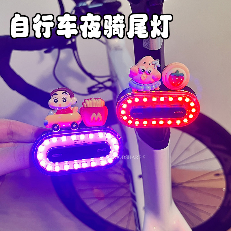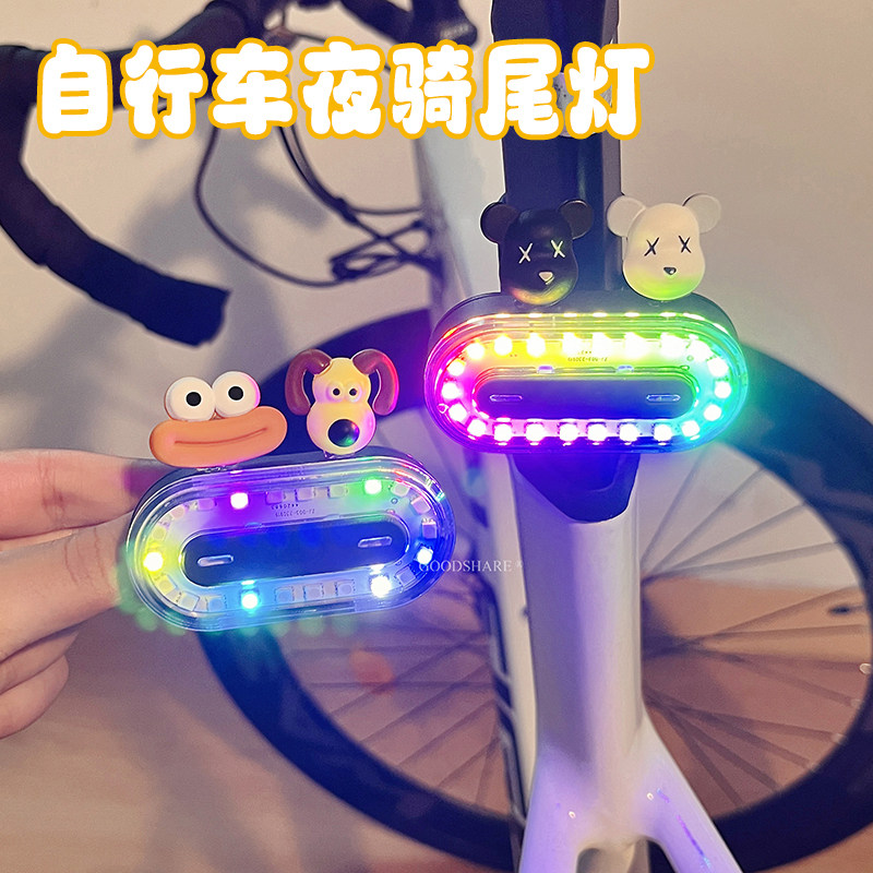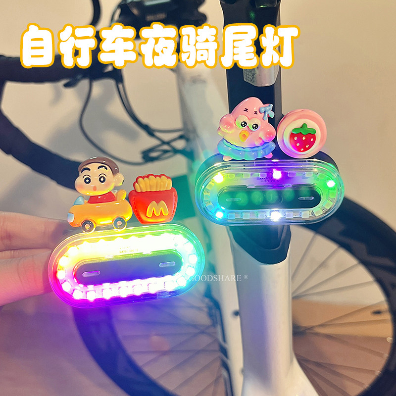 自行车夜骑灯尾灯可爱卡通派大星炫彩警示安全灯单车骑行装备配件