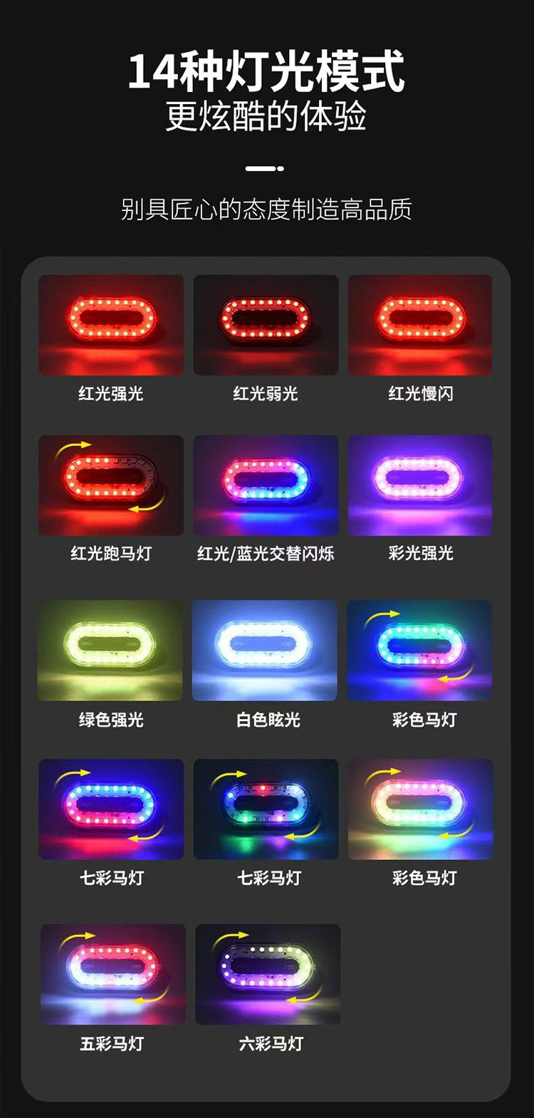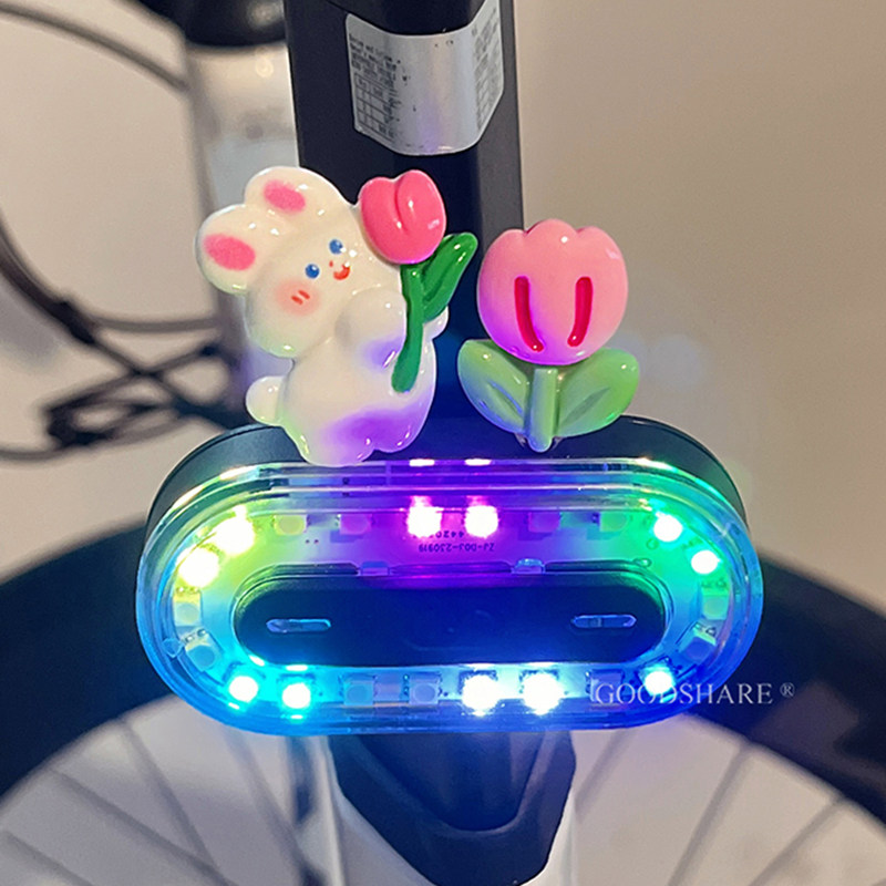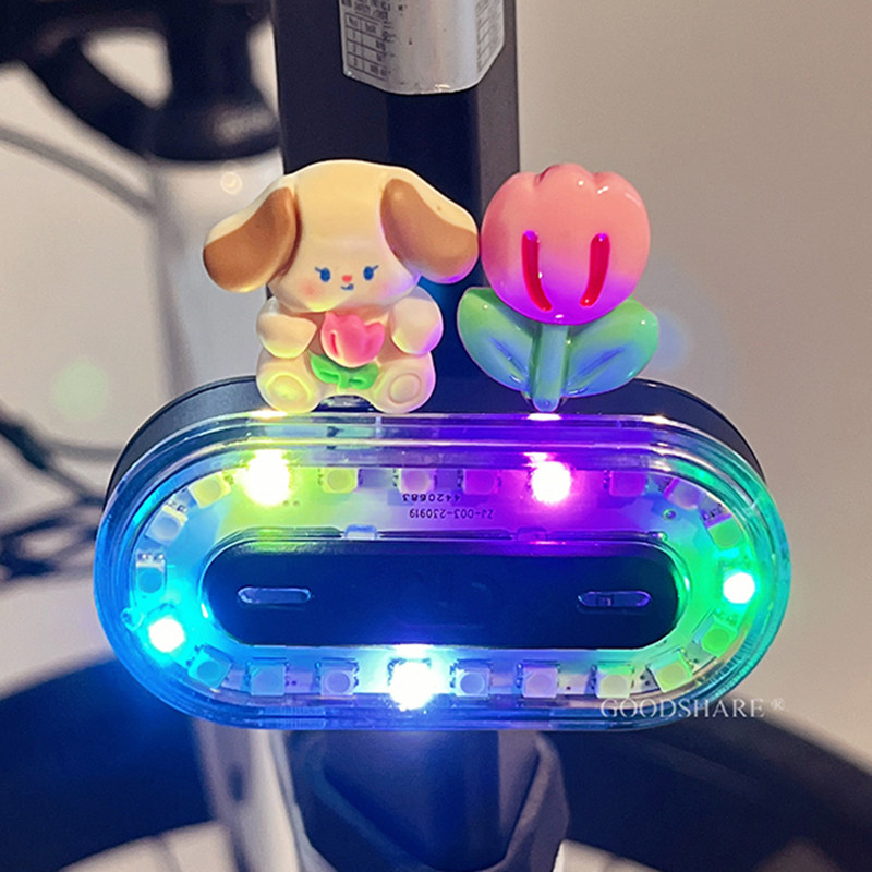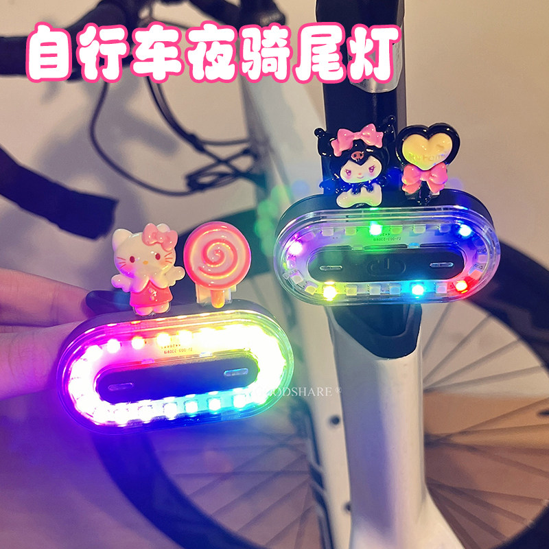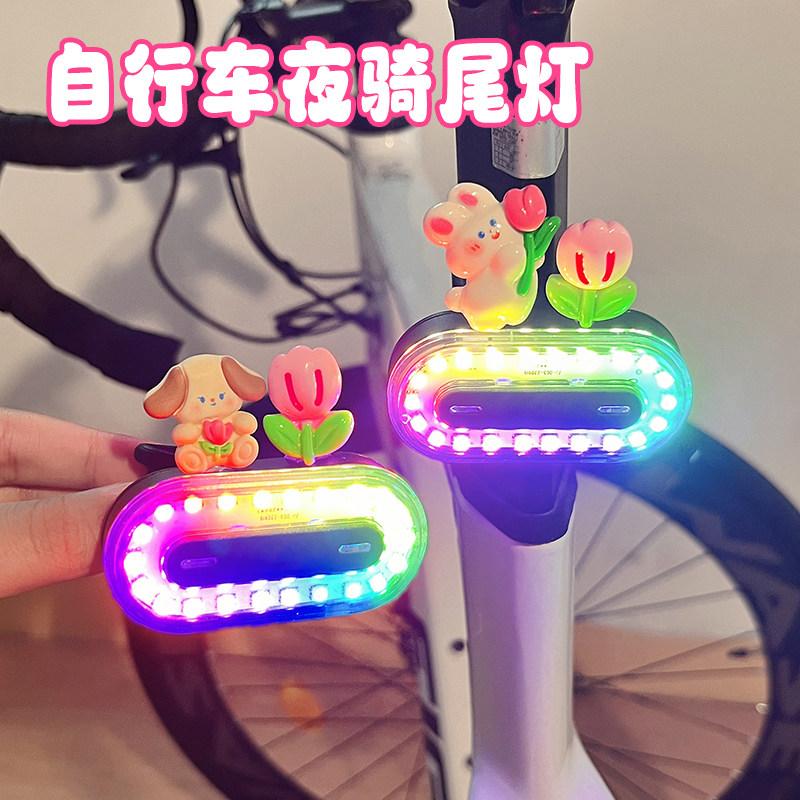 自行车夜骑灯尾灯可爱卡通派大星炫彩警示安全灯单车骑行装备配件