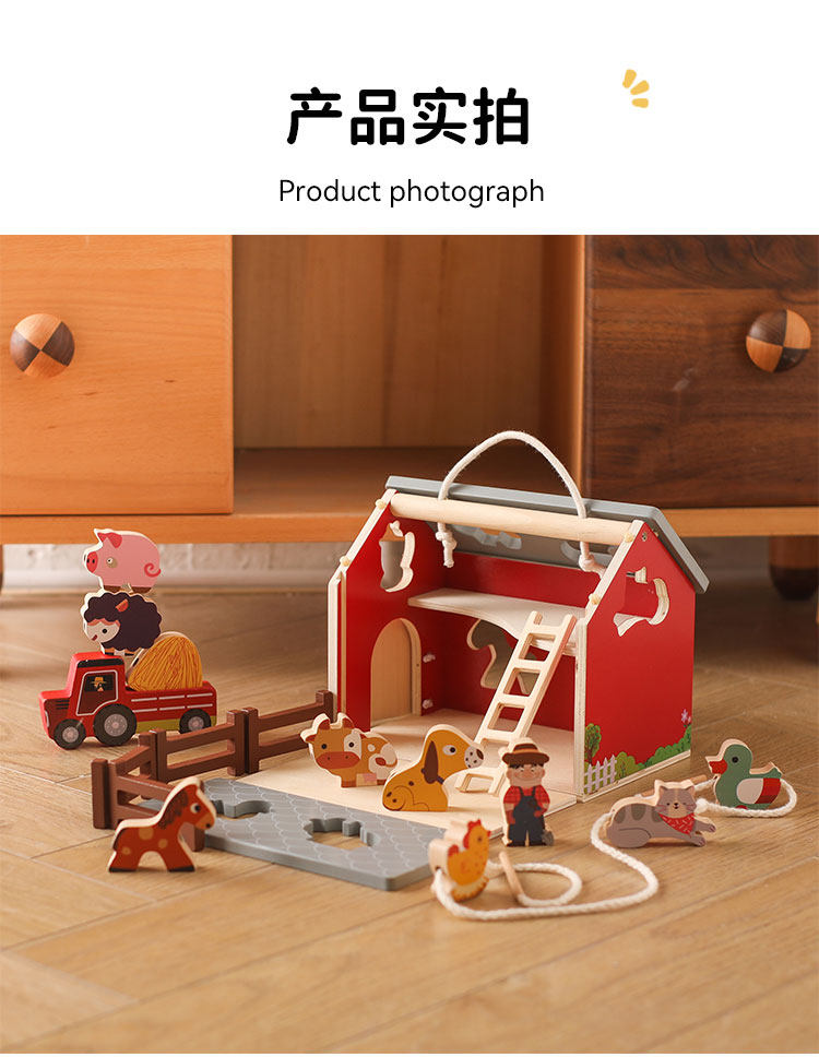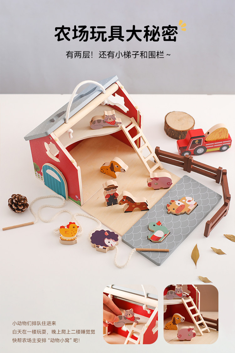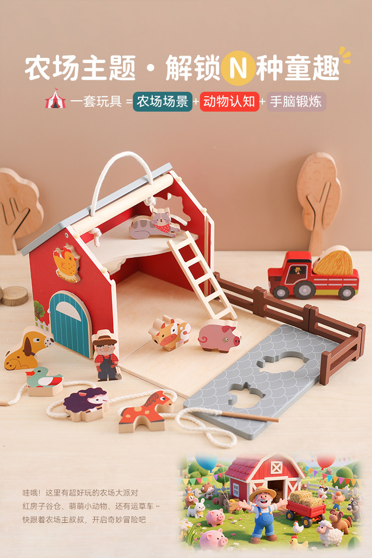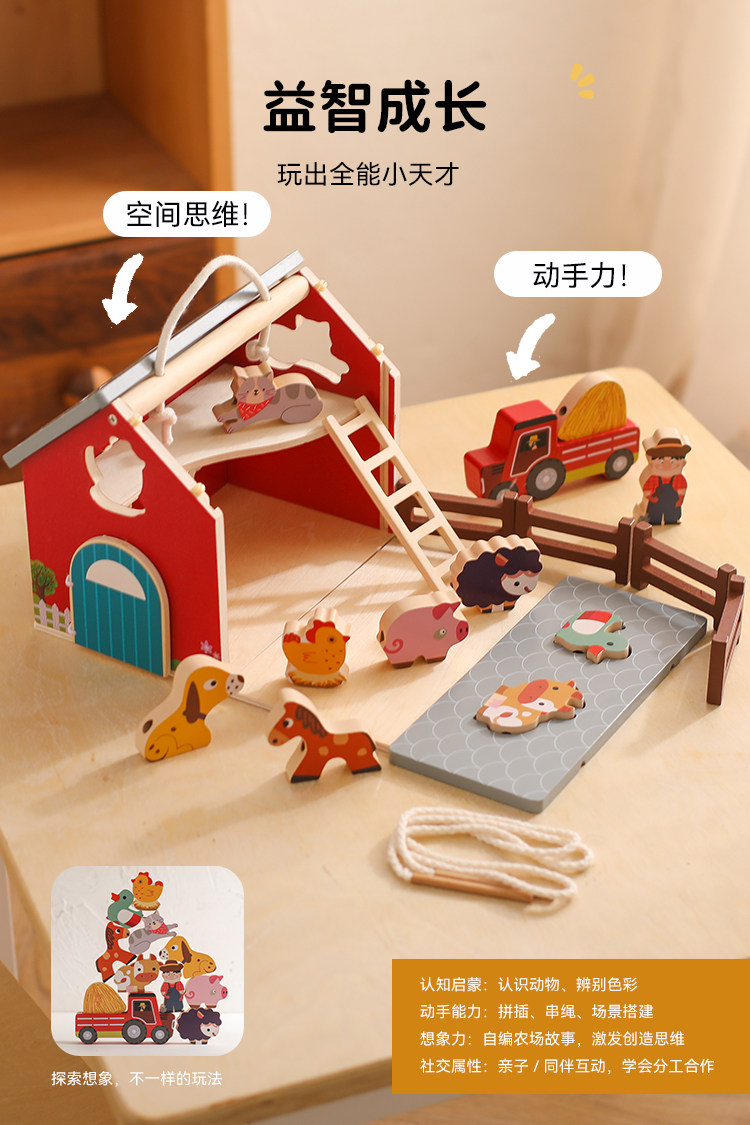 农场多功能玩具儿童益智多功能拆装桌面玩具形状配对穿线叠叠乐