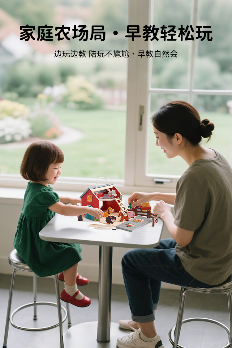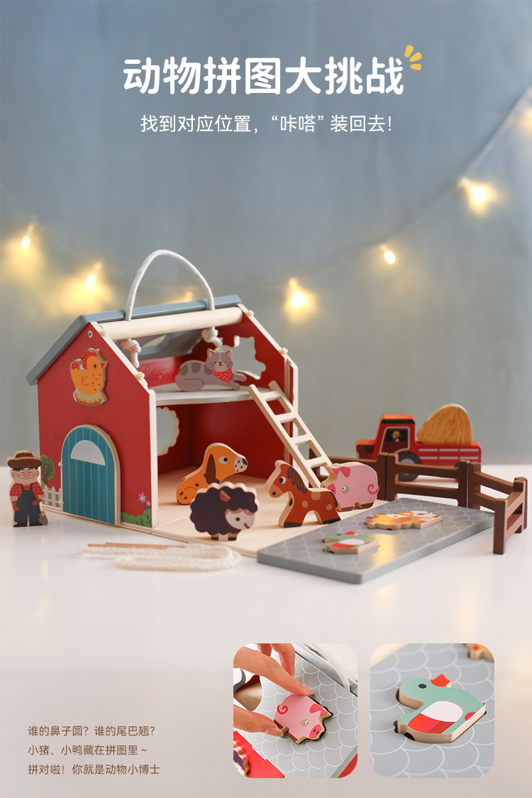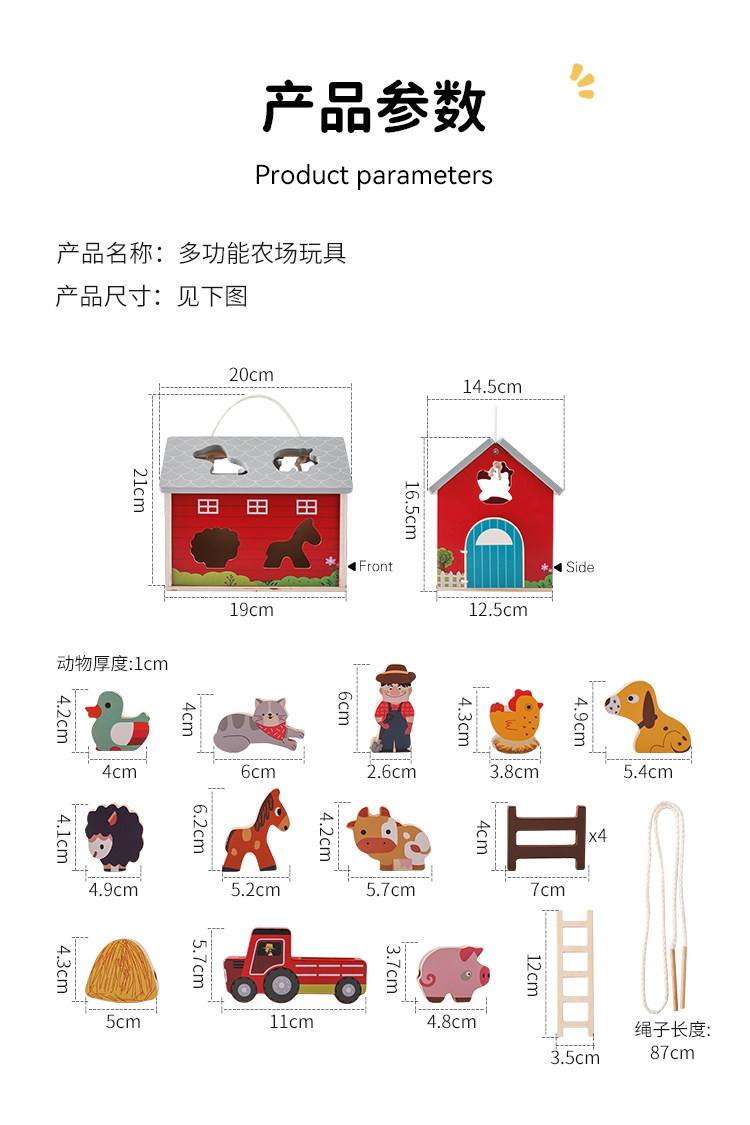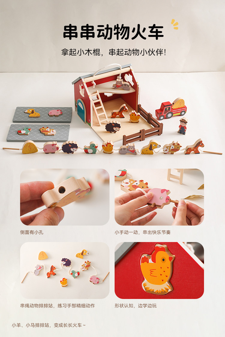 农场多功能玩具儿童益智多功能拆装桌面玩具形状配对穿线叠叠乐