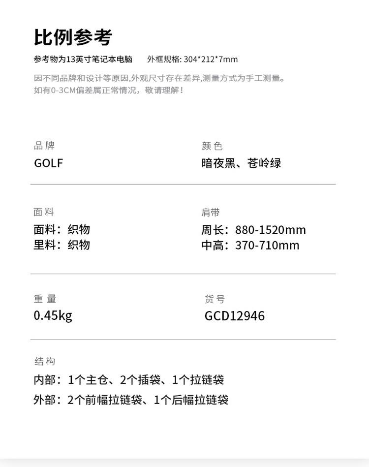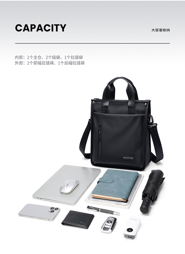 内部结构 主袋,贴袋,手机袋,拉链暗袋,夹层拉链袋
