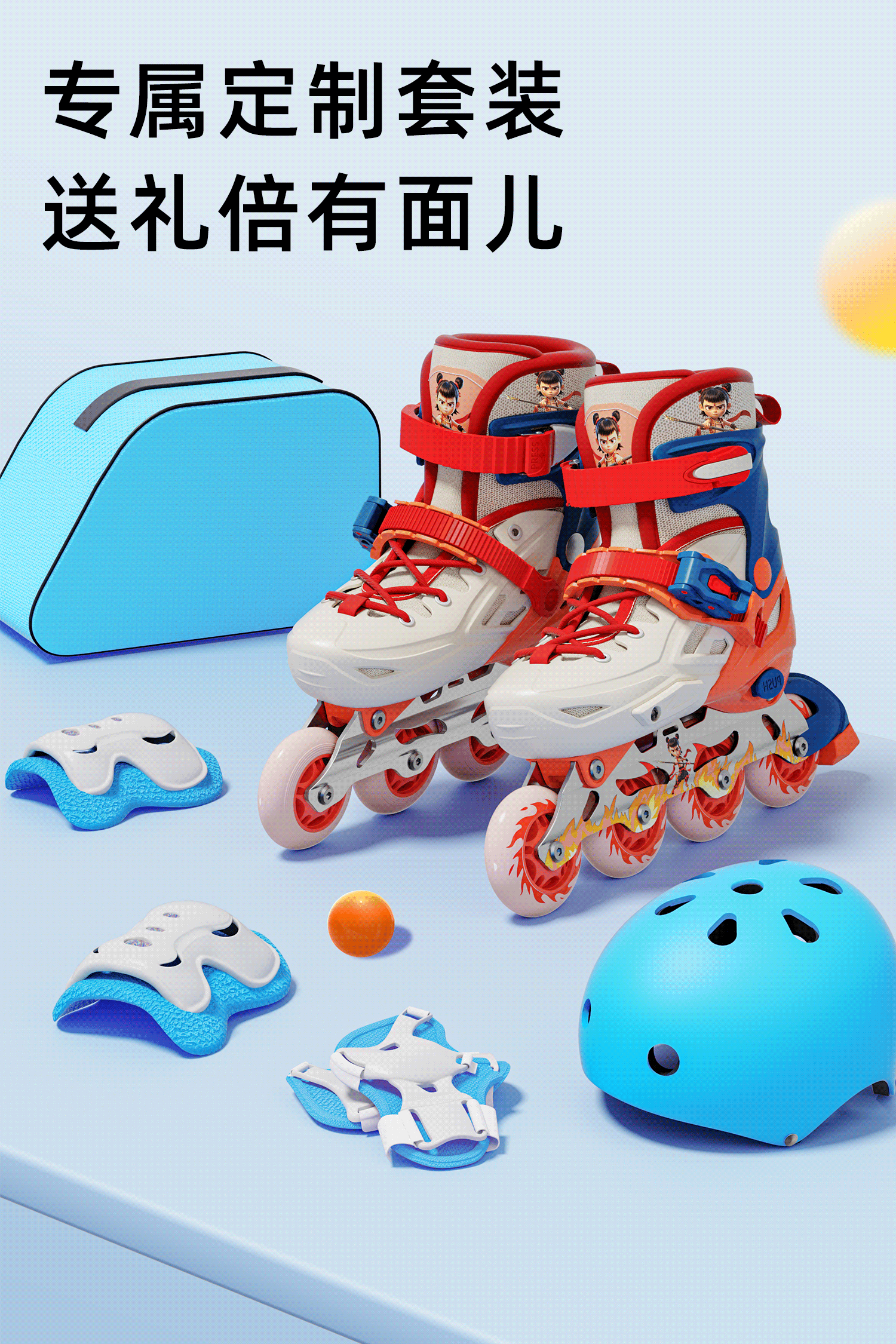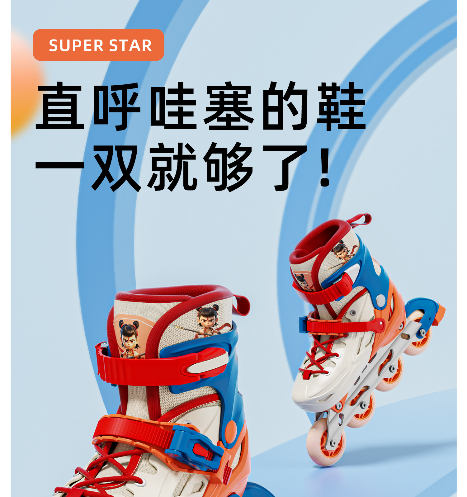 轮滑鞋儿童溜冰鞋男童女童滑轮滑冰旱冰3-6到12岁专业初学者哪咤