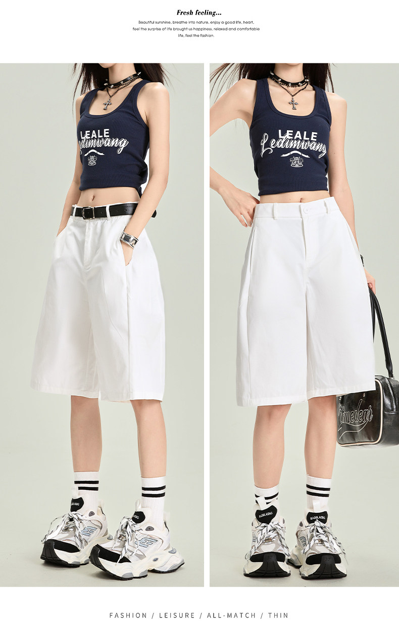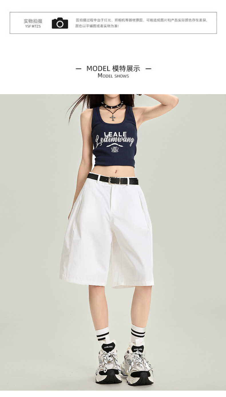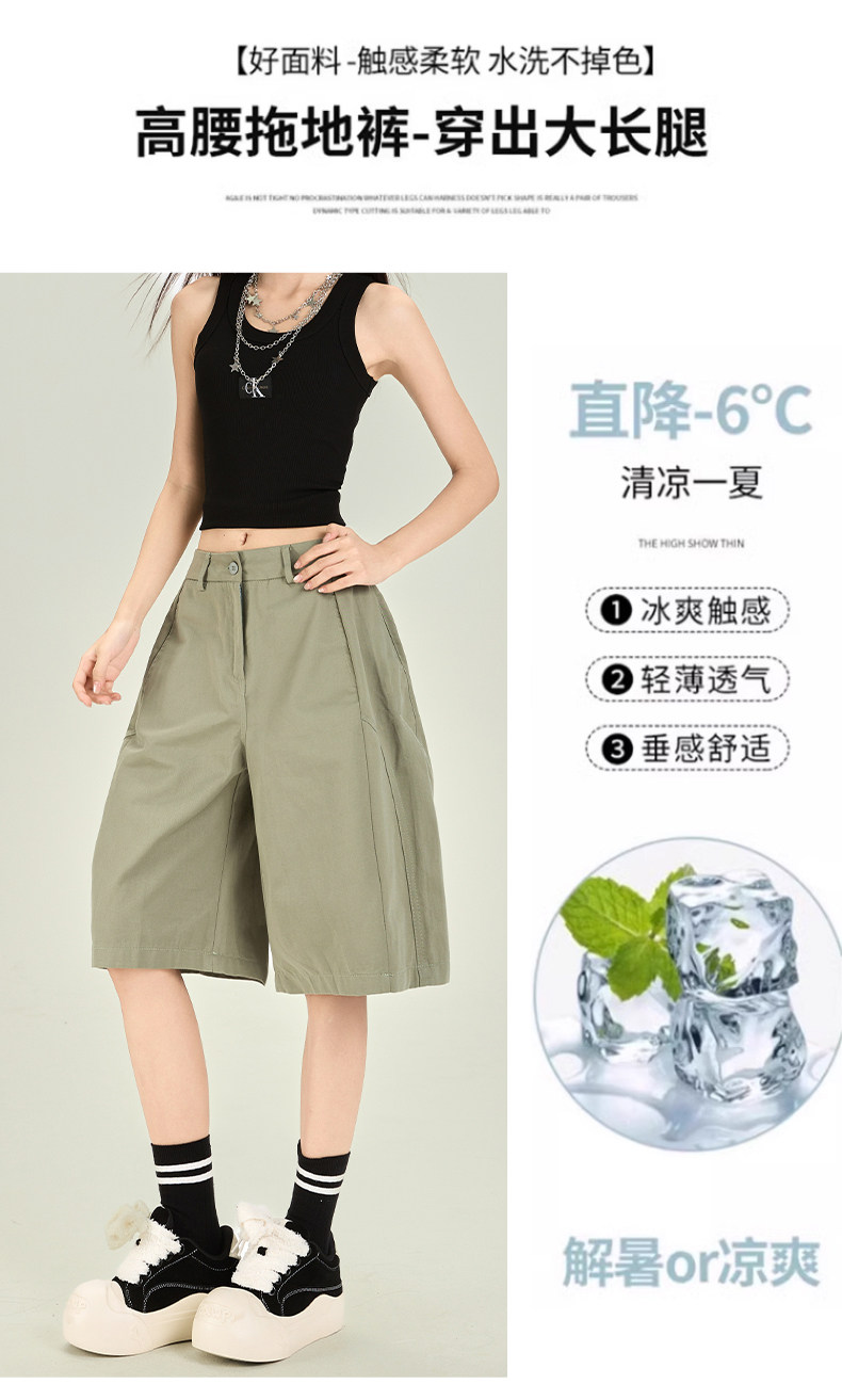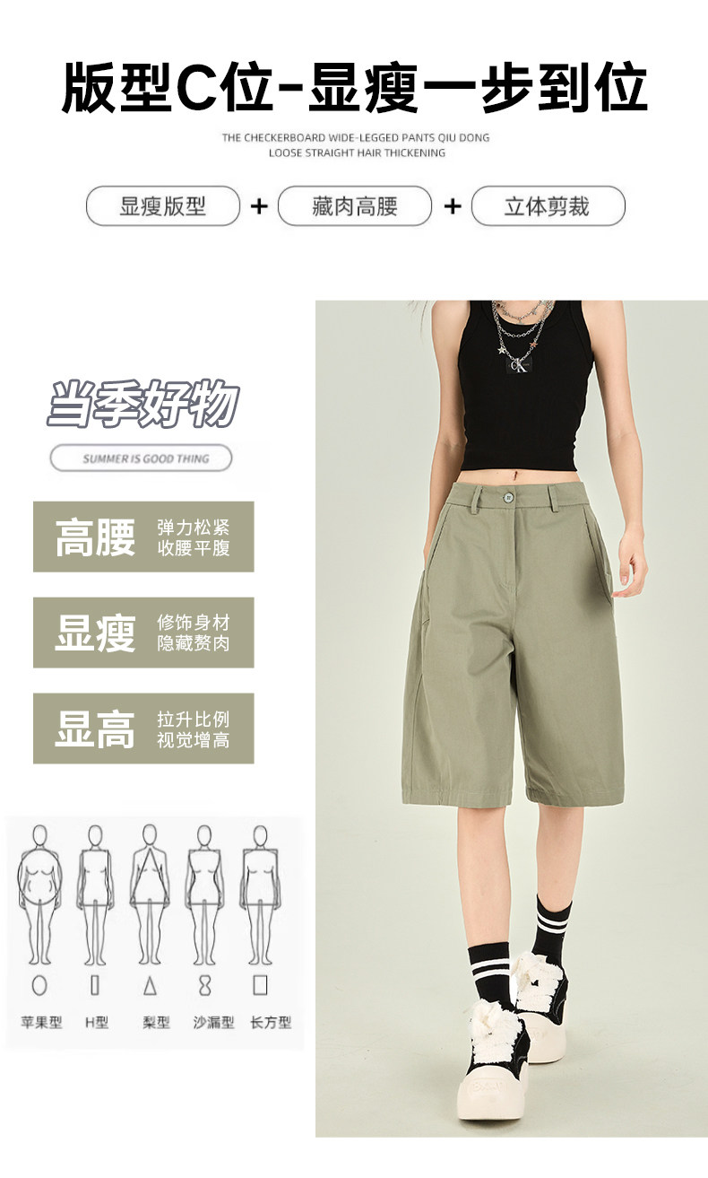 白色短裤女2025夏季薄款高腰宽松显瘦大码五分裤纯色休闲阔腿中裤