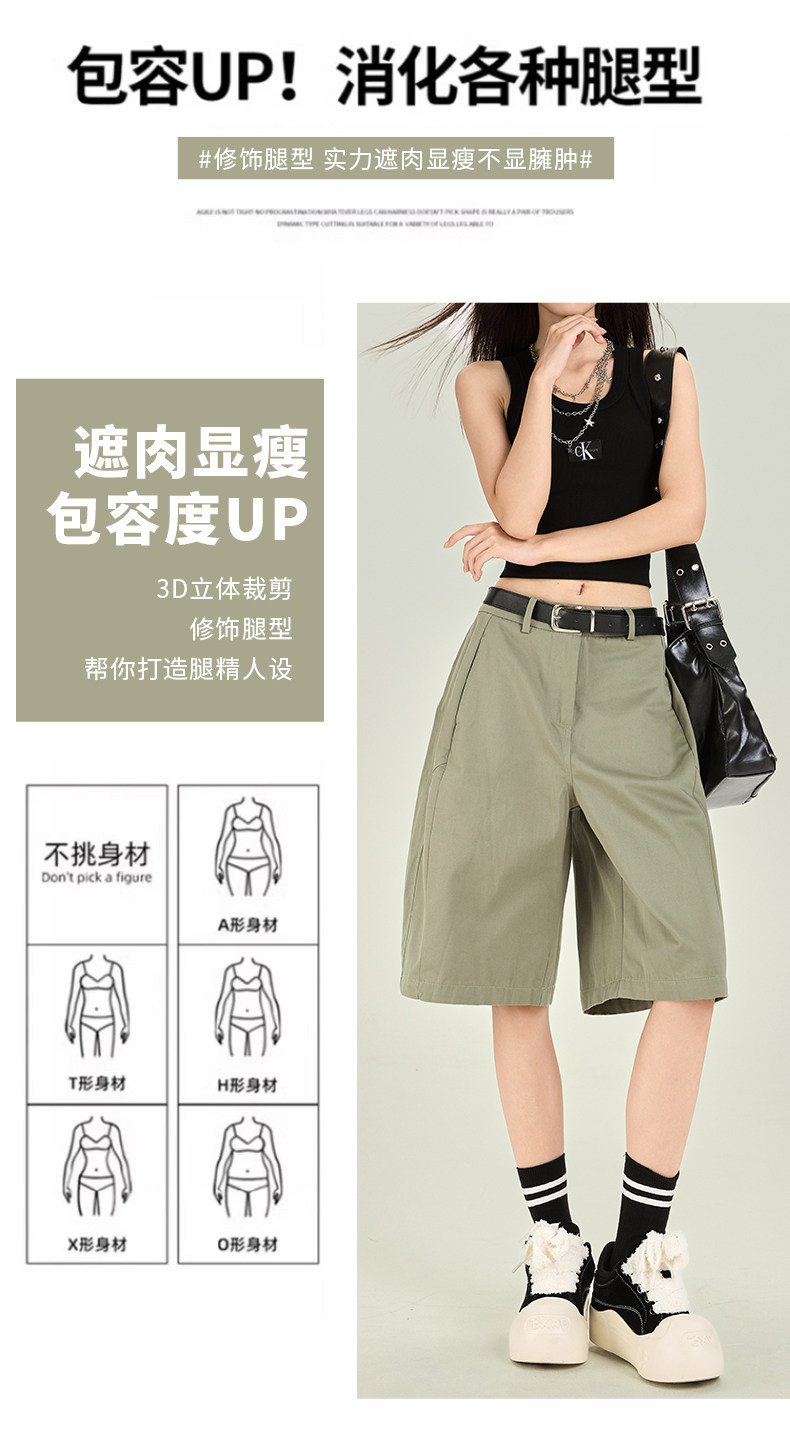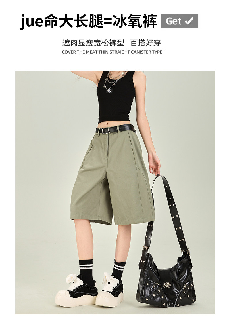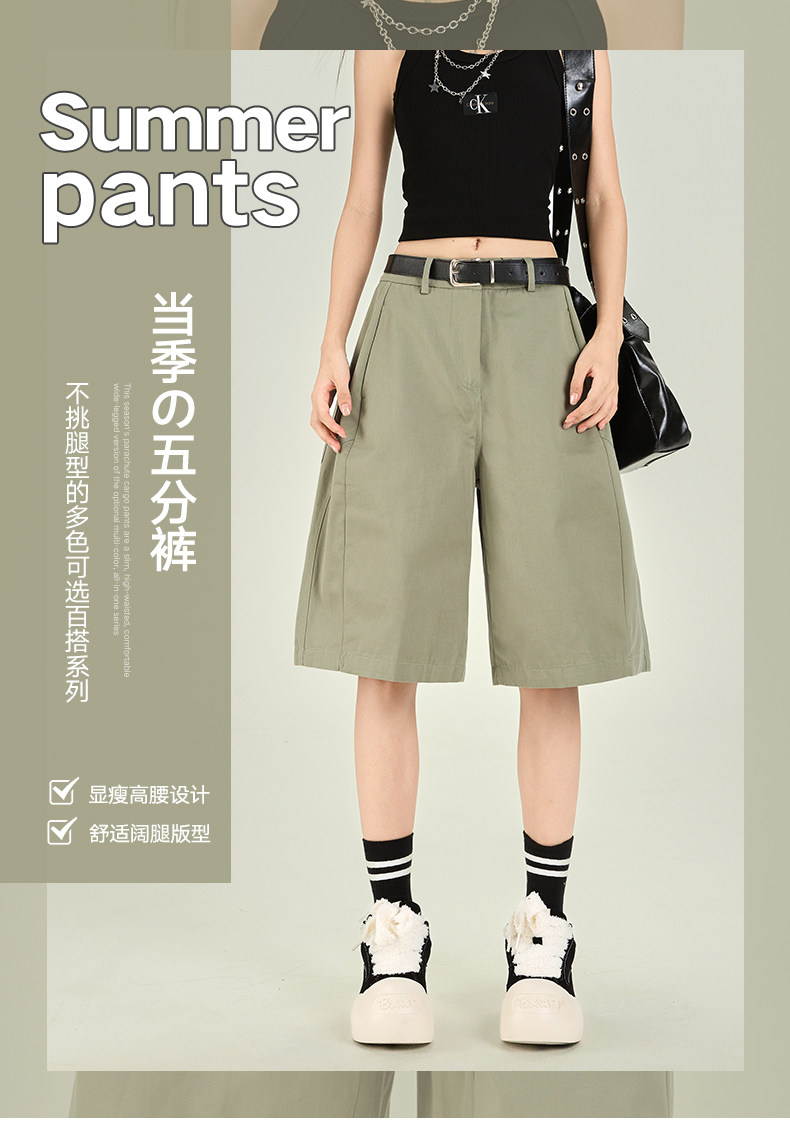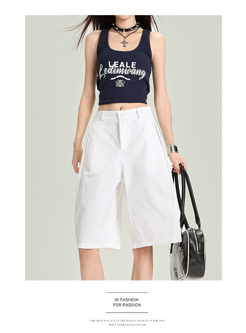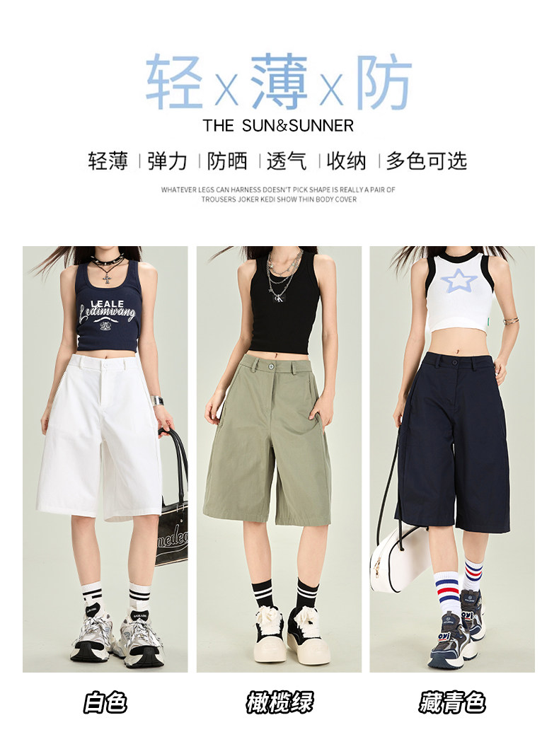 白色短裤女2025夏季薄款高腰宽松显瘦大码五分裤纯色休闲阔腿中裤