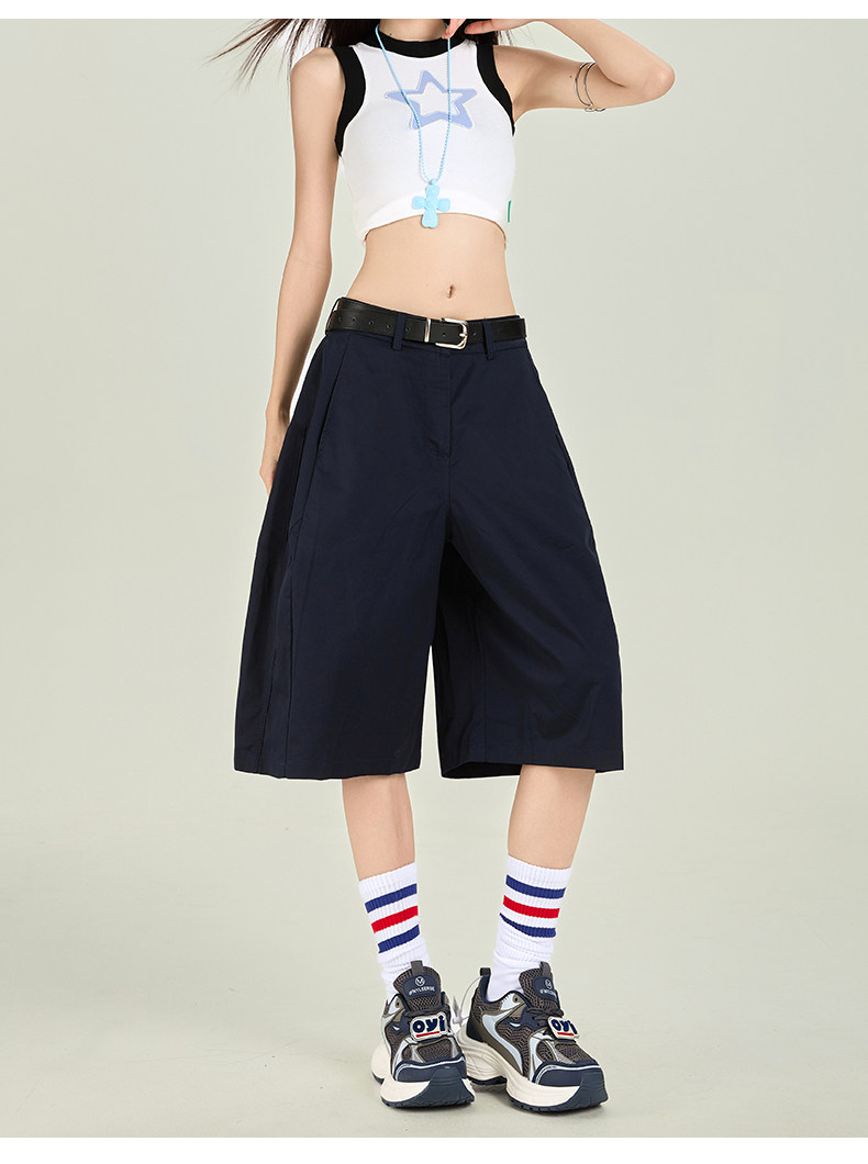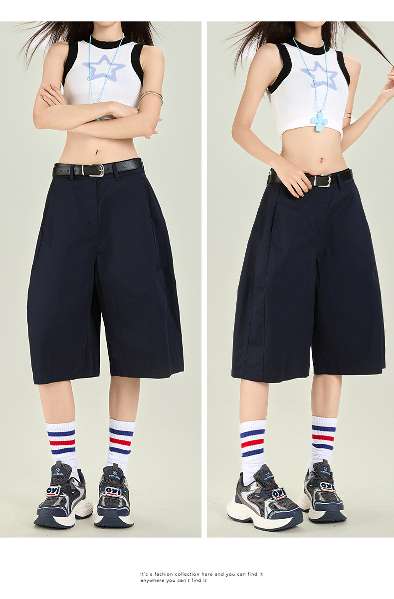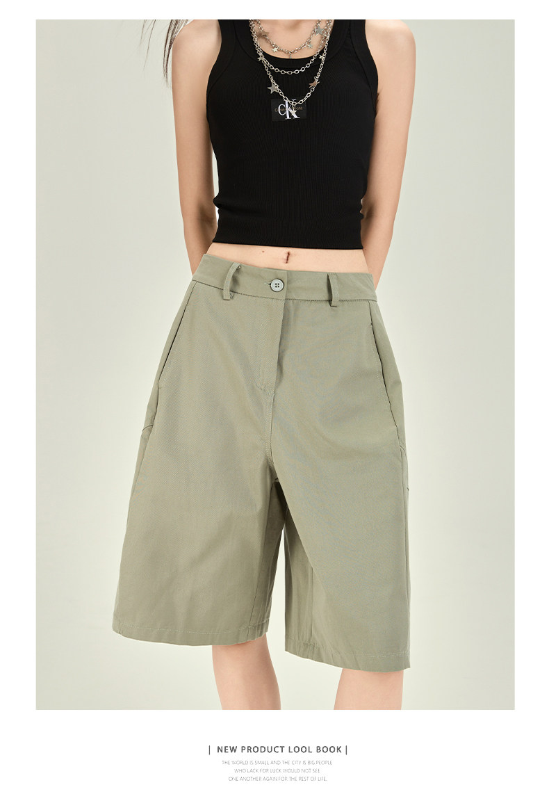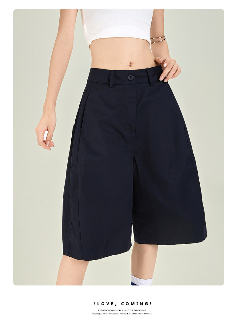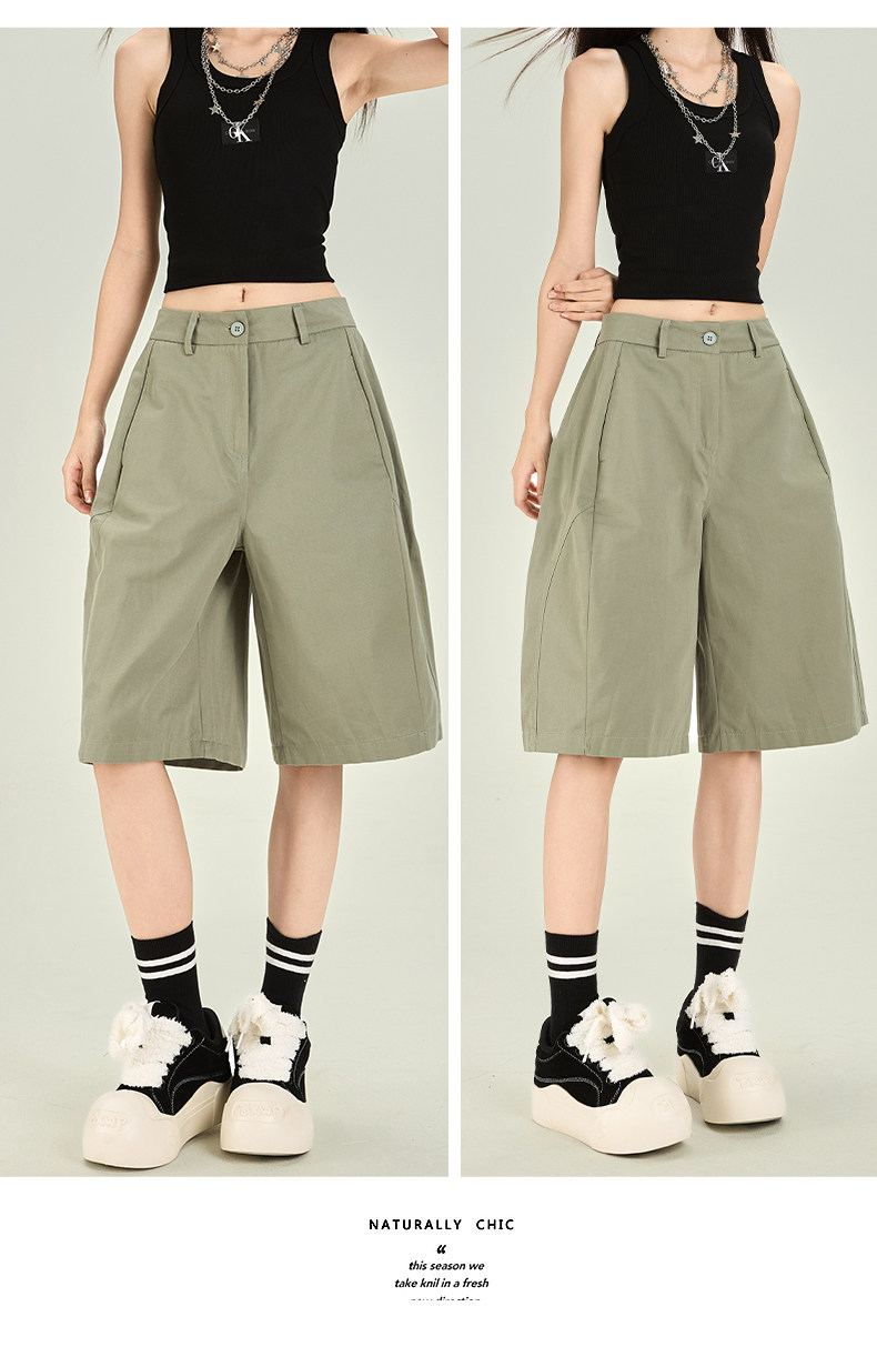 白色短裤女2025夏季薄款高腰宽松显瘦大码五分裤纯色休闲阔腿中裤