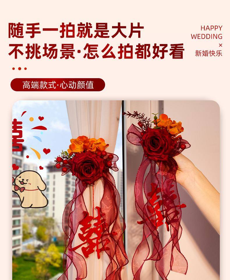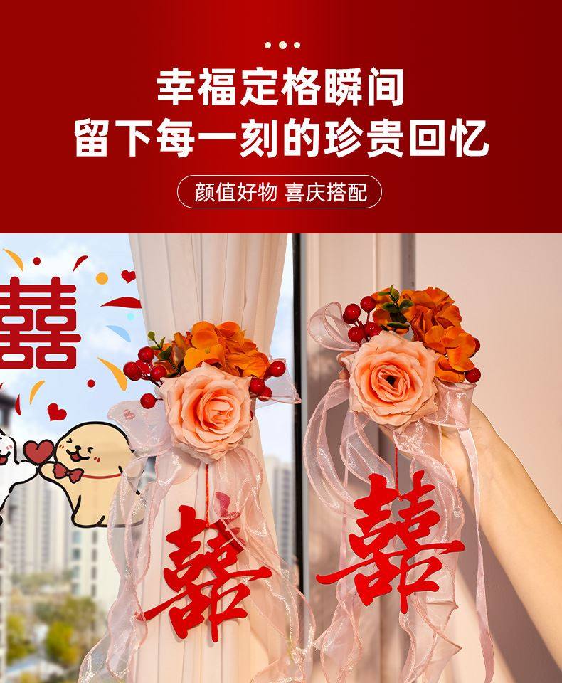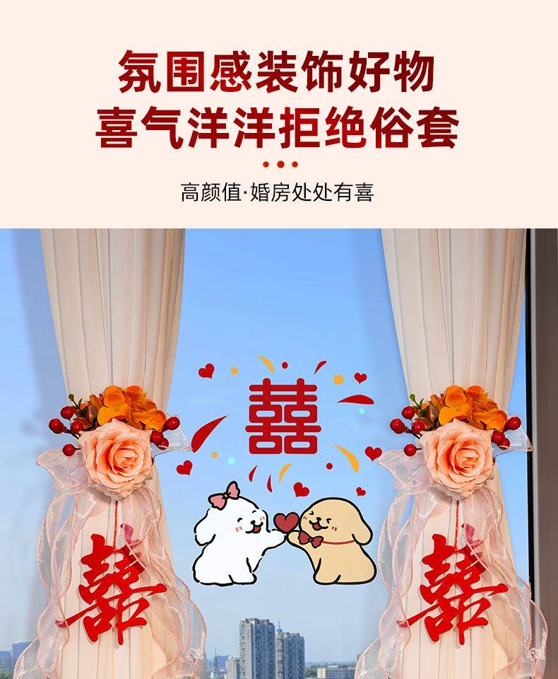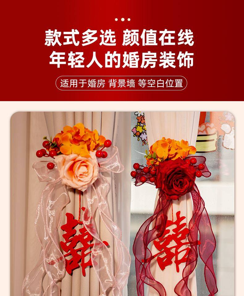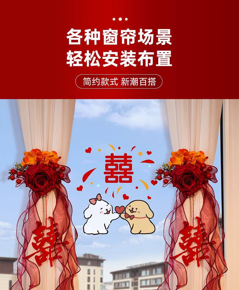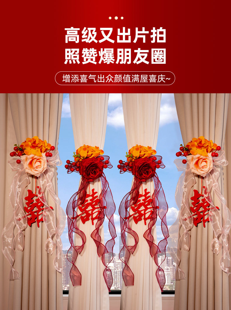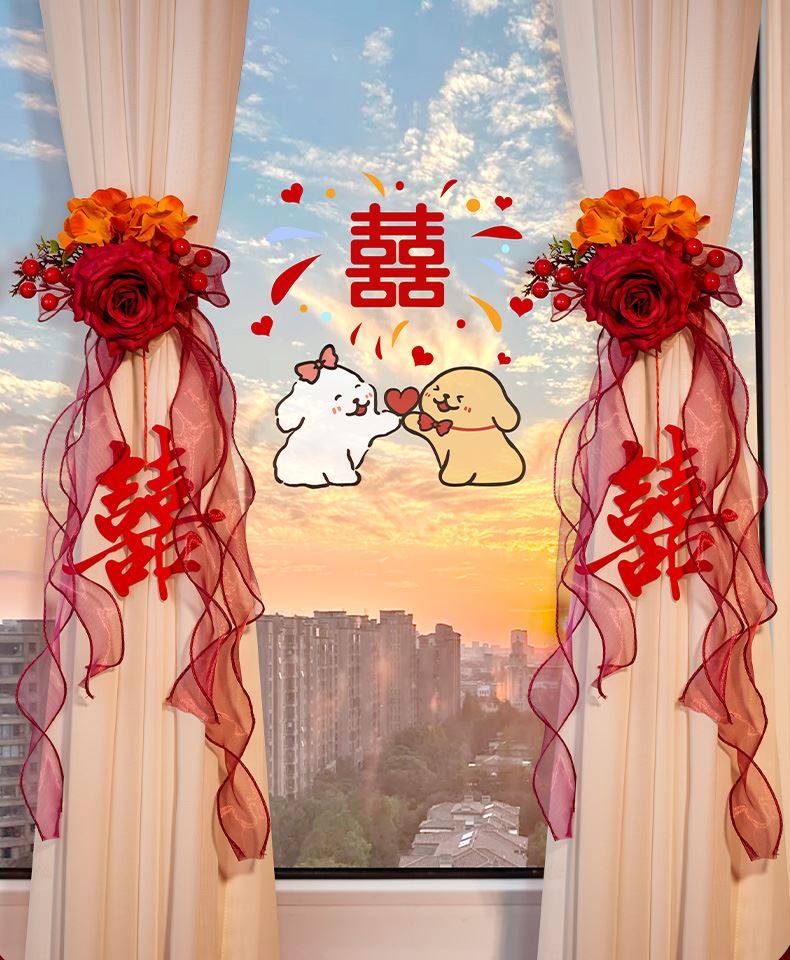 婚房布置客厅卧室窗帘装饰绑带喜字拉花男女方新房结婚礼用品套装