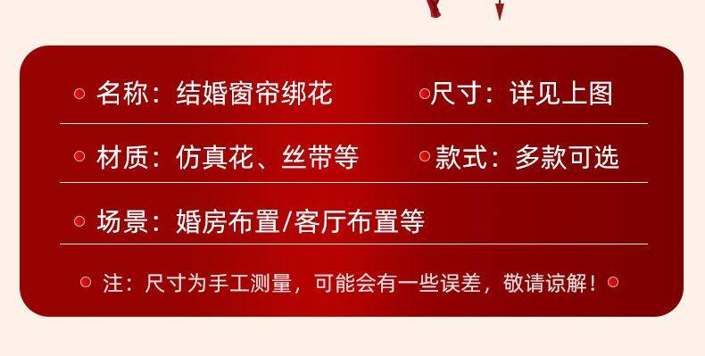 颜色分类 窗帘绑带花-红色一对,窗帘绑带花-粉色一对,窗帘绑带花【红色+粉色】共2对,【百年好合-铃铛款】窗帘绑带1对❤丝带,【兰定今生-铃铛款】窗帘绑带1对❤毛织,【兰伴婚途-铃铛款】窗帘绑带1对❤毛织,高级感花枝❤【蝶兰永好】1对(可diy创意造型),高级感花枝❤【蝶兰拥爱】1对(可diy创意造型),超卓特出⭐【磁吸双喜】绑带1对