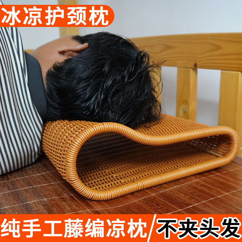 Cervical Vertebra Protection Hollow Breathable Pillow, Handmade Rattan-Like Weaving, Slightly Hard Hollow Nap Pillow, Home Use, Chinese Style, Washable